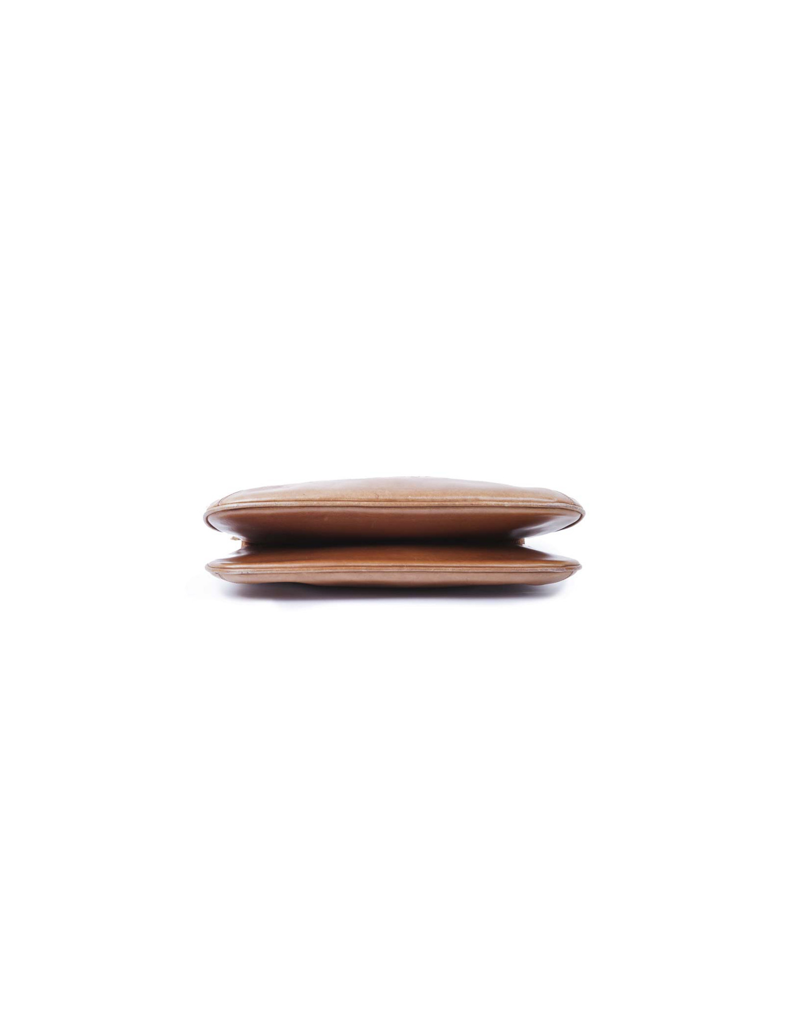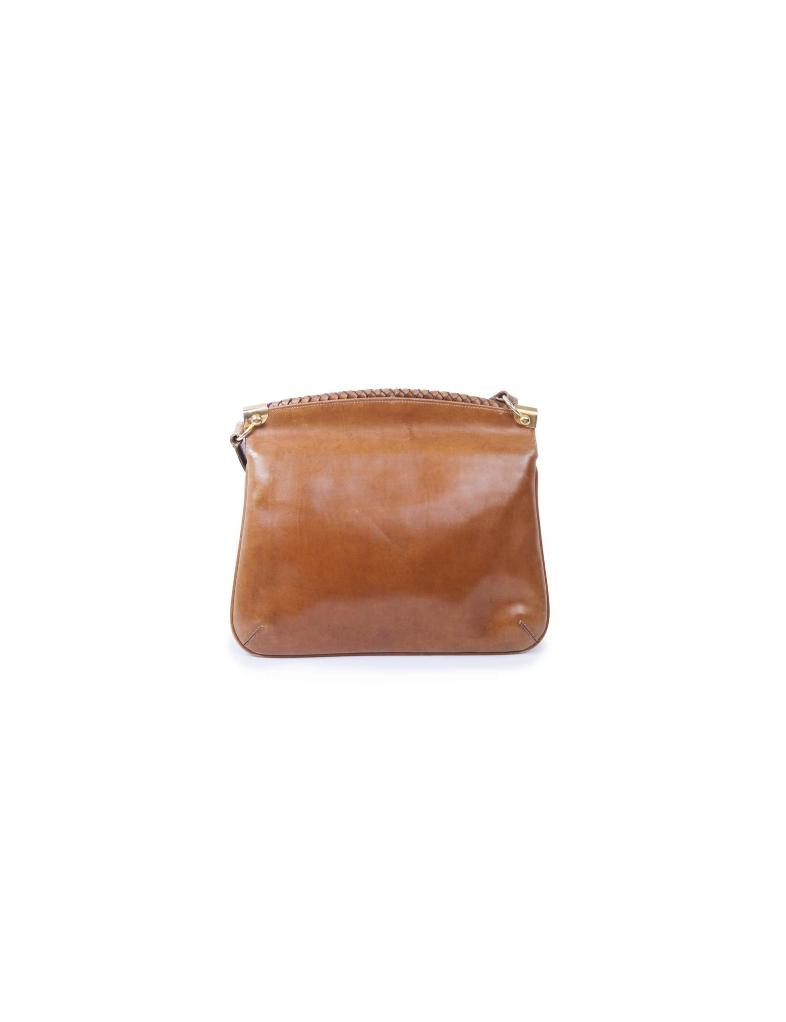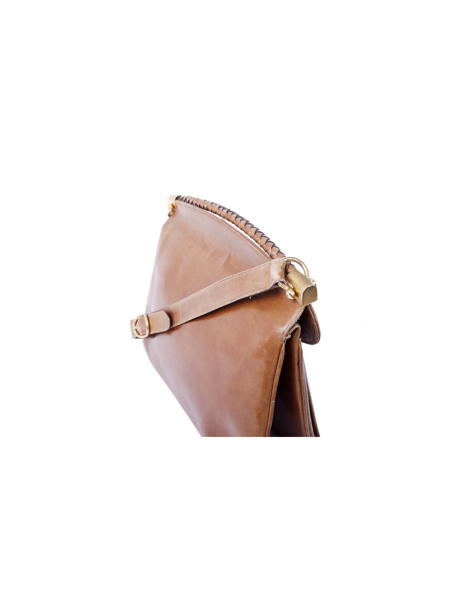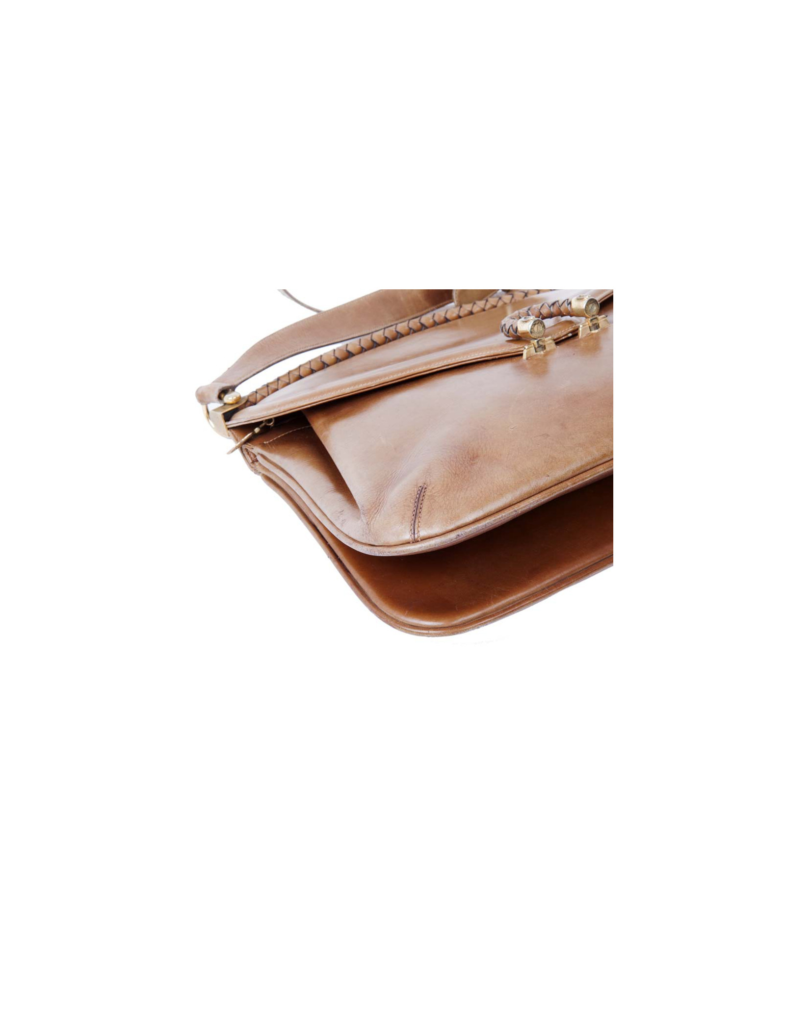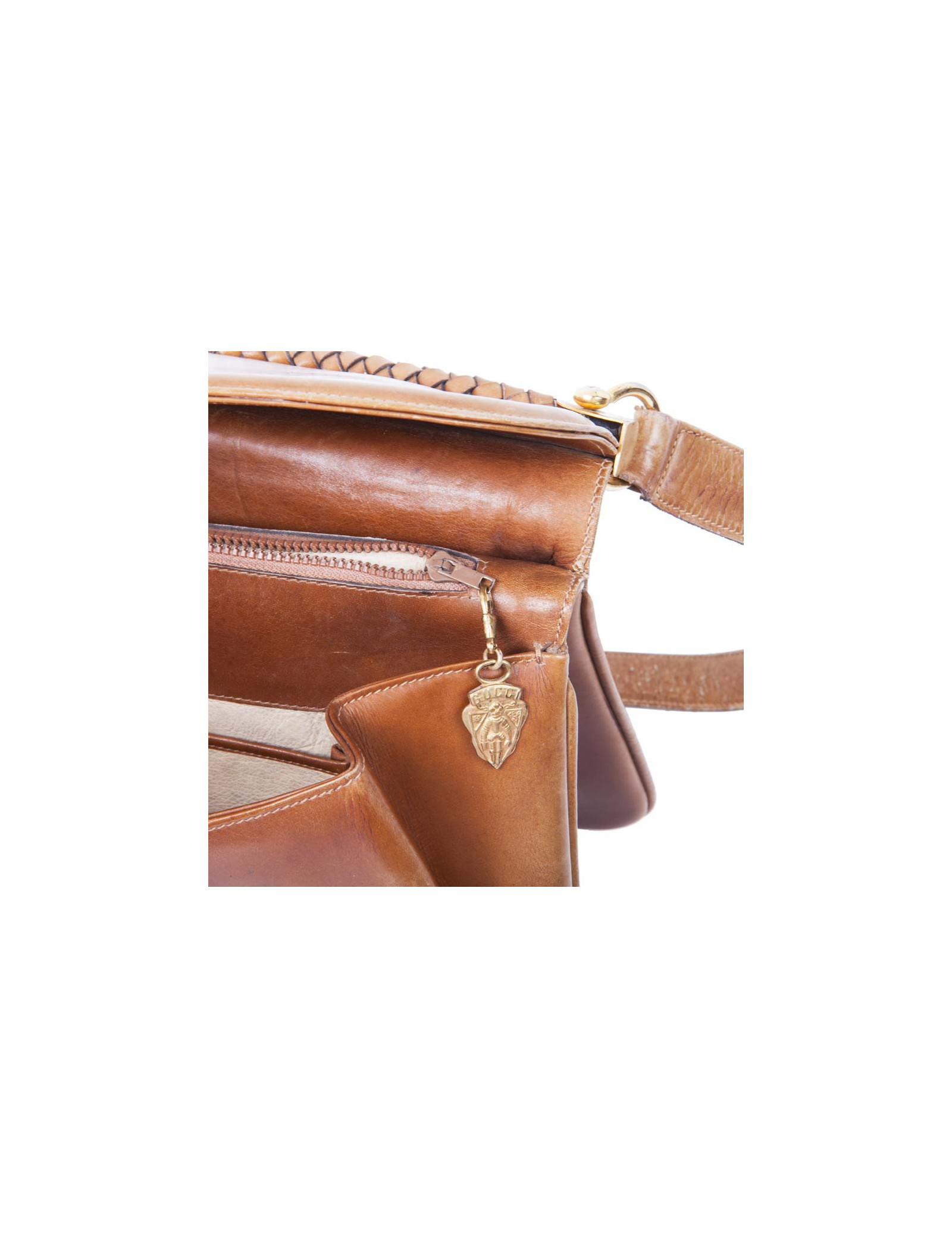 Museum piece of the 70's !! Gucci bag in aged brown leather. Gilded metal hardware. The interior is in beige leather with two bellows.
