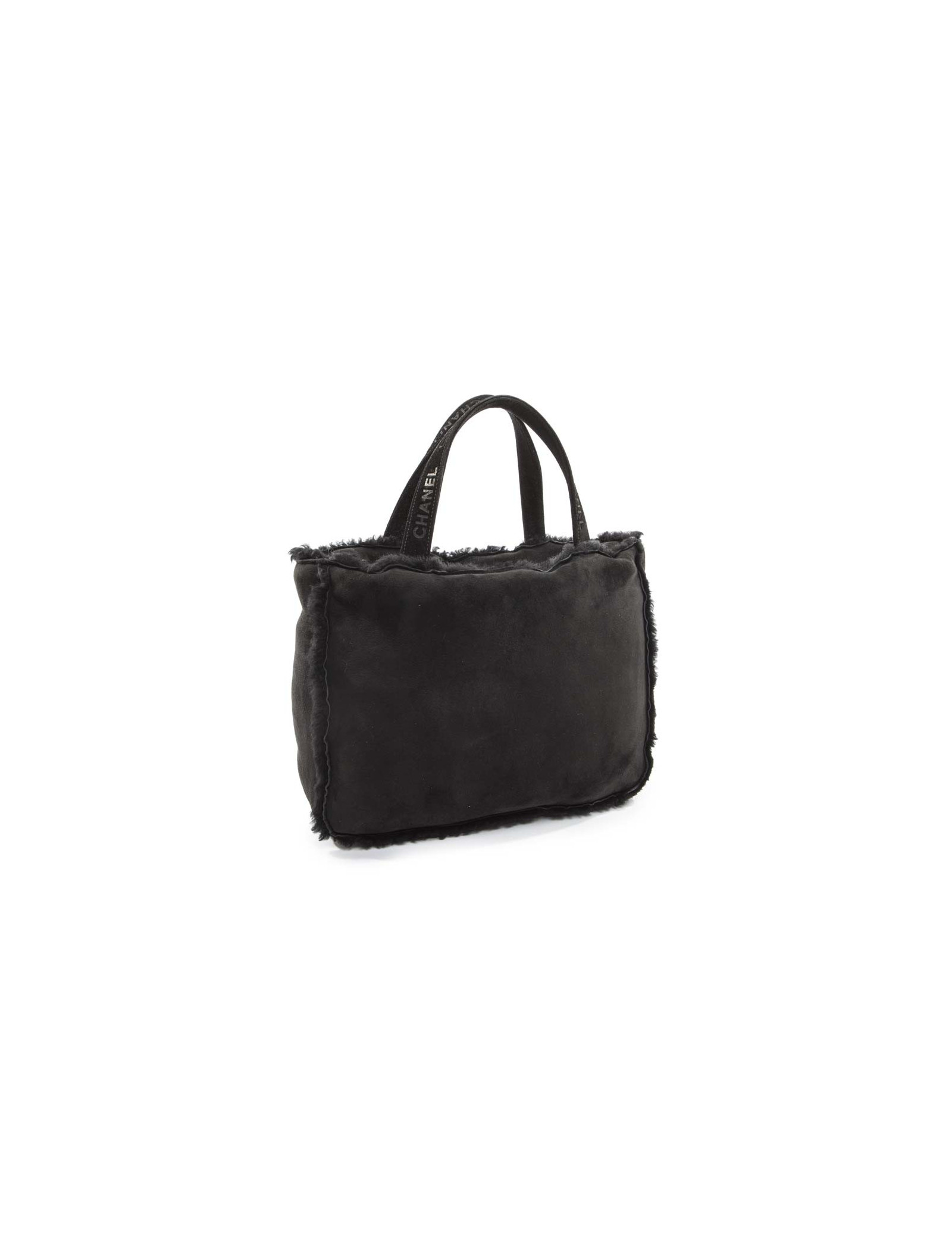CHANEL black Shearling tote bag