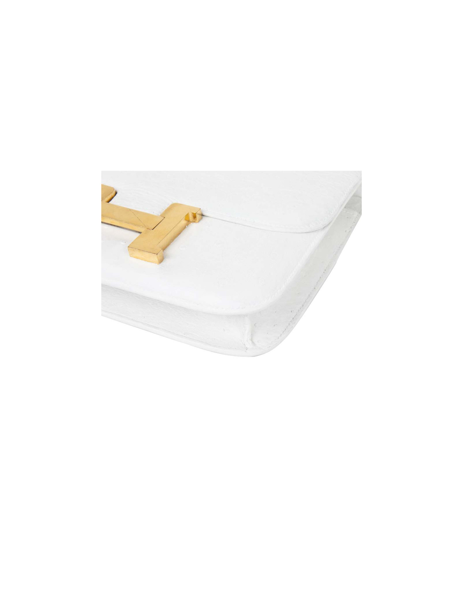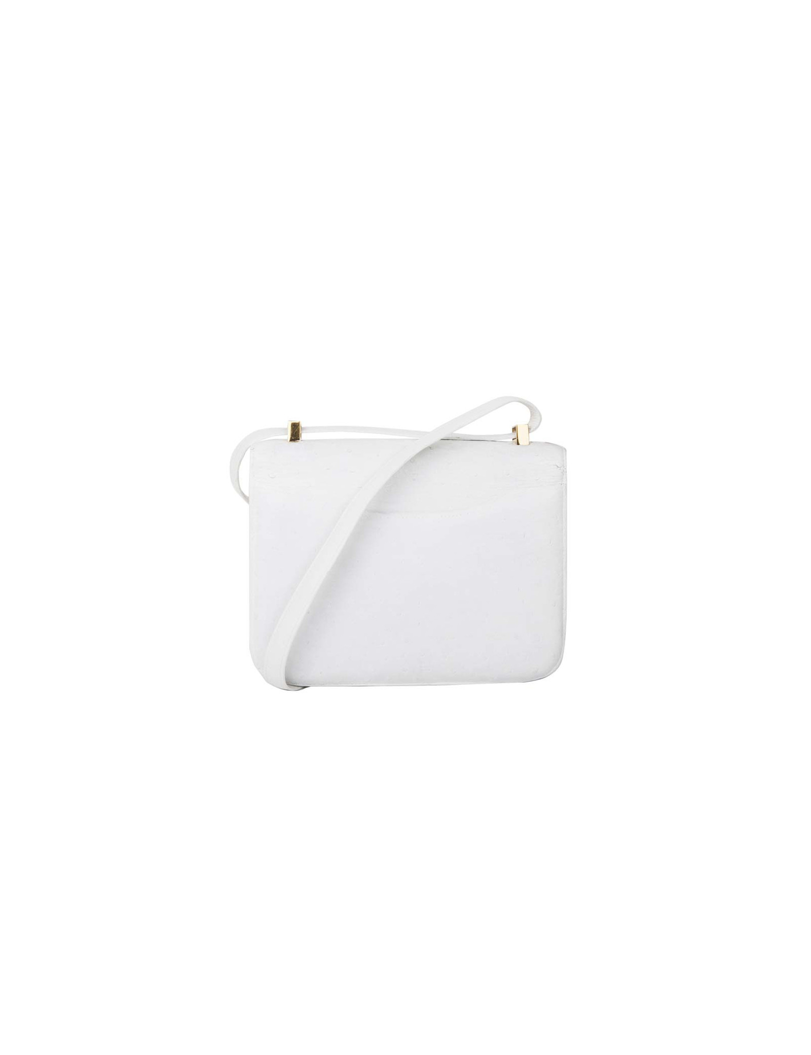 Constance white bag in white ostrich. Very good condition. It has been cleaned and pigmented. Fully lined white lamb inside. Letter N in a circle (year 1984). The metal trim is plated gold.