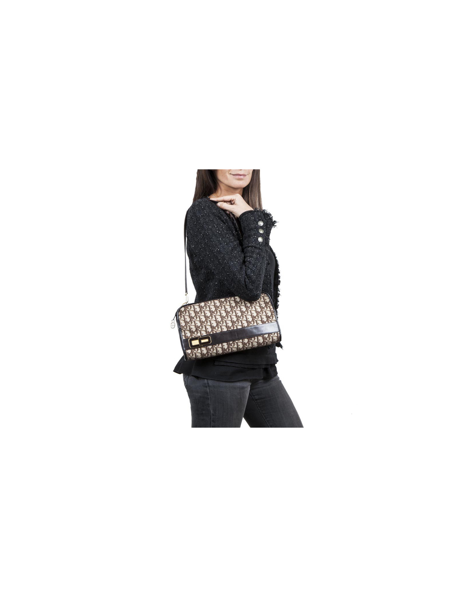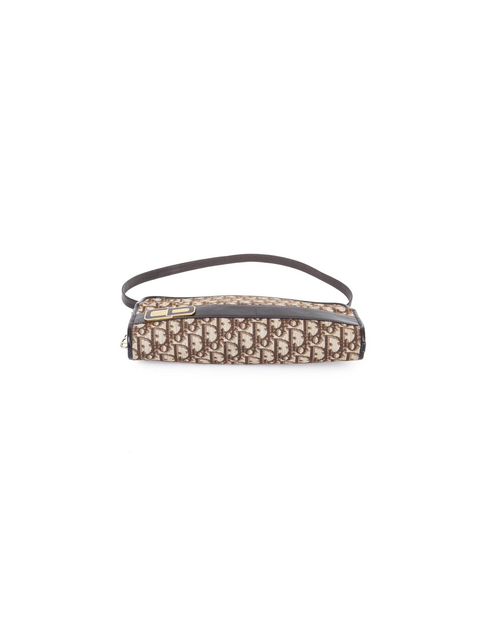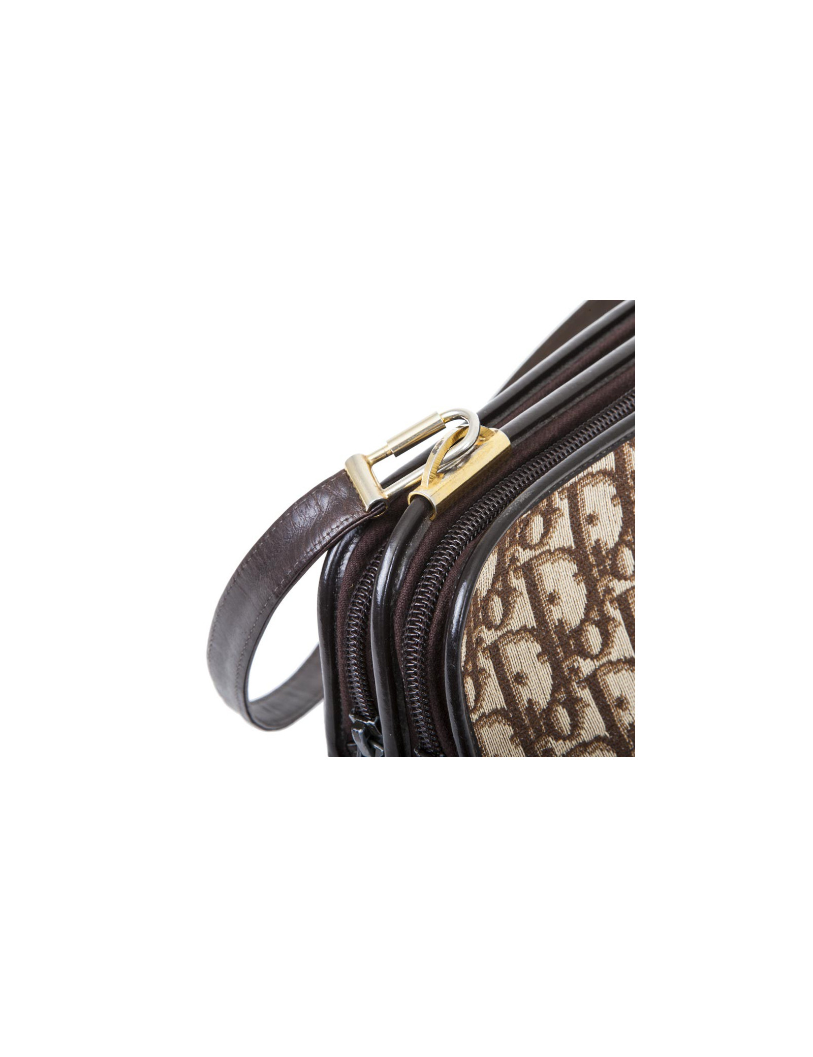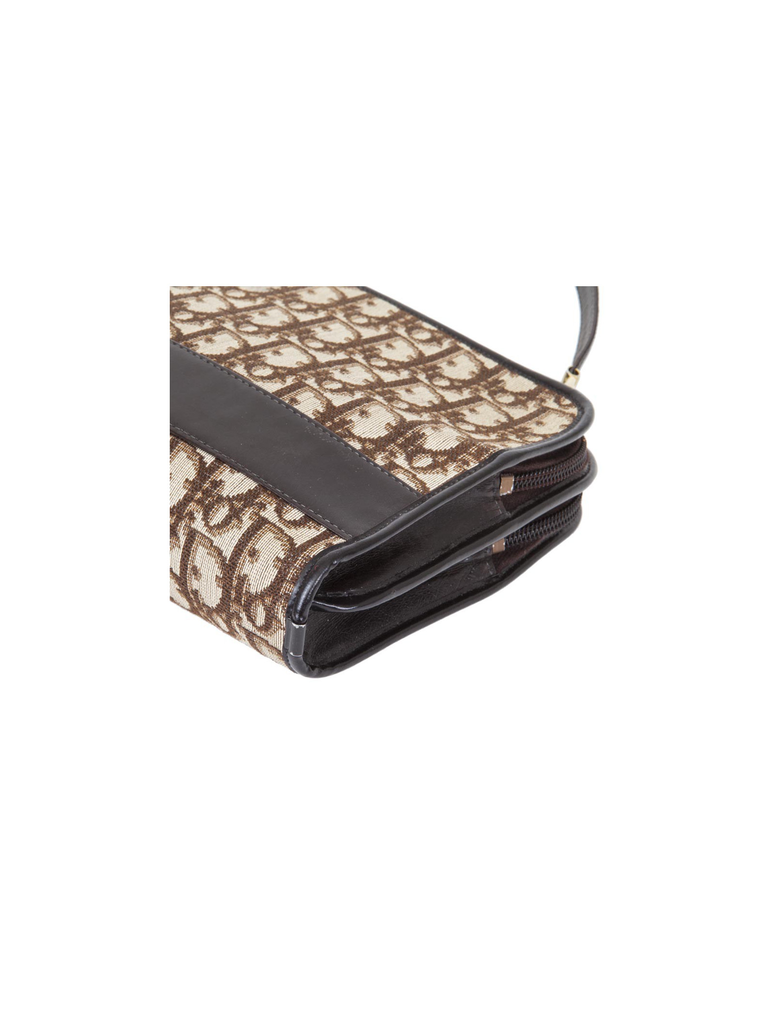 Vintage ! Sac Christian Dior en toile monogram marron et beige. Bijouterie dorée Patine des bijouteries. Fermeture zippée avec deux soufflets. Porté épaule avec une anse amovible pour un porté à la main façon pochette. Très bon état général.