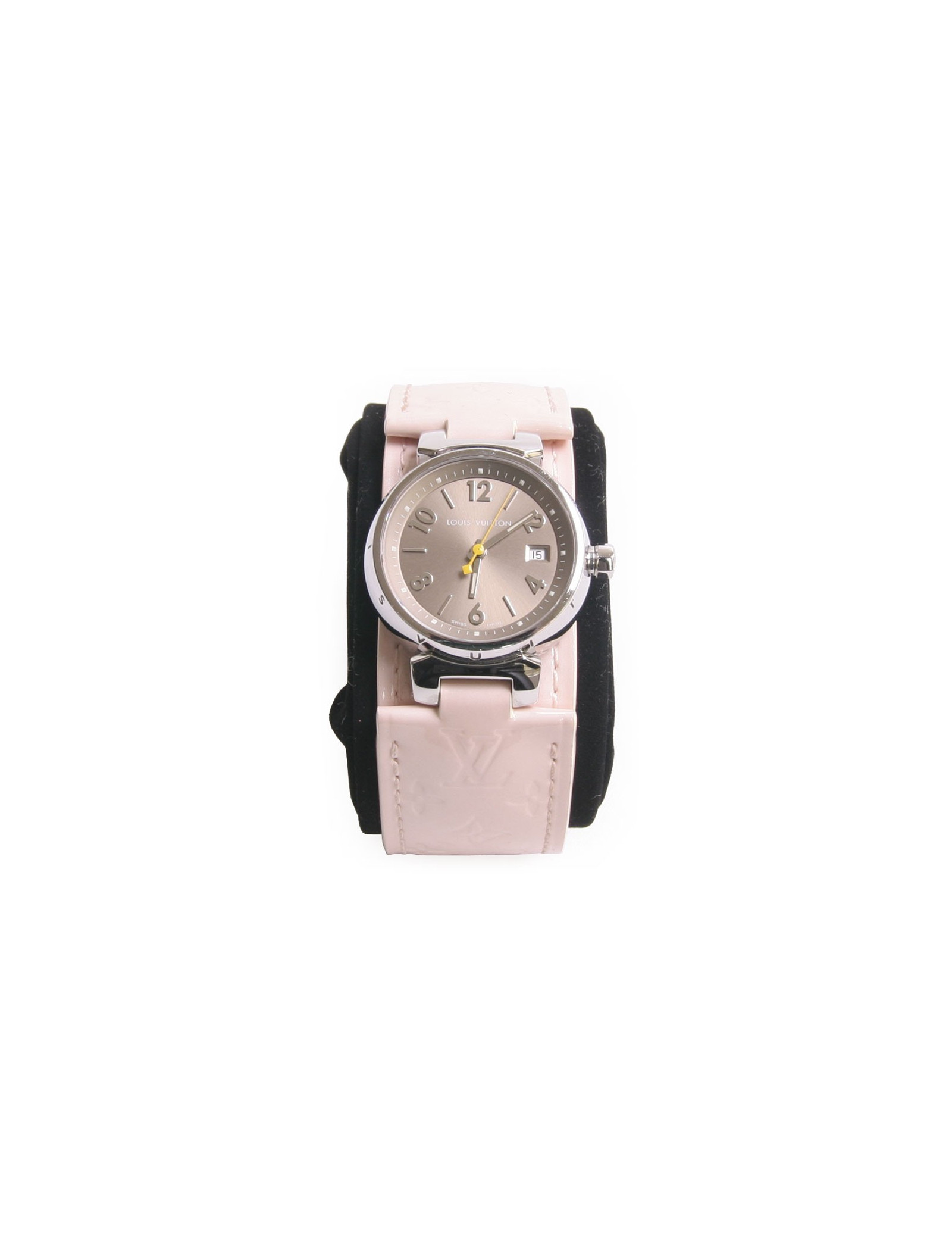 Watch "Drum" Louis Vuitton, with bracelet monogram pink powder varnished, quartz, small model.