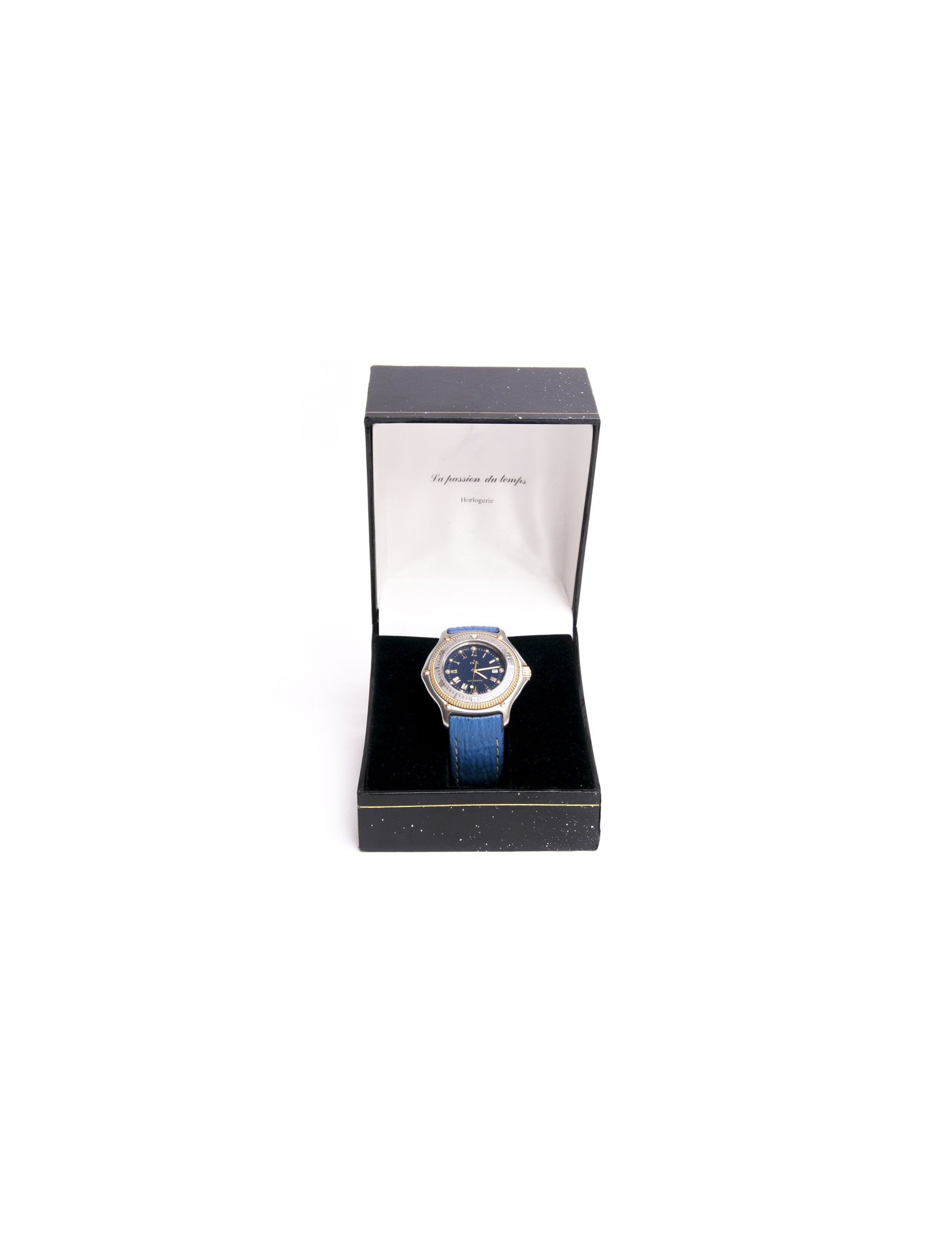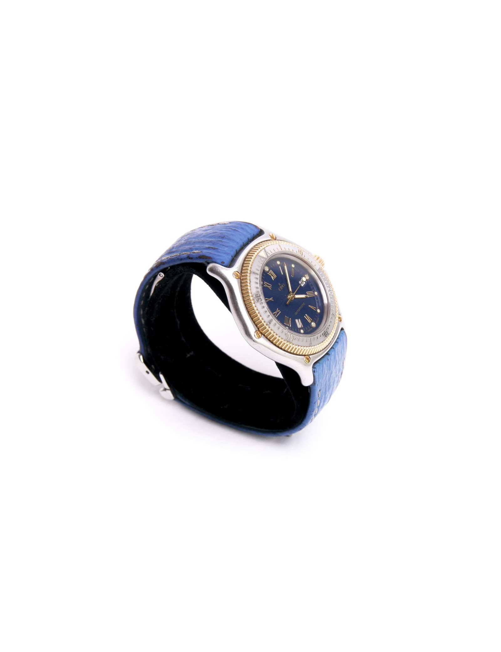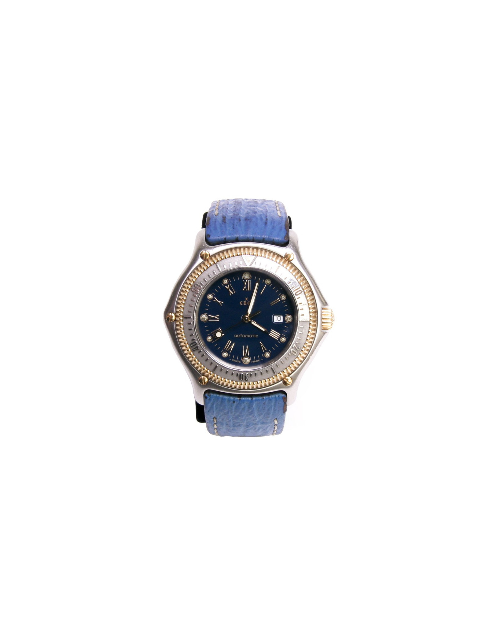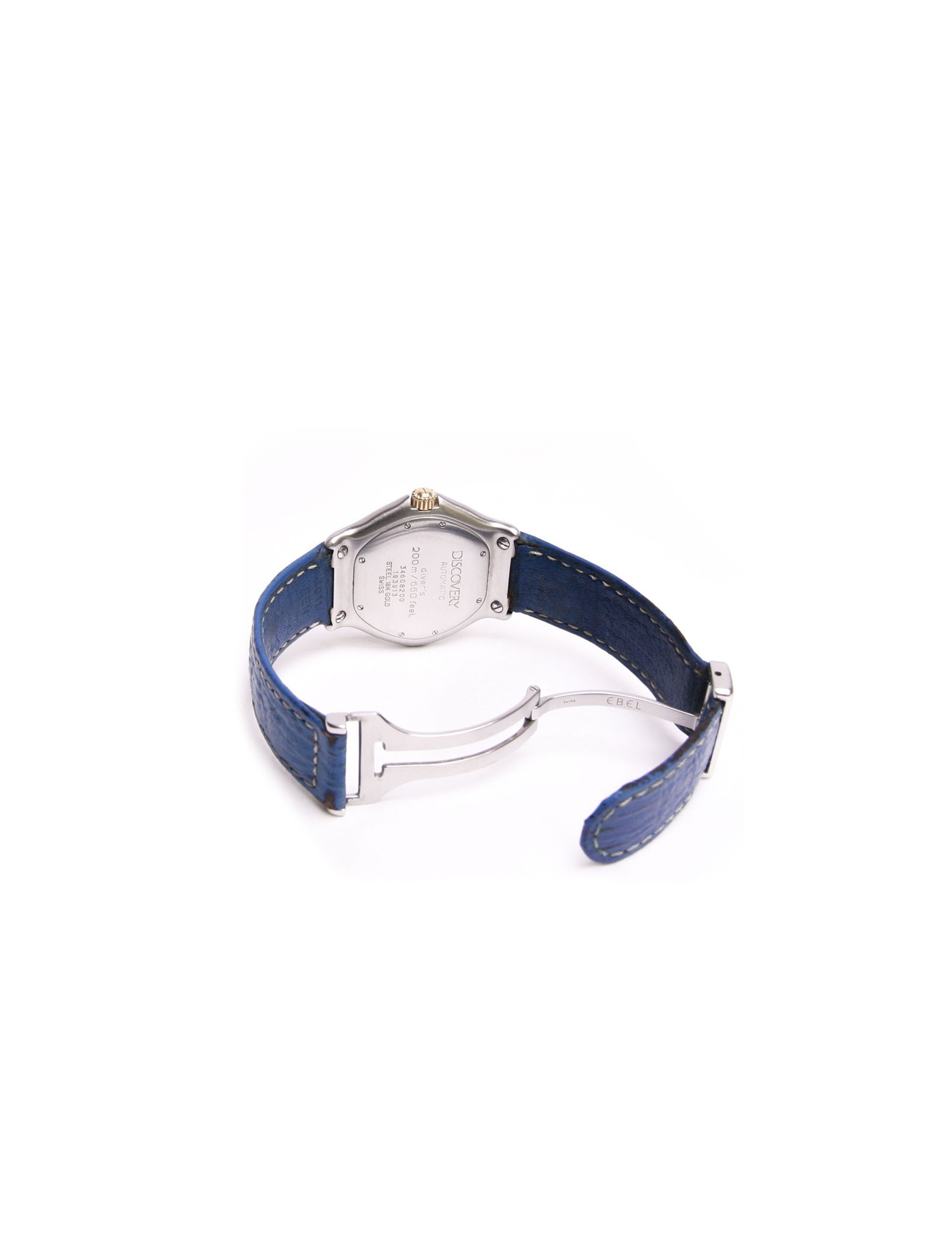 Watch Ebel "discovery", in gold and steel and blue leather and white wire bracelet with folding clasp. information about this watch: year 1993, functions: hours, minutes, Center seconds, type of automatic movement, glass Sapphire, diameter 38 mm without the Crown, height 9 mm. She is in very good condition.