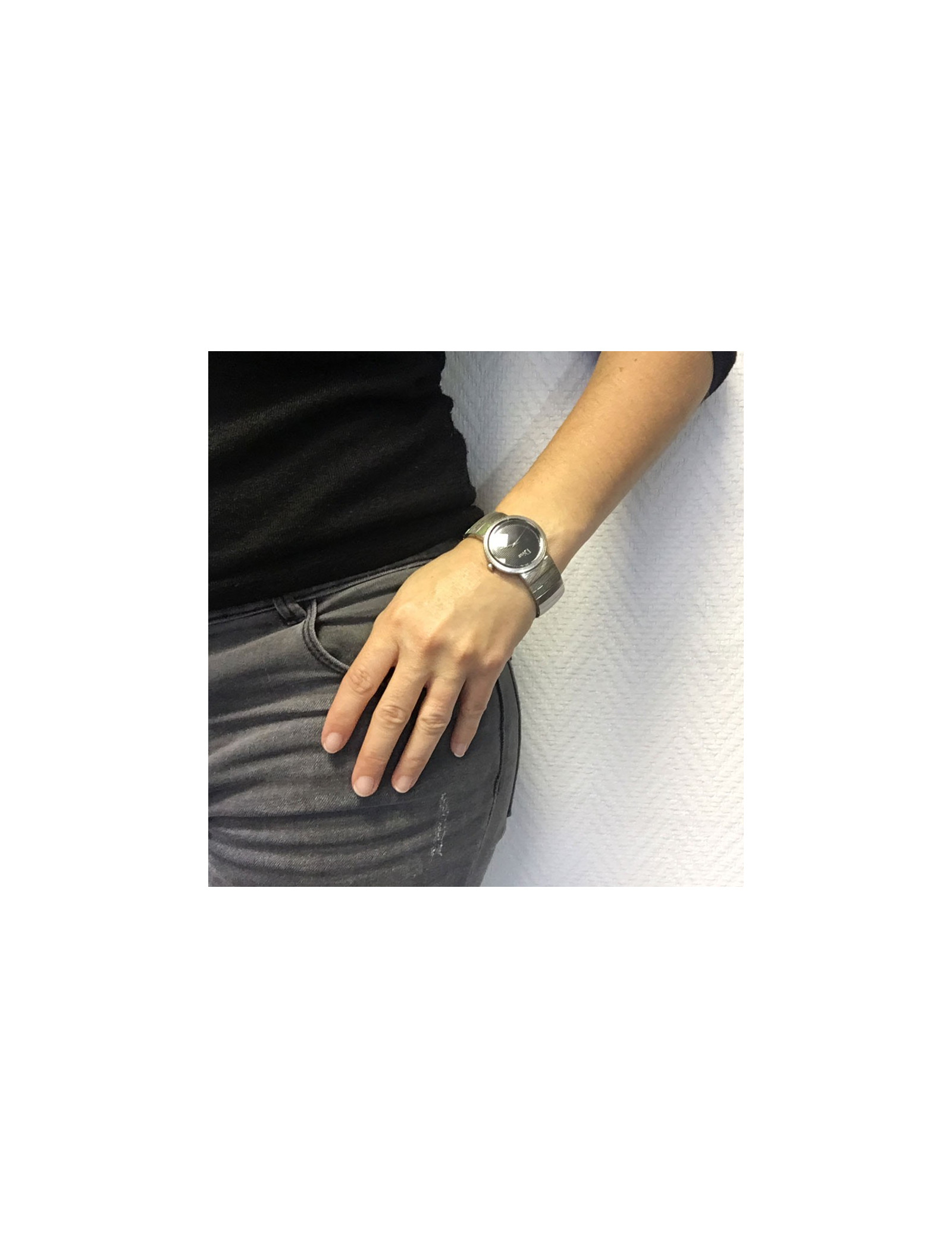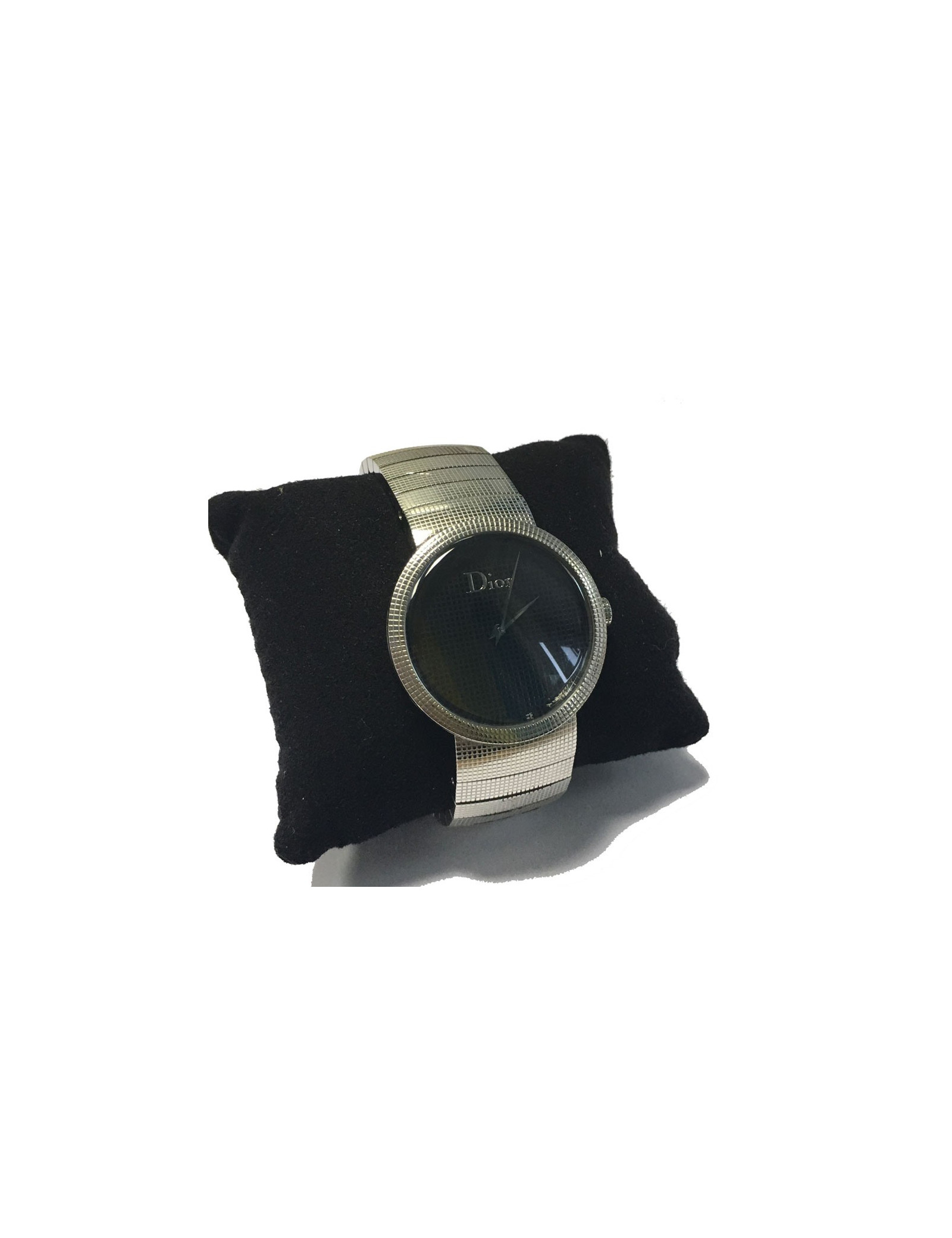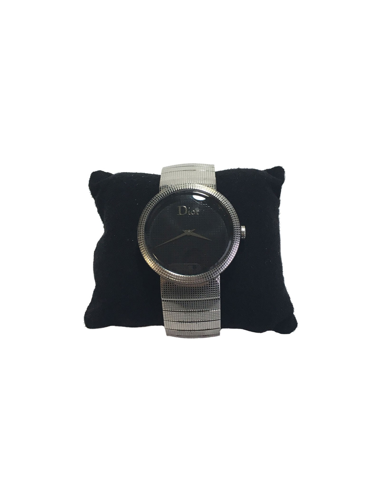 Grand classique! Montre CHRISTIAN DIOR unisex, la D de DIOR, en acier argenté. Mouvement à quartz, cadran de couleur noir. Bracelet en acier, boucle déployante.