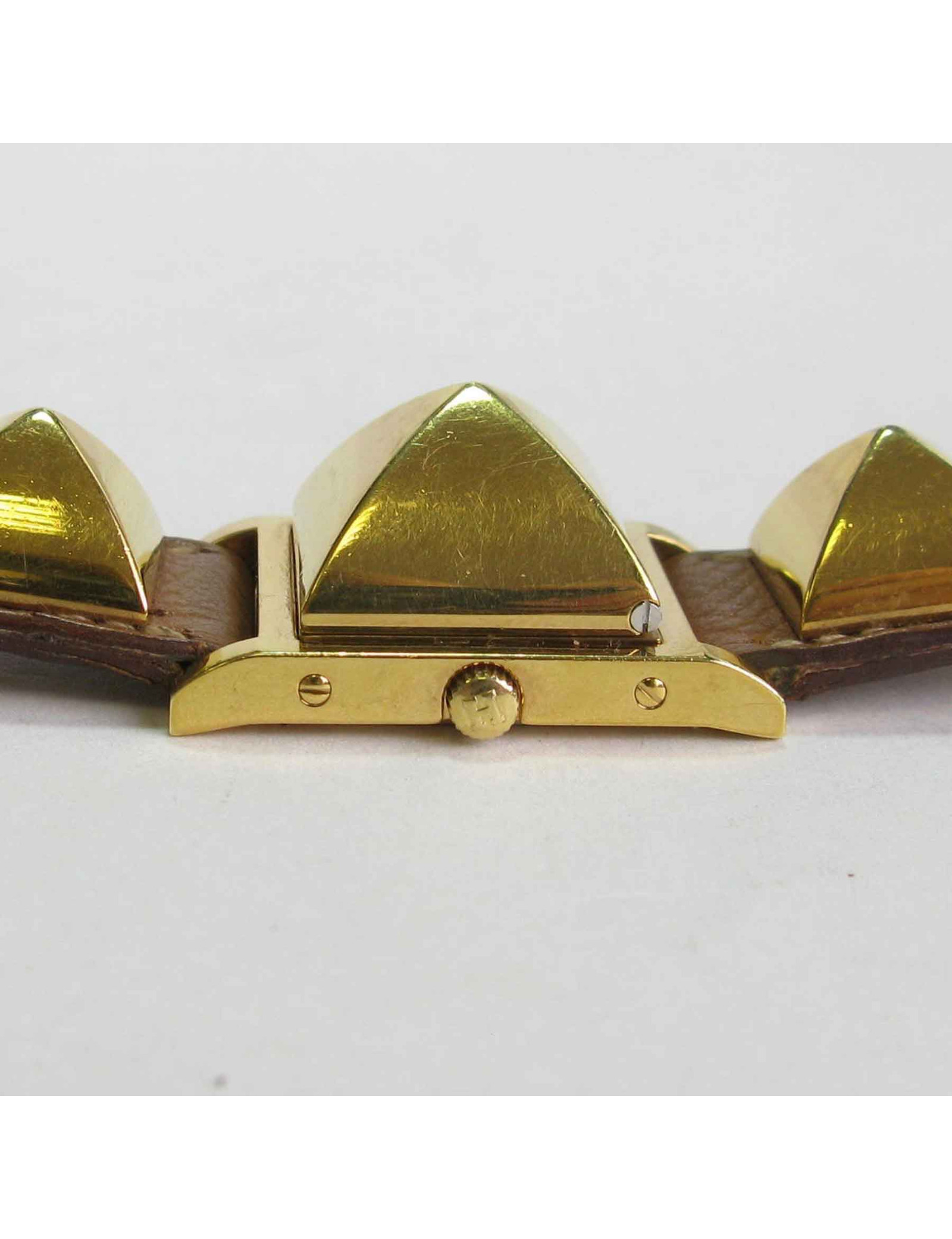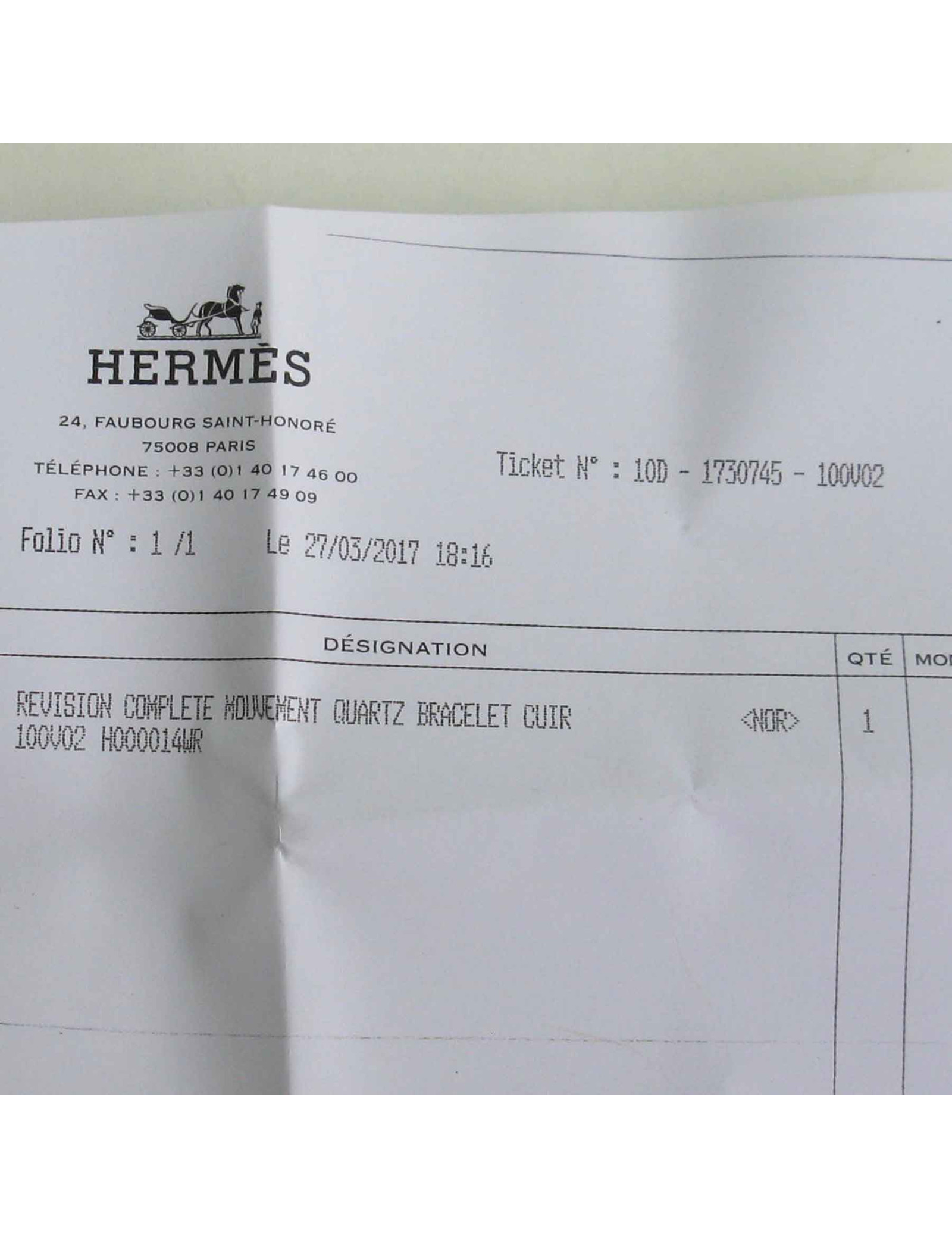 Last items in stock WATCHES HERMES Médor watch HERMES 35814 1,700.00 € HERMES Médor watch Condition : goodMade in SwitzerlandModel : MédorCase: steel, white face, quartz movement, 4 gold stud hour markers, Case diameter 2.3 cm excluding crownHardware : gold (micro-scratches)Material : gold plated metalHermès bracelet : Epsom gold leather (to be replaced)Gilded pin buckleTotal length at the last hole: 18 cmLetter: X in a... Add to cart