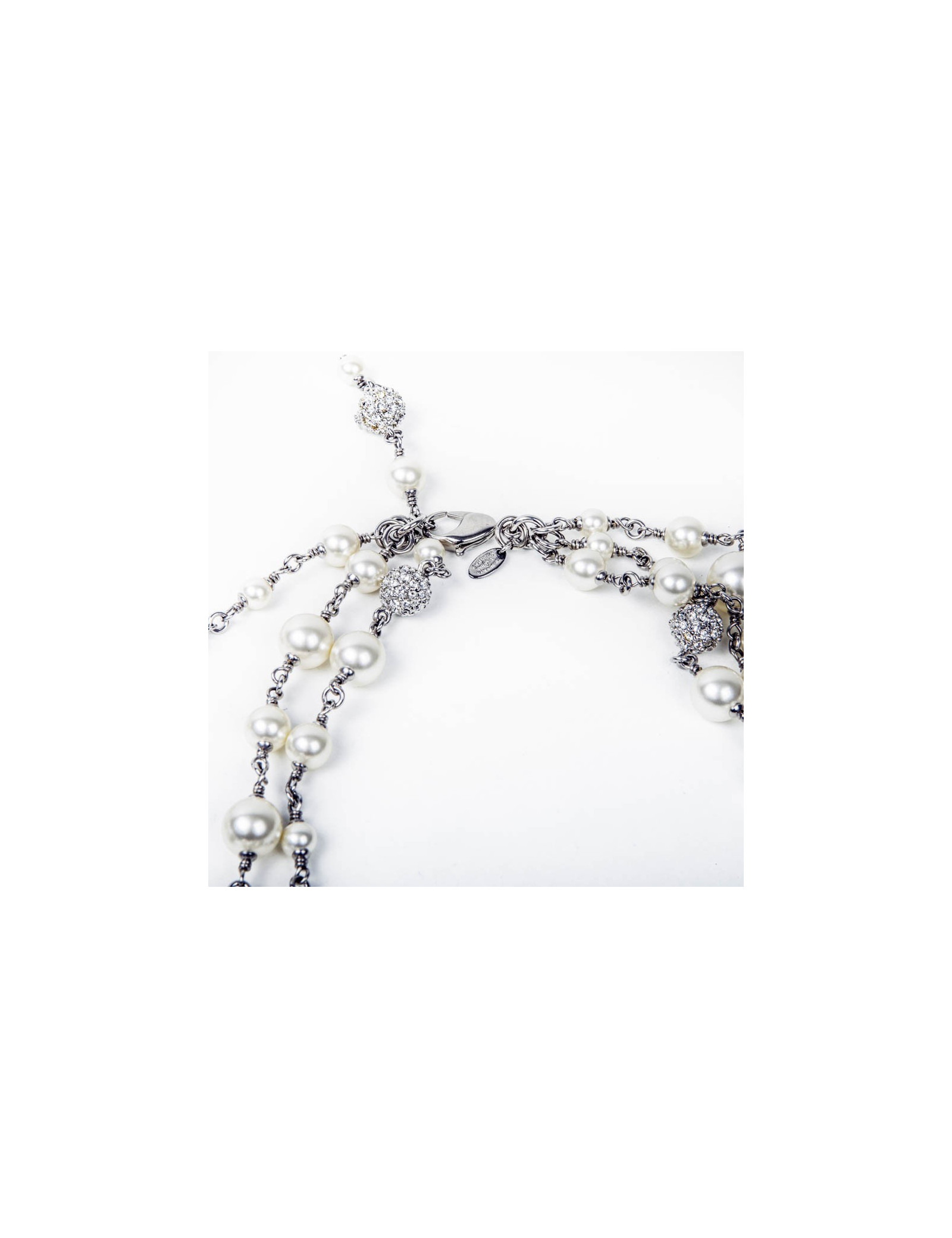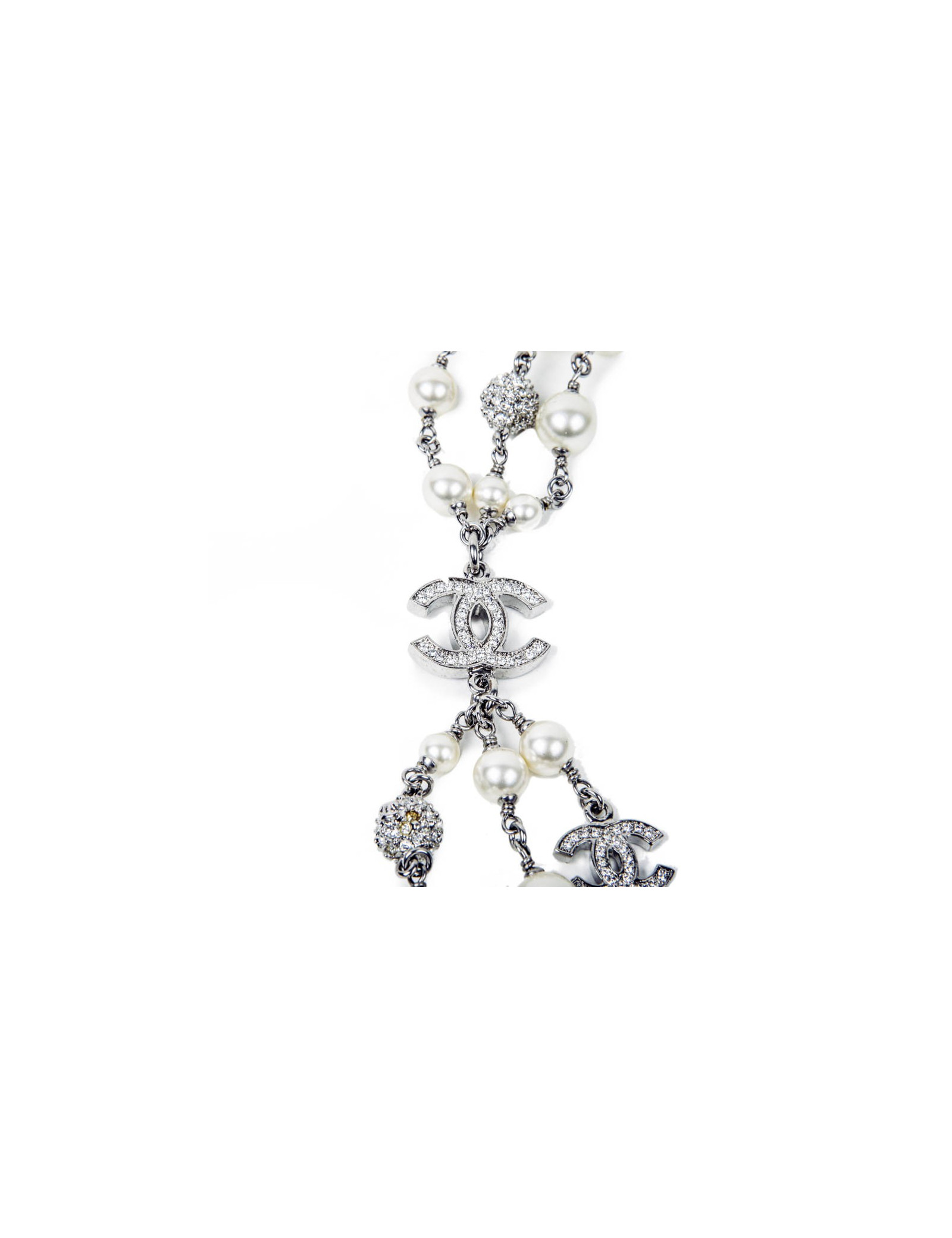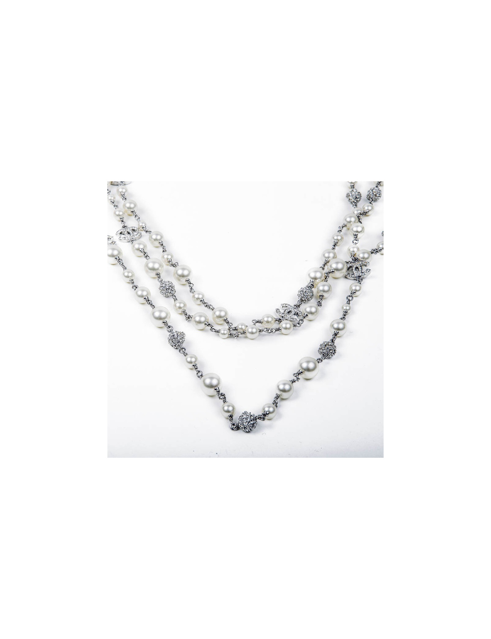 Chanel triple row necklace beads in paste of glass, CC and balls in rhinestones and silver metal.