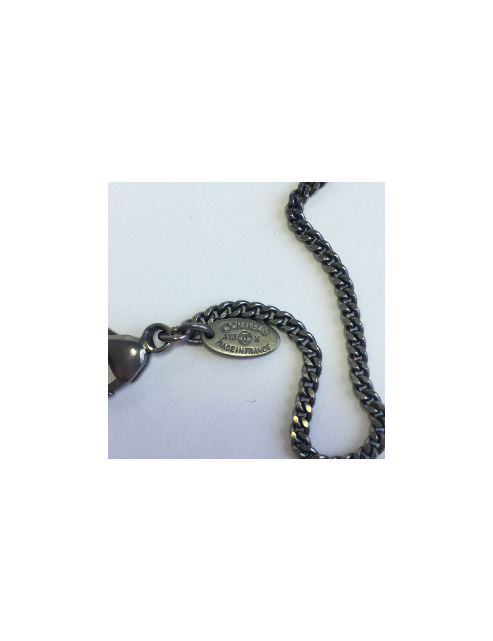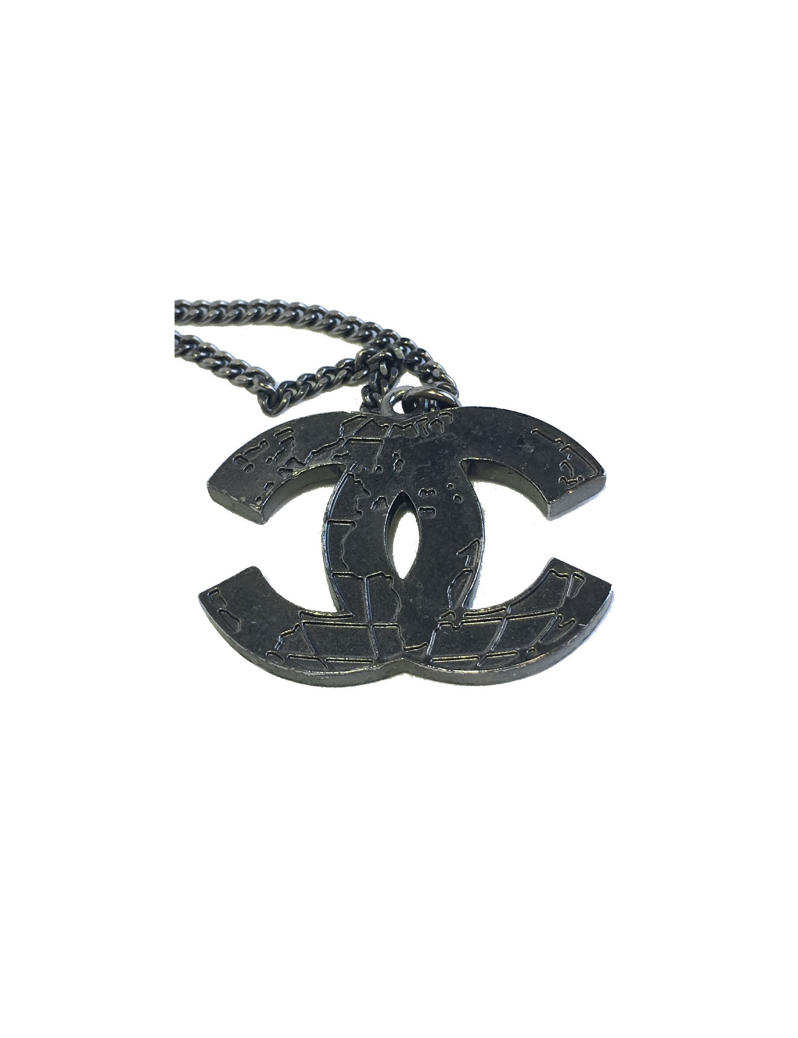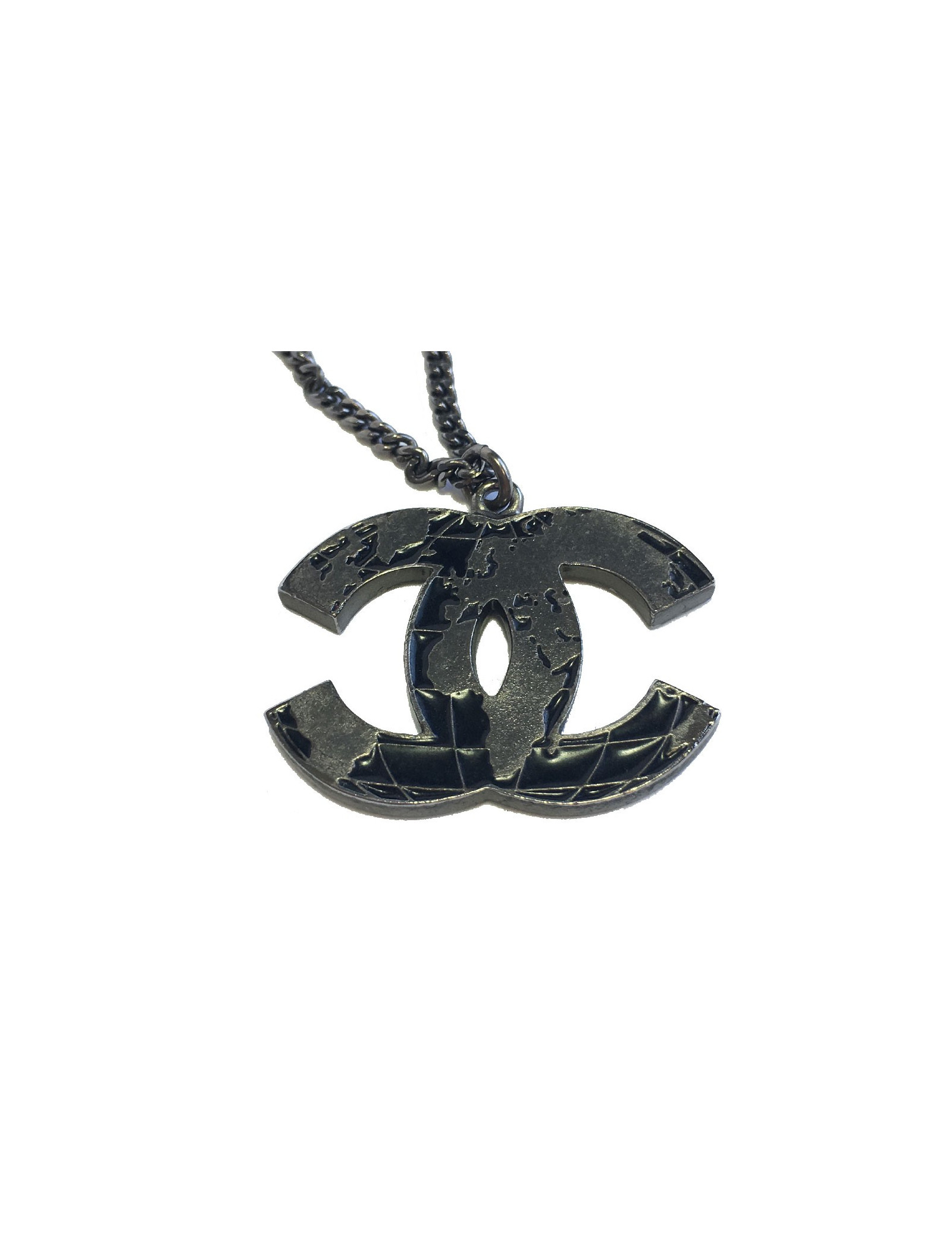 Chanel CC necklace in ruthenium metal. Pattern world map on the CC.