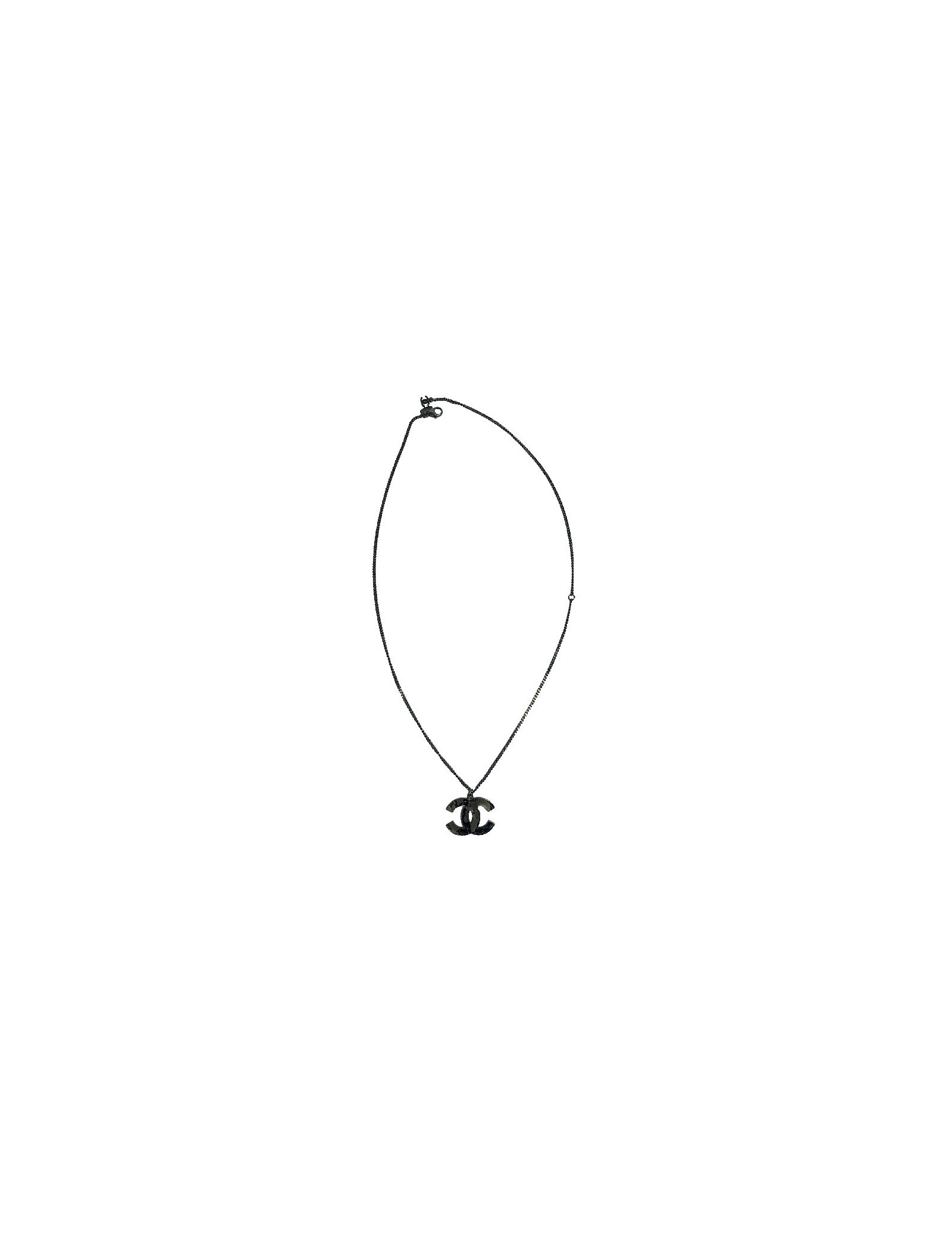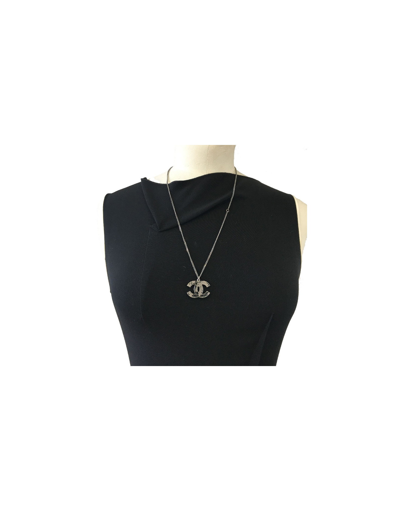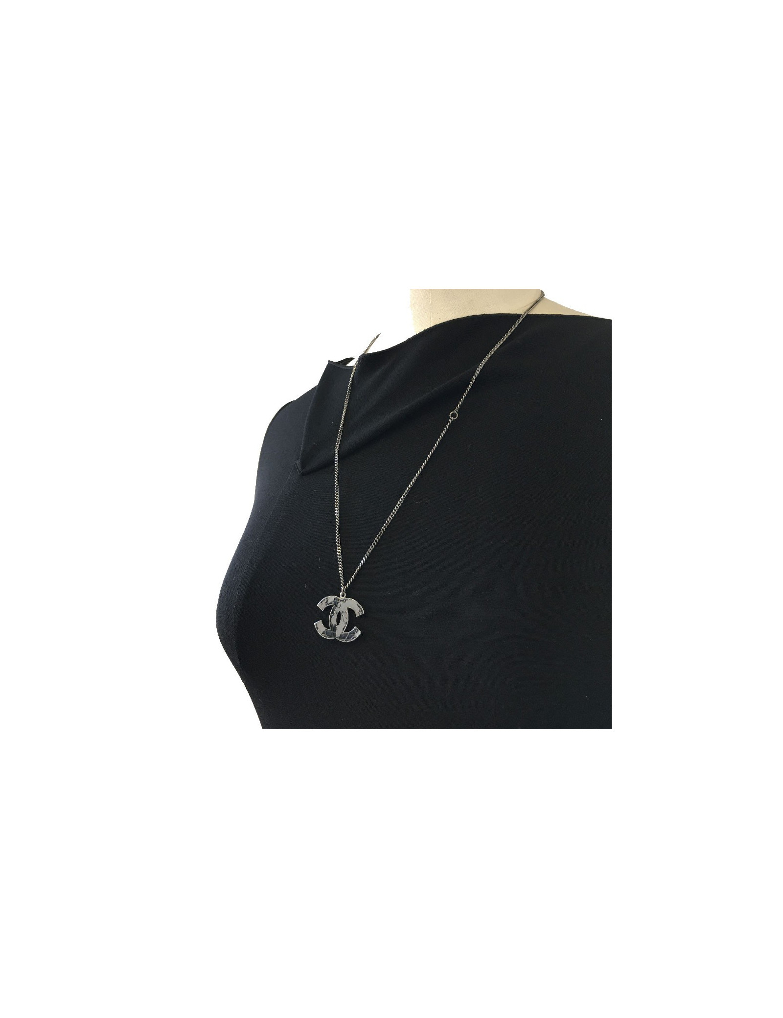Chanel CC necklace in ruthenium metal. Pattern world map on the CC.