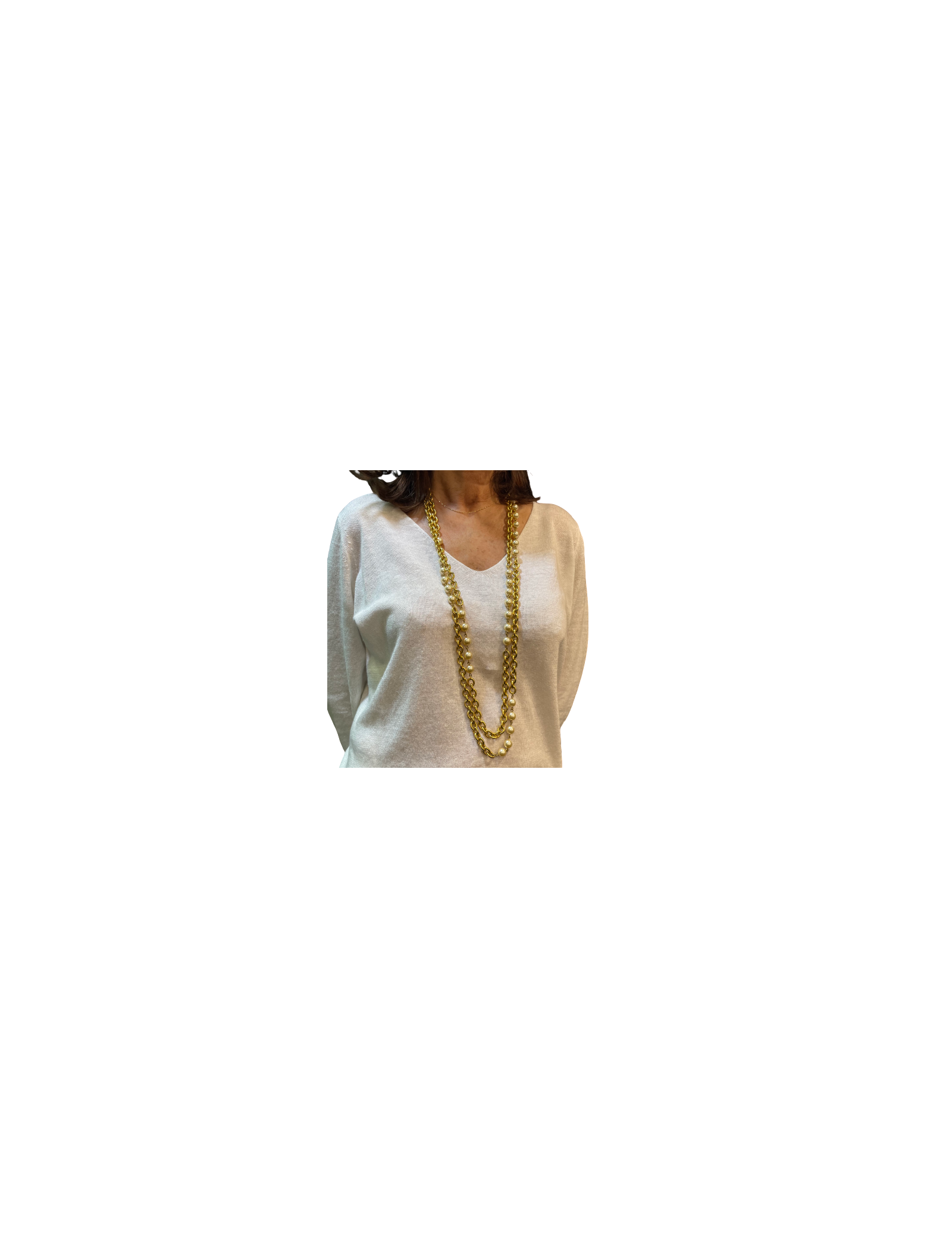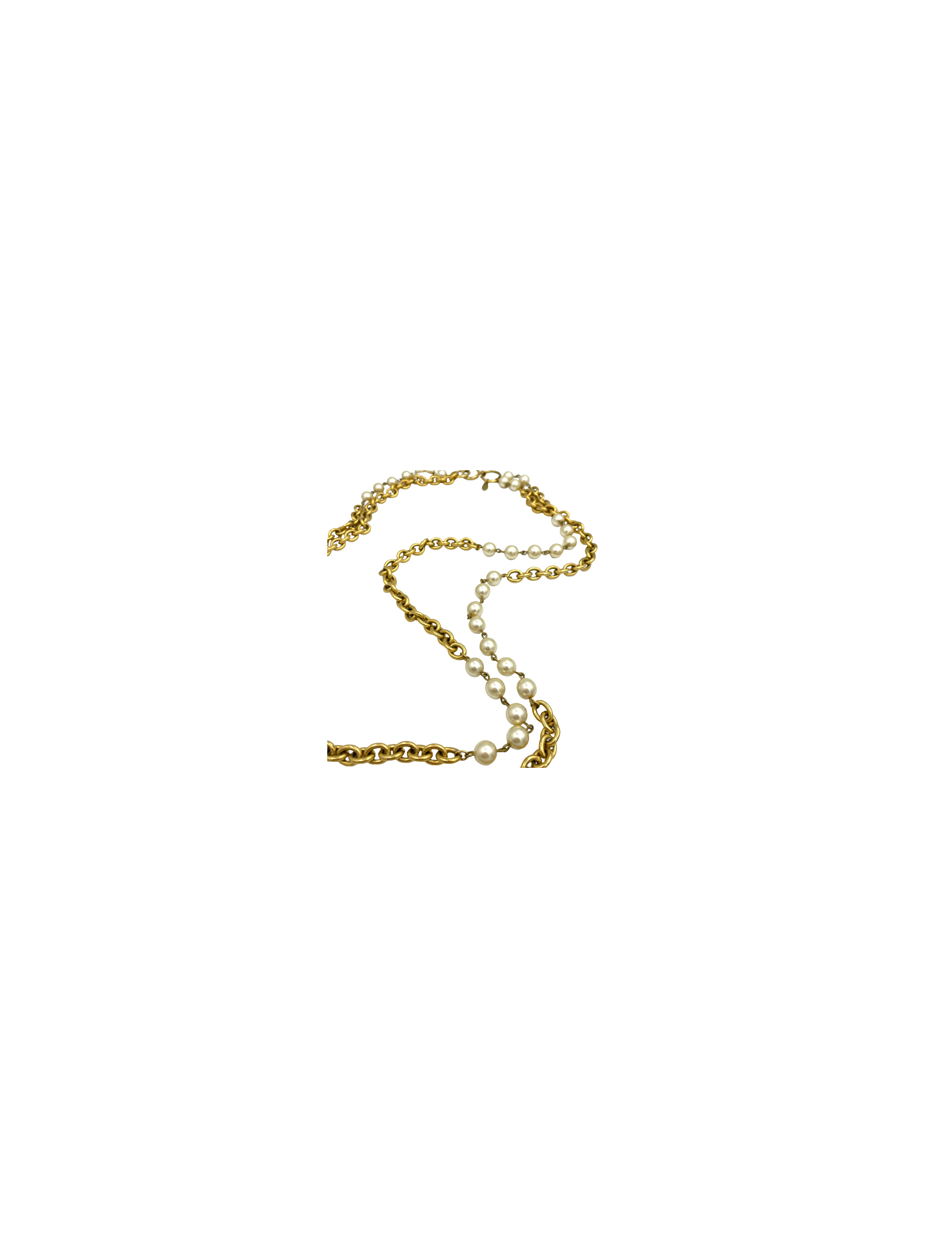 Sold NECKLACES CHANEL vintage gilded chain necklace with coins CHANEL 34399 1,380.00 € CHANEL vintage gilded chain necklace with coins Condition : very goodMade in FranceMaterial : metalColor : goldMeasurements : total length 86 cmHardware : 24K gold plated metalStamp : yesYear : Fall 1995Details : 8 charm coins, can also be worn doubled. View