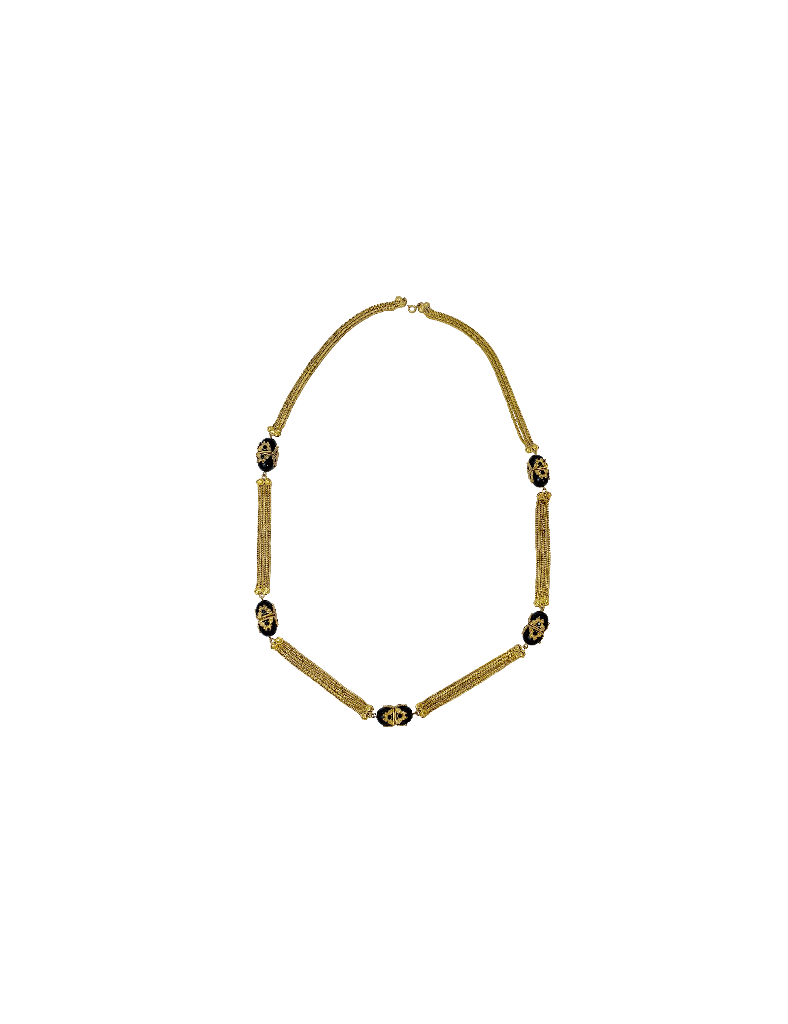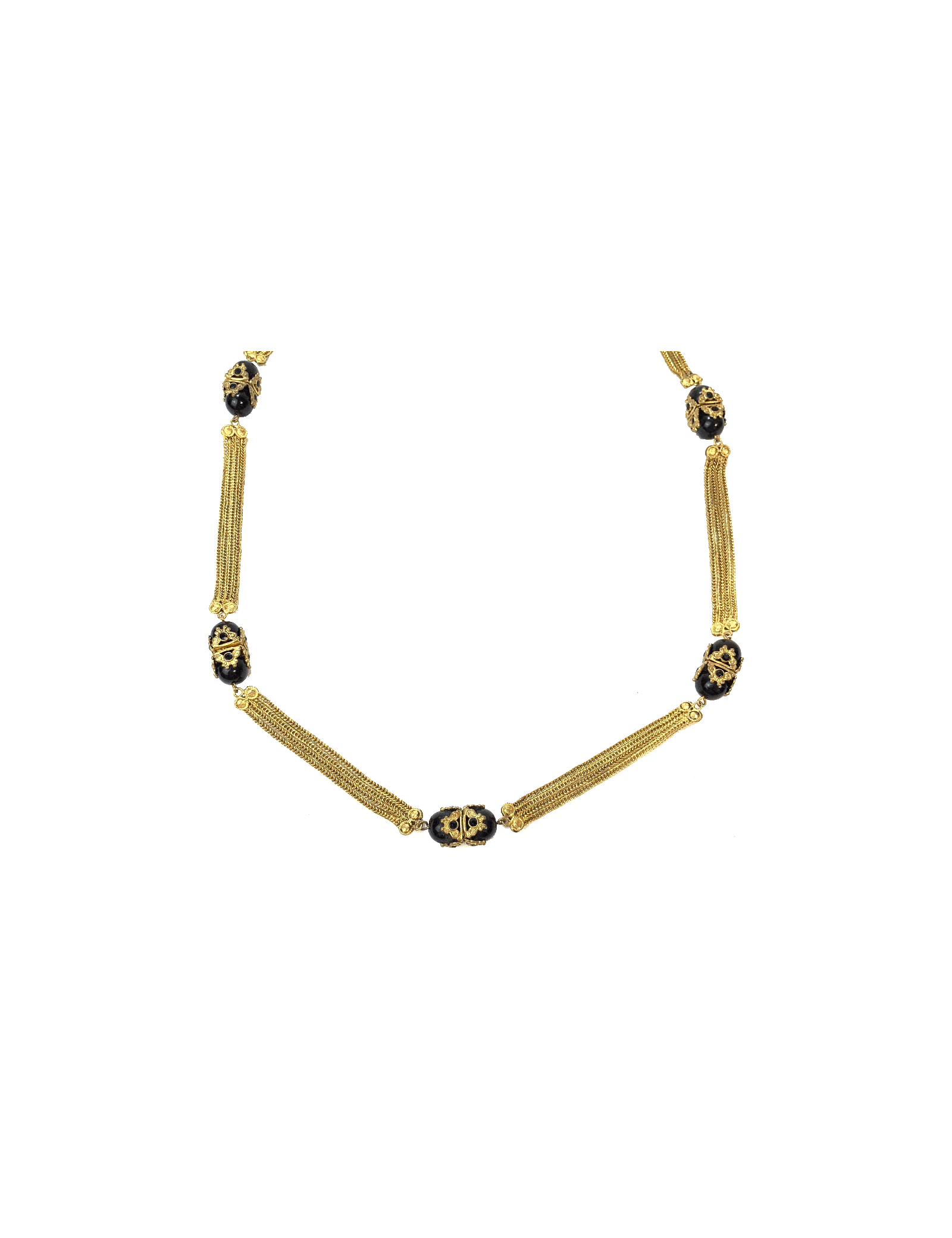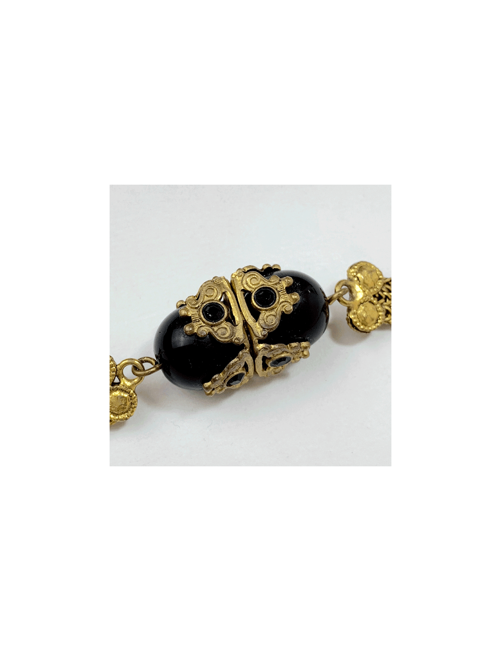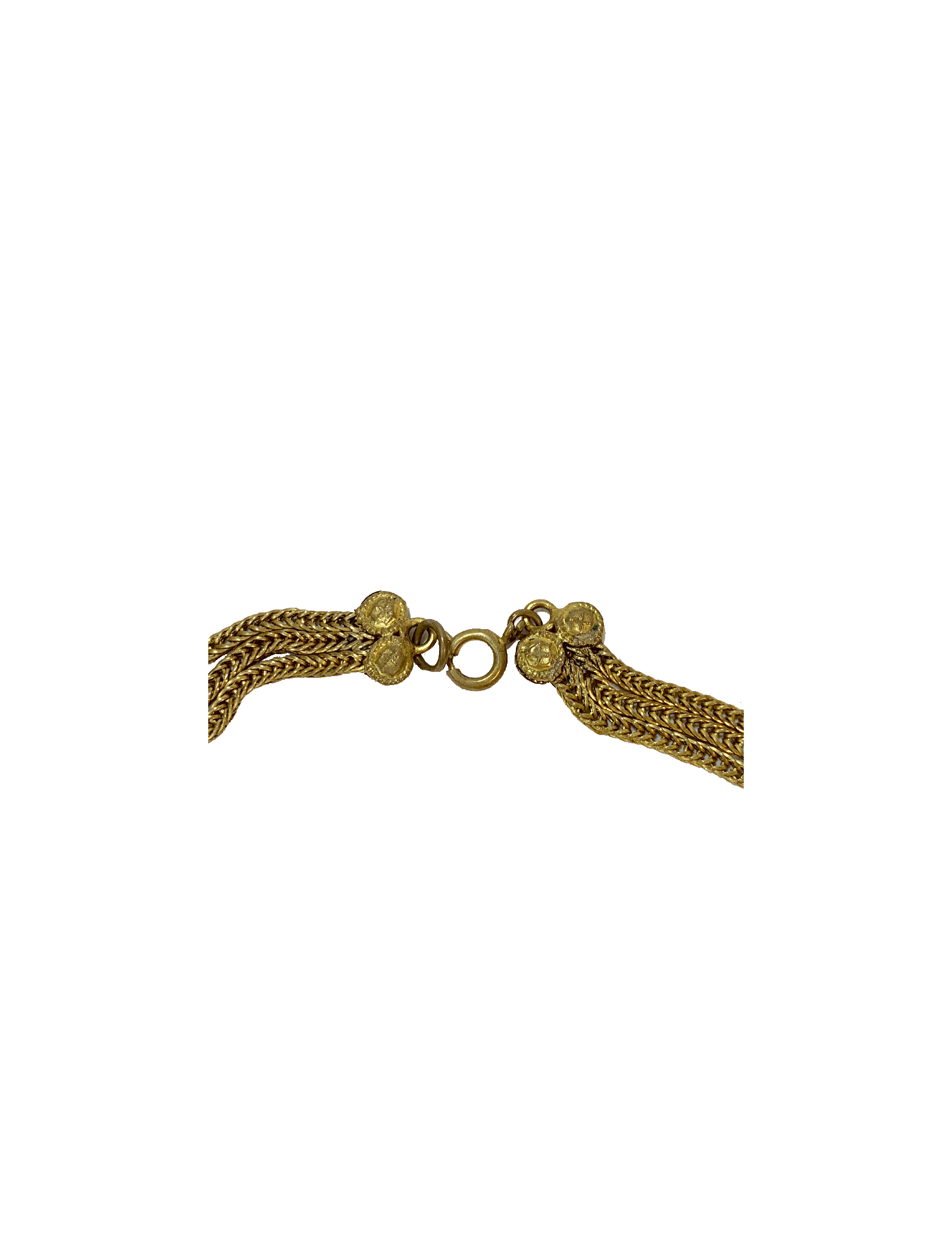 NECKLACES CHANEL vintage baroque molten-glass beads choker CHANEL 36456 1,450.00 € CHANEL vintage baroque molten-glass beads choker Condition : very goodMade in FranceMaterial : pearly molten glass beadsColor : champagneMeasurements : total length 48 cm, adjustable by 6 cmHardware : gold plated metalStamp : noYear : circa 1980Details : beads entirely handmade by GRIPOIX. Some beads have tiny chips, not very visible because the beads are... Add to cart