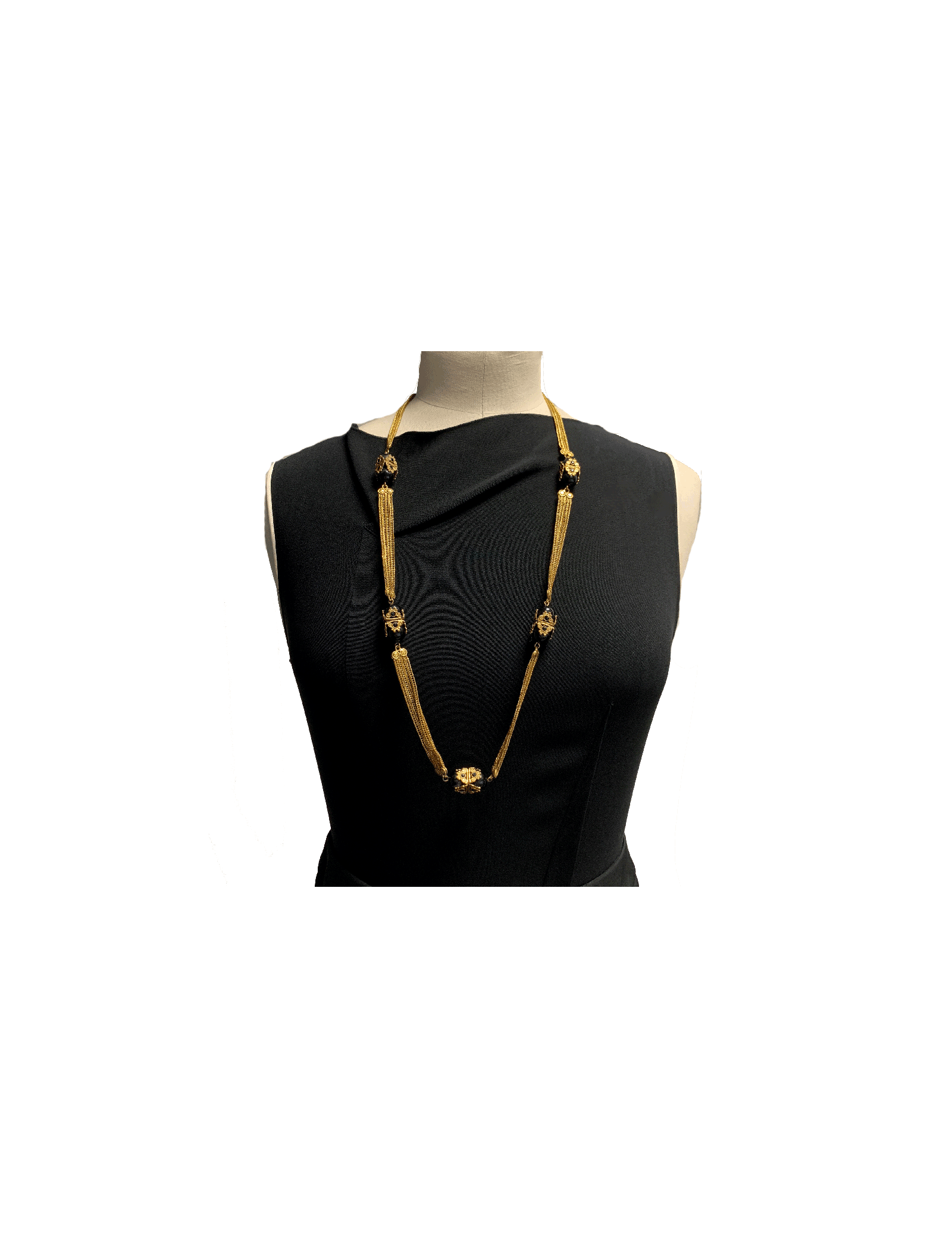 Sold NECKLACES Chanel glass beads breastplate CHANEL 27014 3,550.00 € Chanel glass beads breastplate multicolored Condition : goodMaterial : Glass beads, metalColor : multicolorDimensions : Total length: 54 cmBreastplate height: 5 cm Made In France View