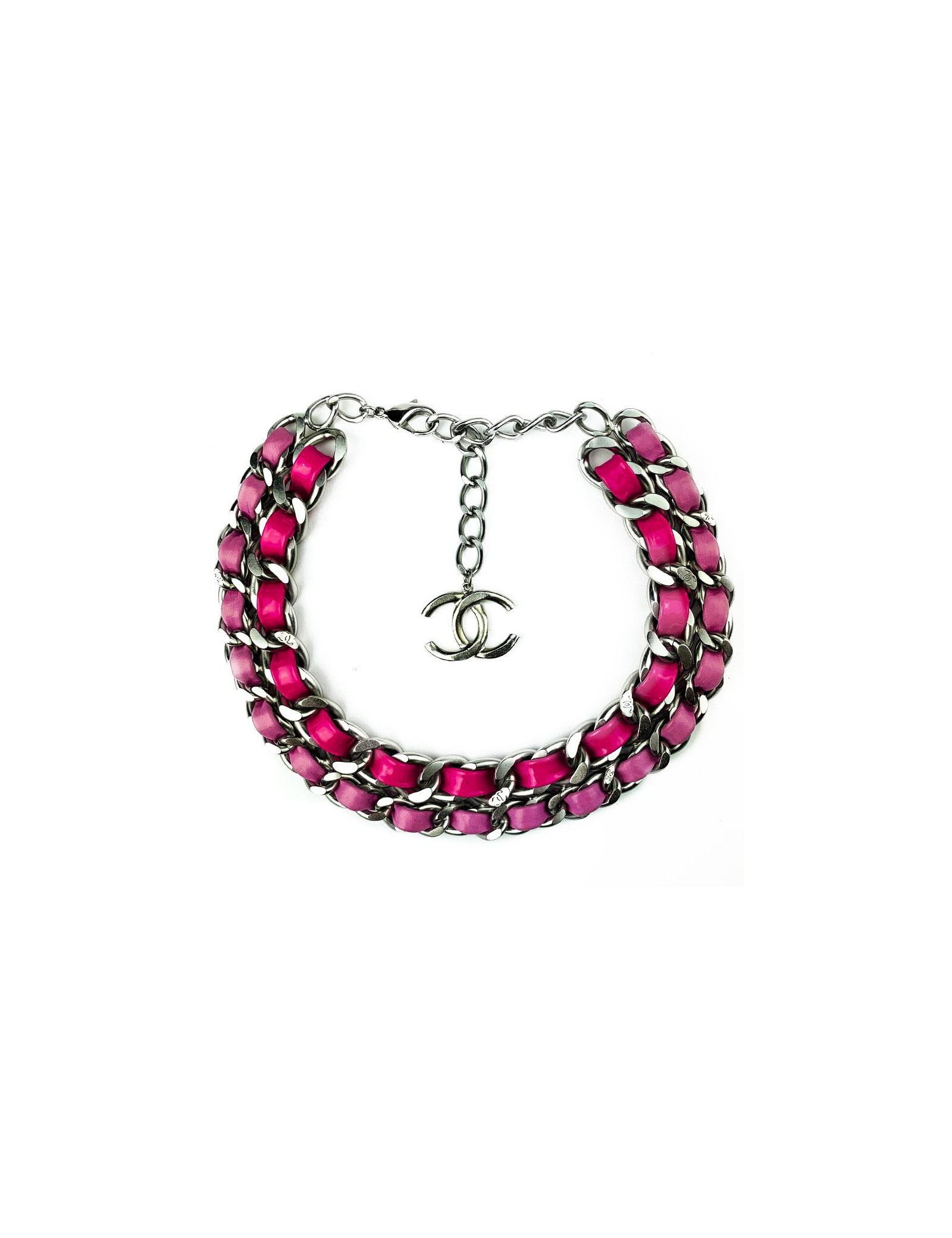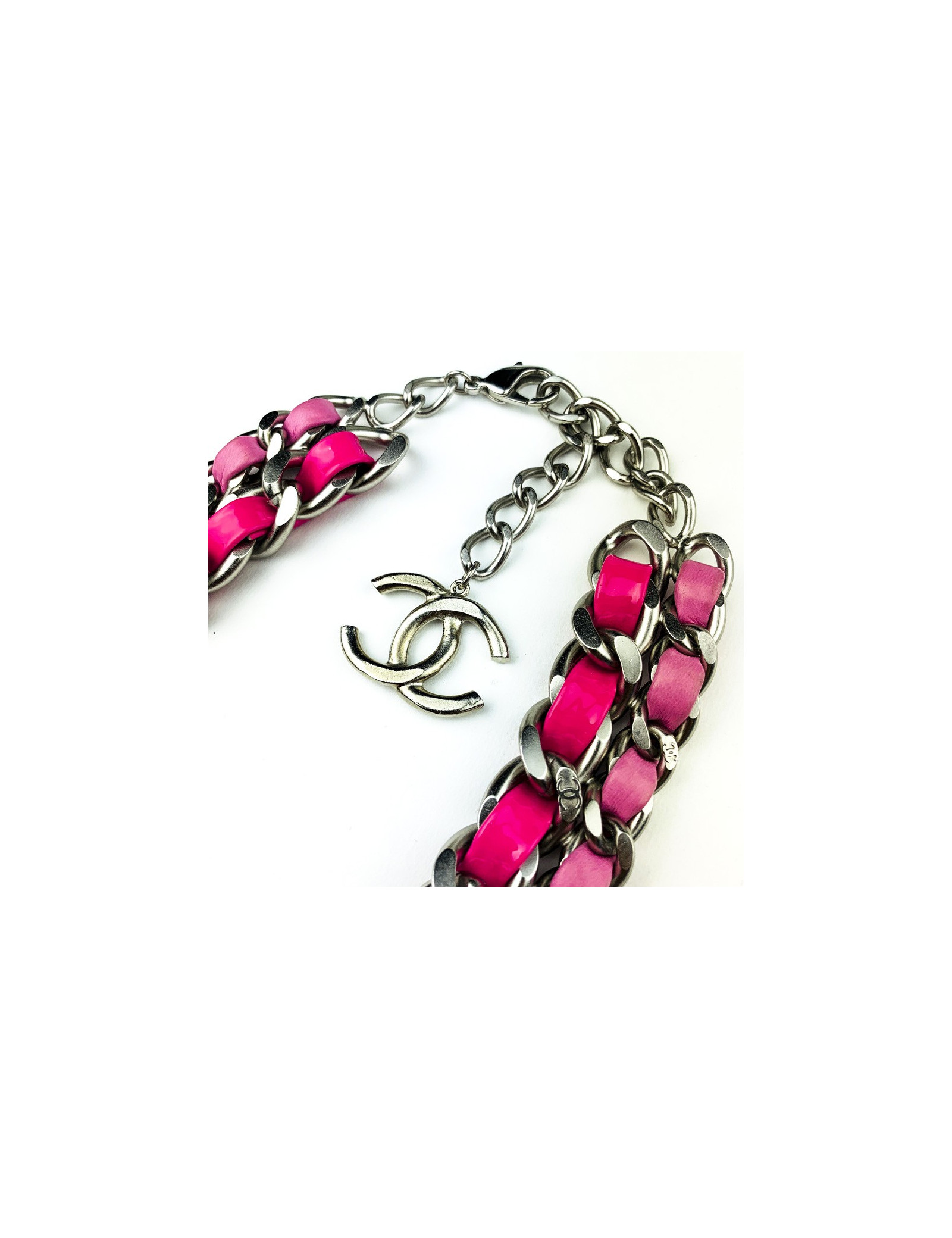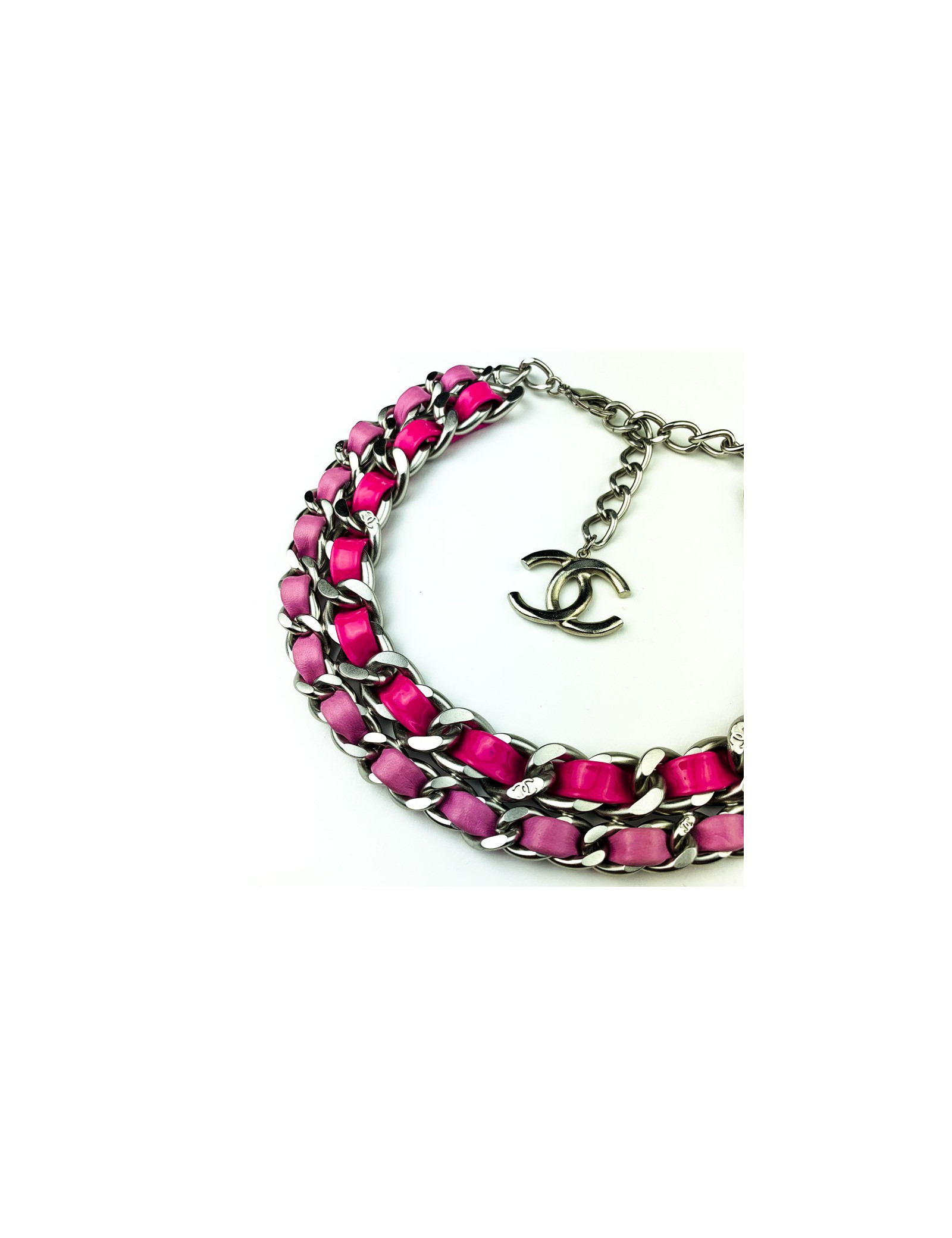 Last items in stock NECKLACES CHANEL chains and coral necklace CHANEL 24272 1,480.00 € CHANEL chains and coral necklace Condition: very goodMaterials: metal, rhinestones, enamelColors: gold, ruby red, coral, transparentHardware: gold plated metalMeasurements: at its shortest 40cm, at its longest: 46cmPendant: 10x7.2cmDetails: A rare piece! Choker necklace composed of 7 fine gold-plated metal chains and a monumental central jewel... Add to cart