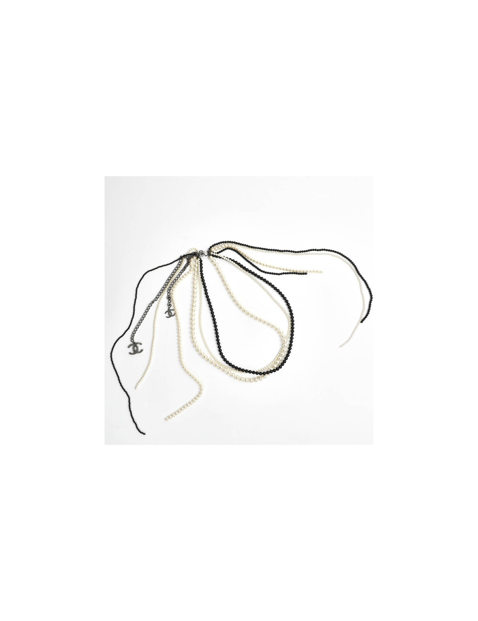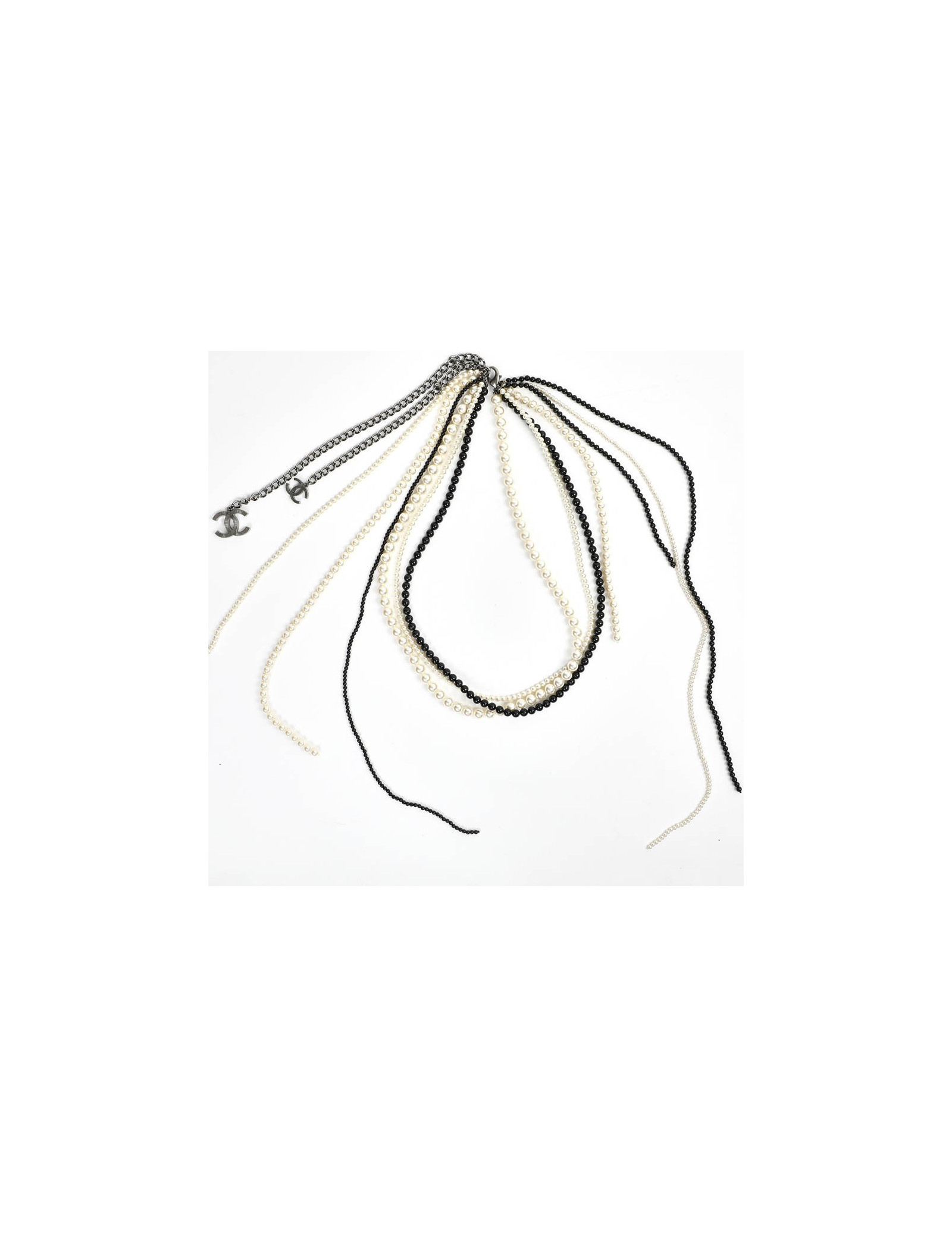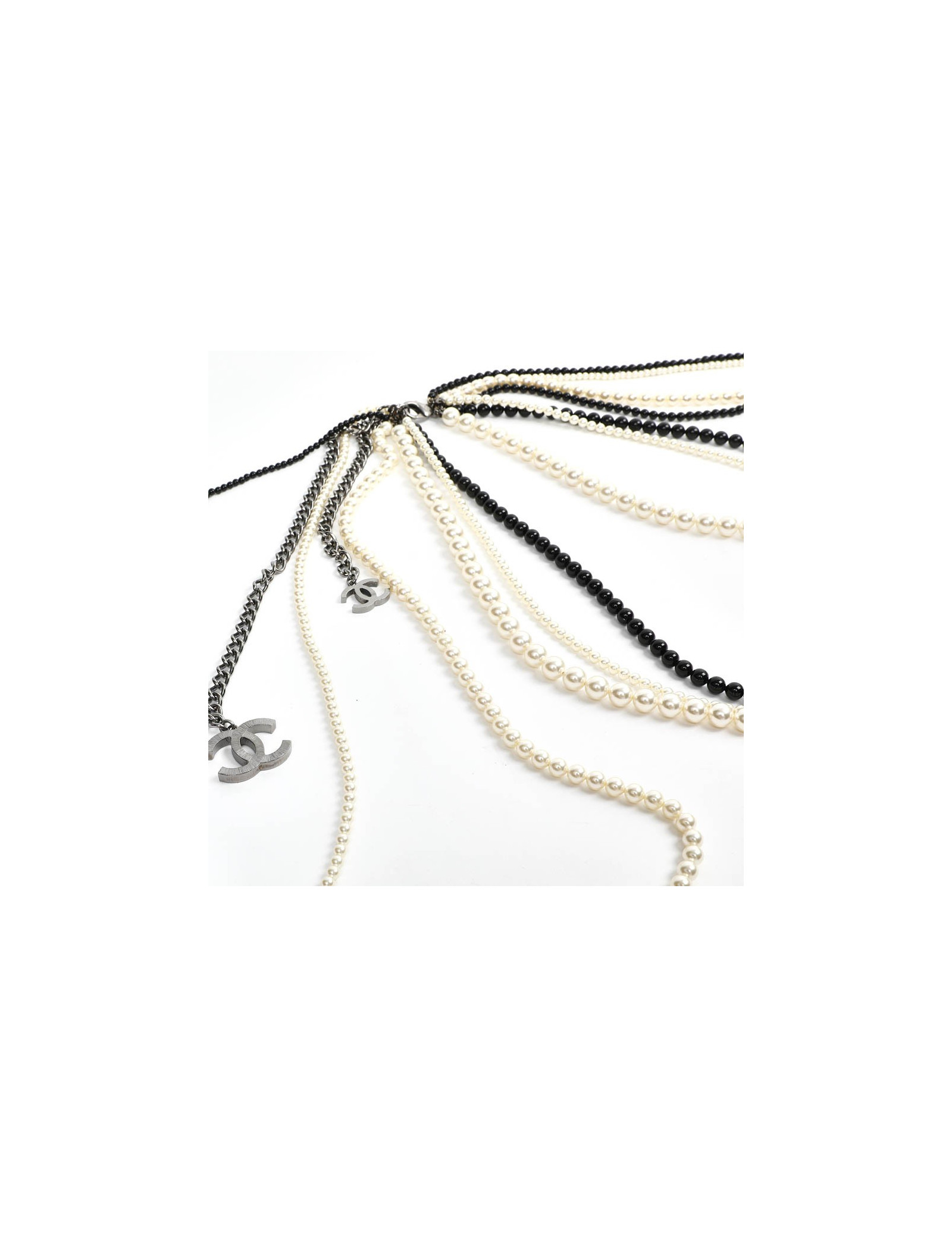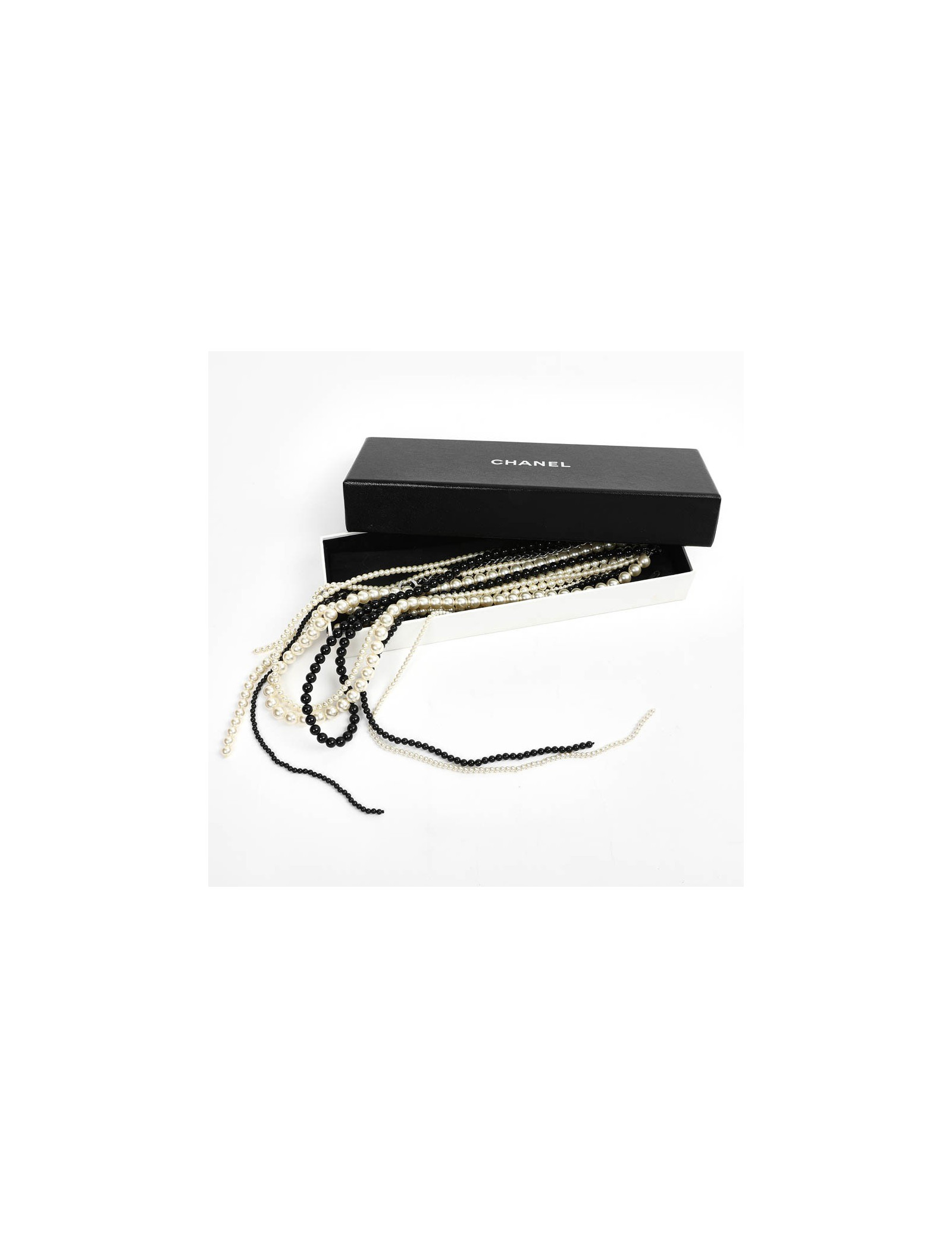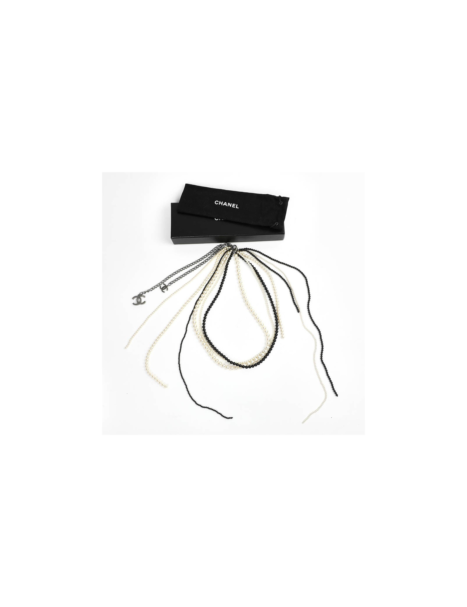 Delightful Chanel necklace made of pearly beads of 2 colors. There are 2 chains that end with two double "C".