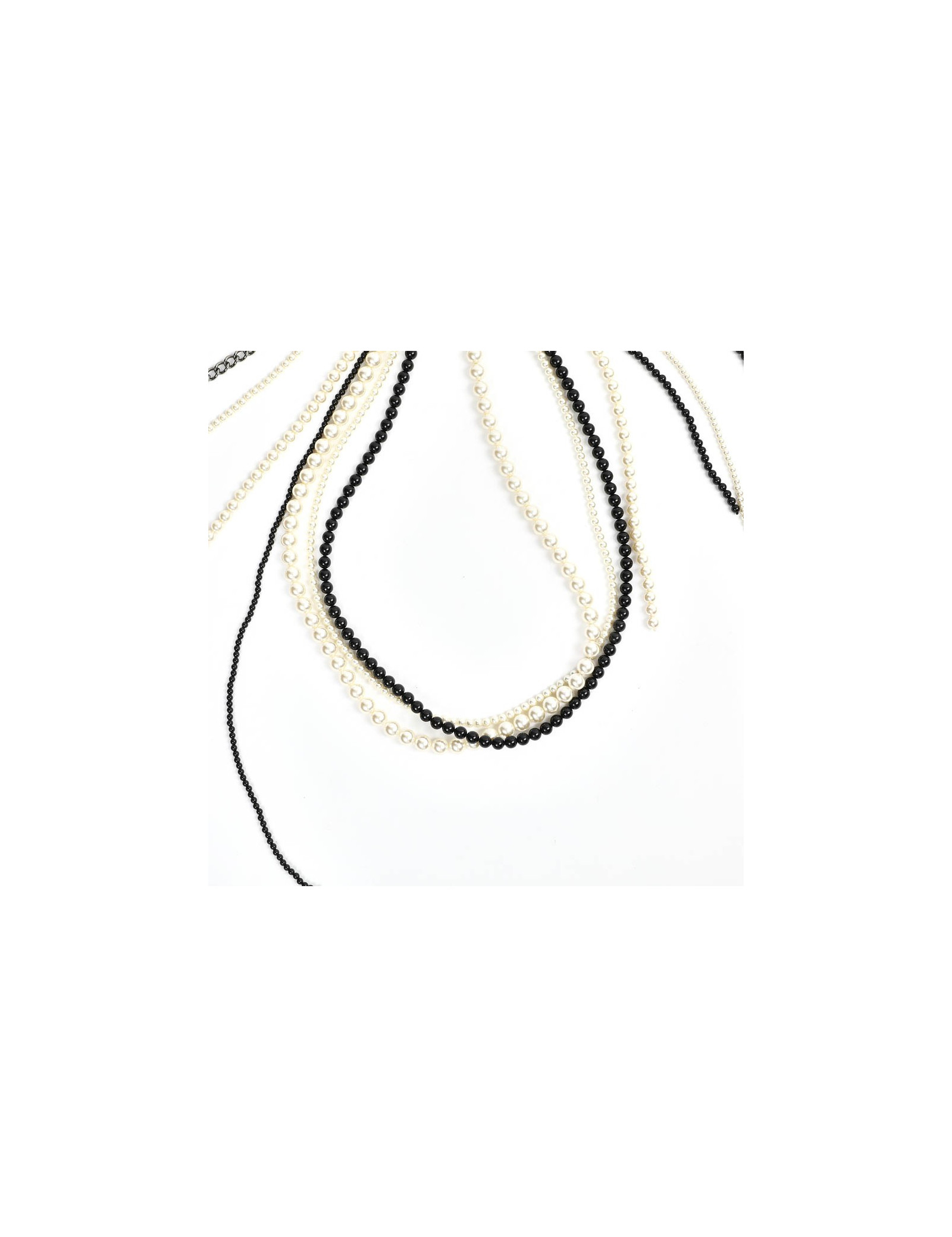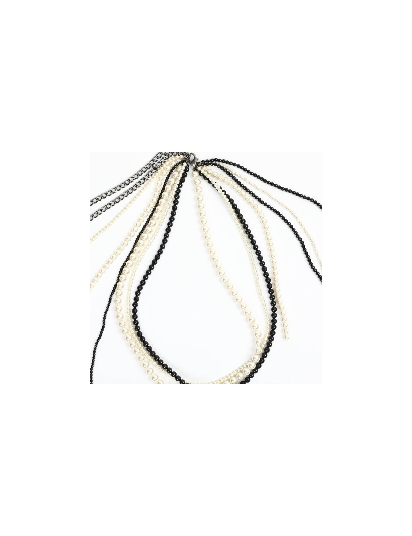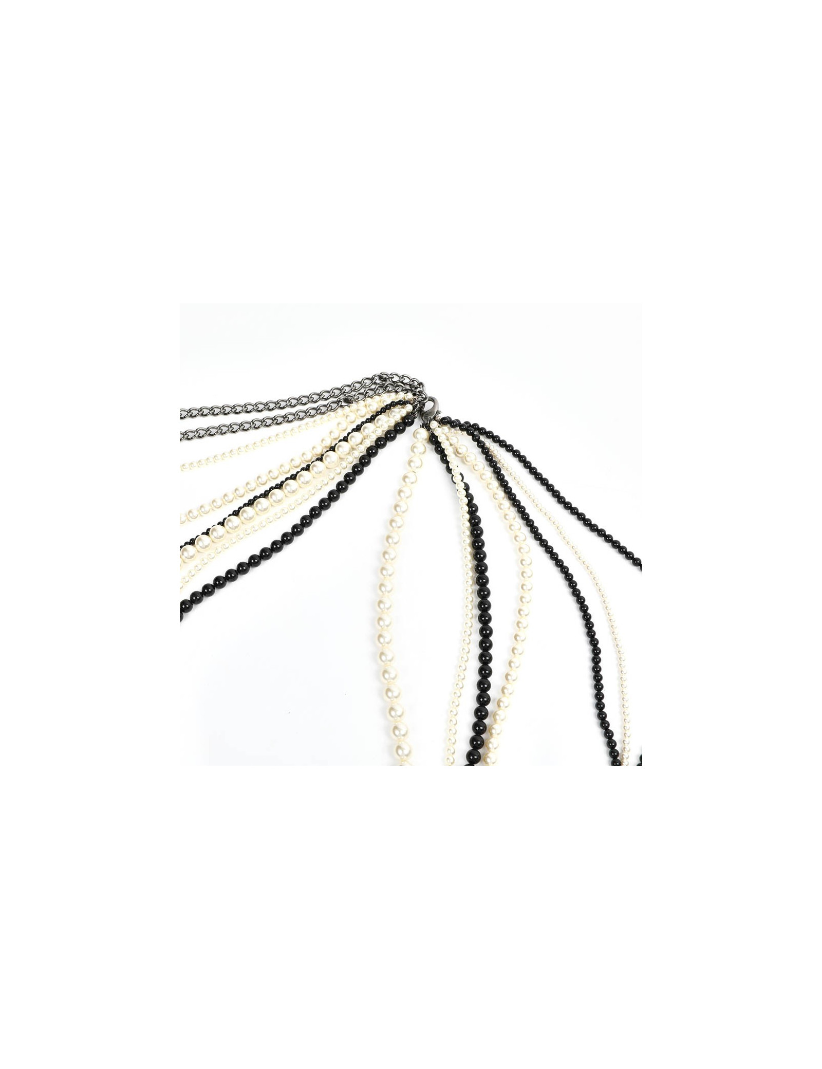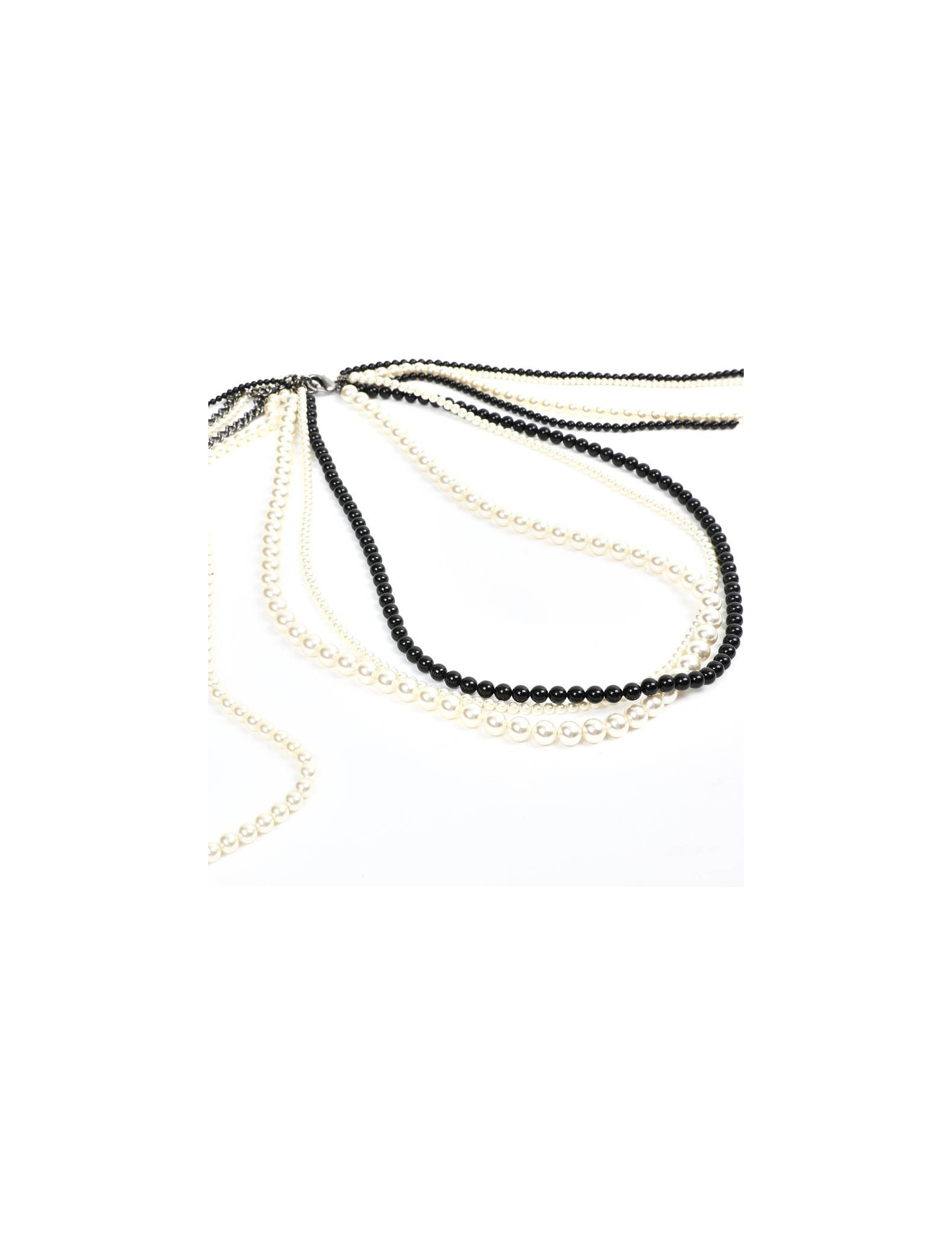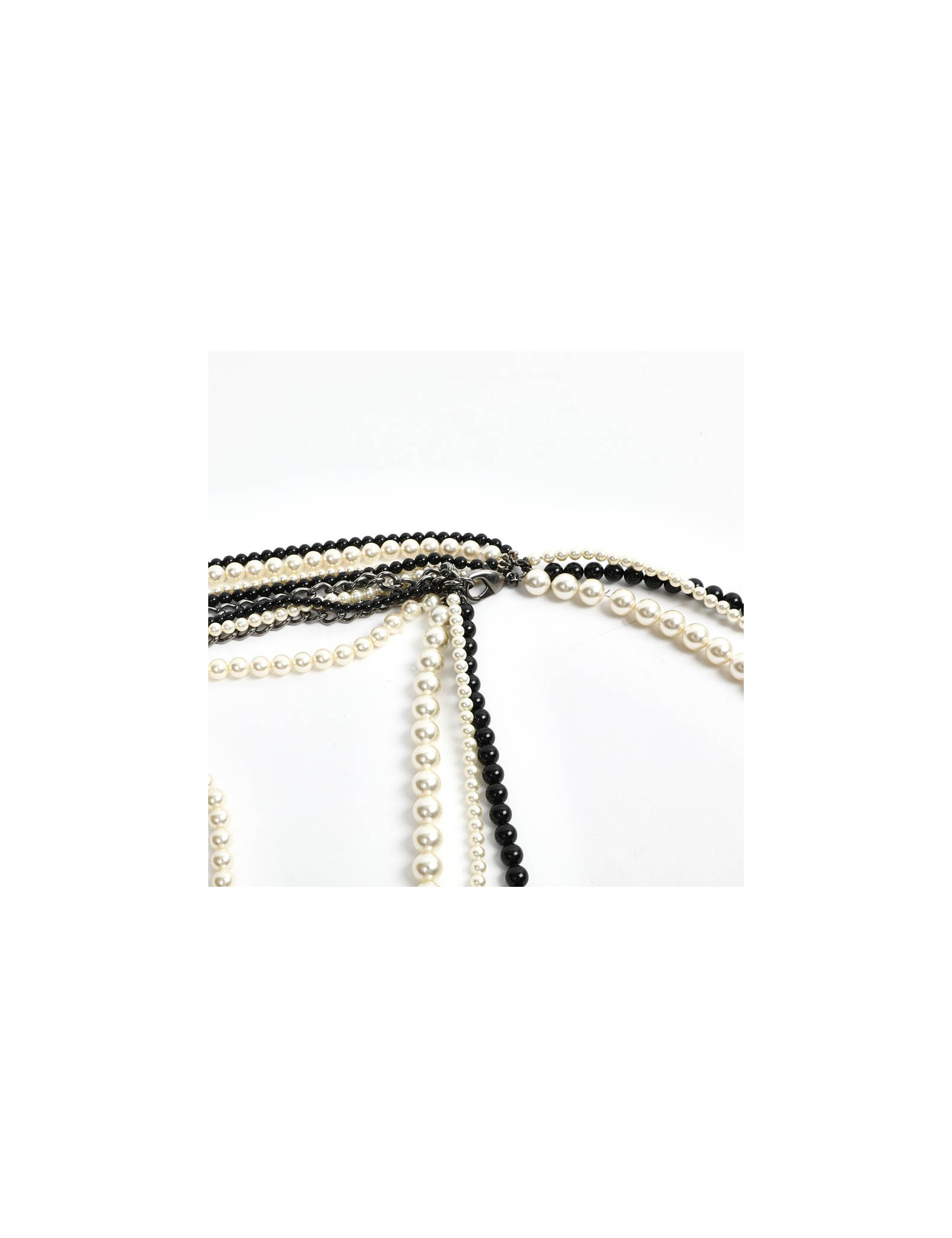 Delightful Chanel necklace made of pearly beads of 2 colors. There are 2 chains that end with two double "C".