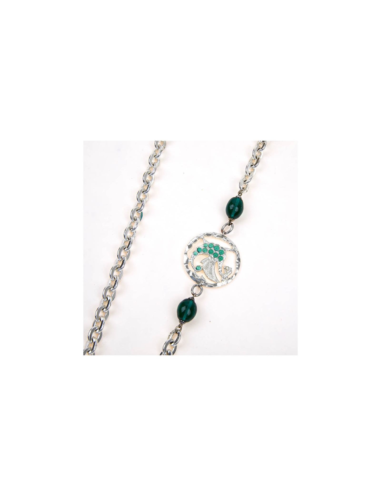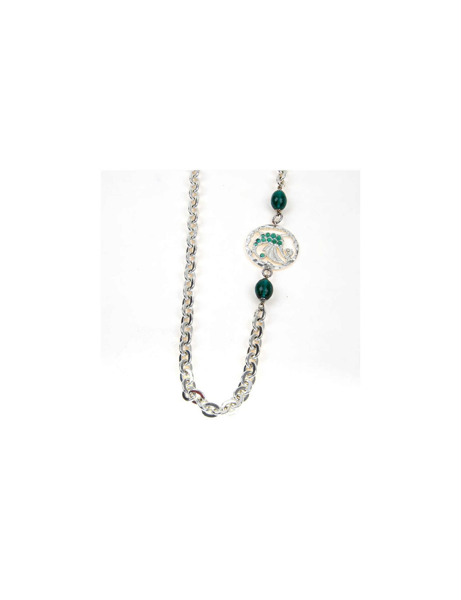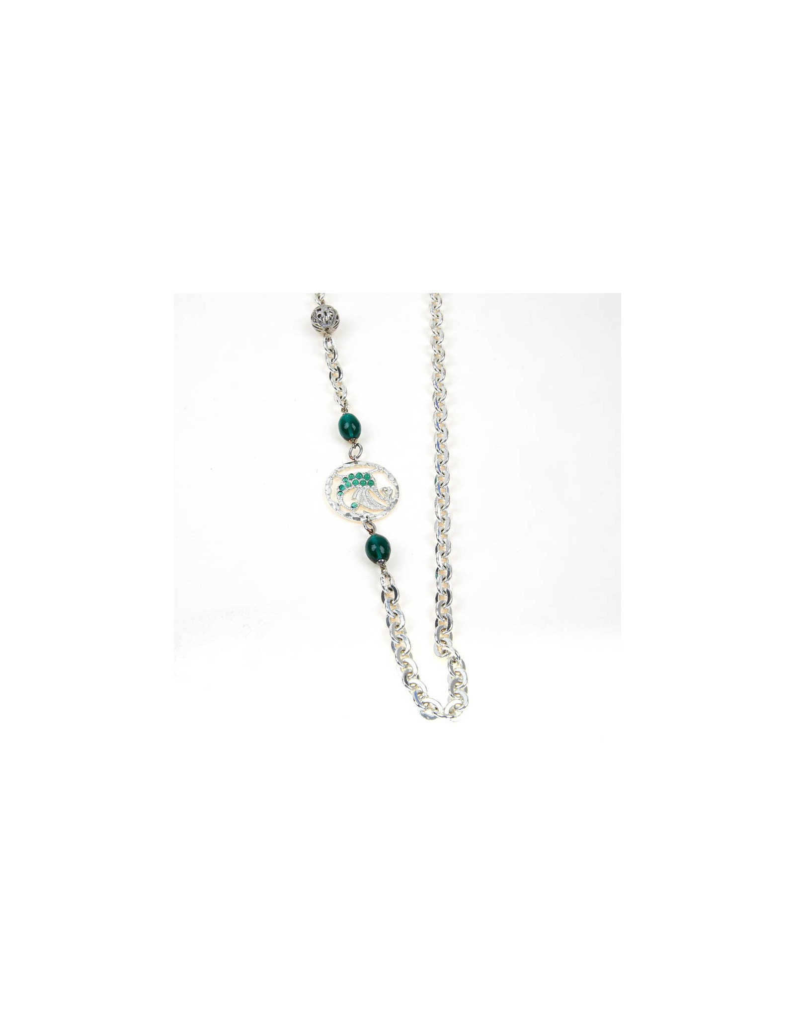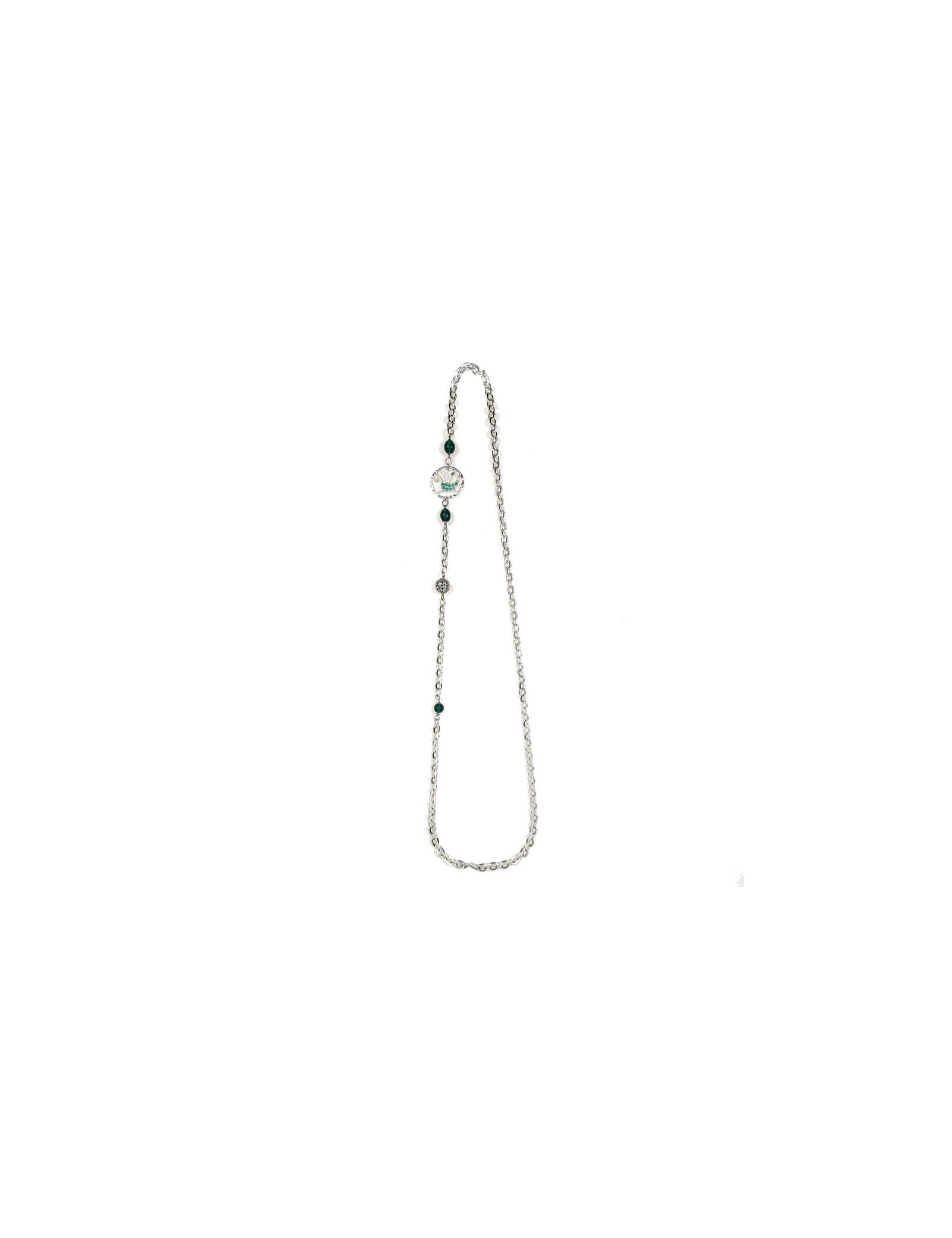 NECKLACES MARGUERITE de VALOIS amber and emerald molten glass flower necklace MARGUERITE DE VALOIS 19177 550.00 € MARGUERITE DE VALOIS flower necklace Model :Long Couture necklaceMaterials :metal, molten glassColors : gold, emerald, amberHardware: gold plated metalMeasurements: total length : 79,5 cm Pendant : 3,2 x 3,2 cm Add to cart