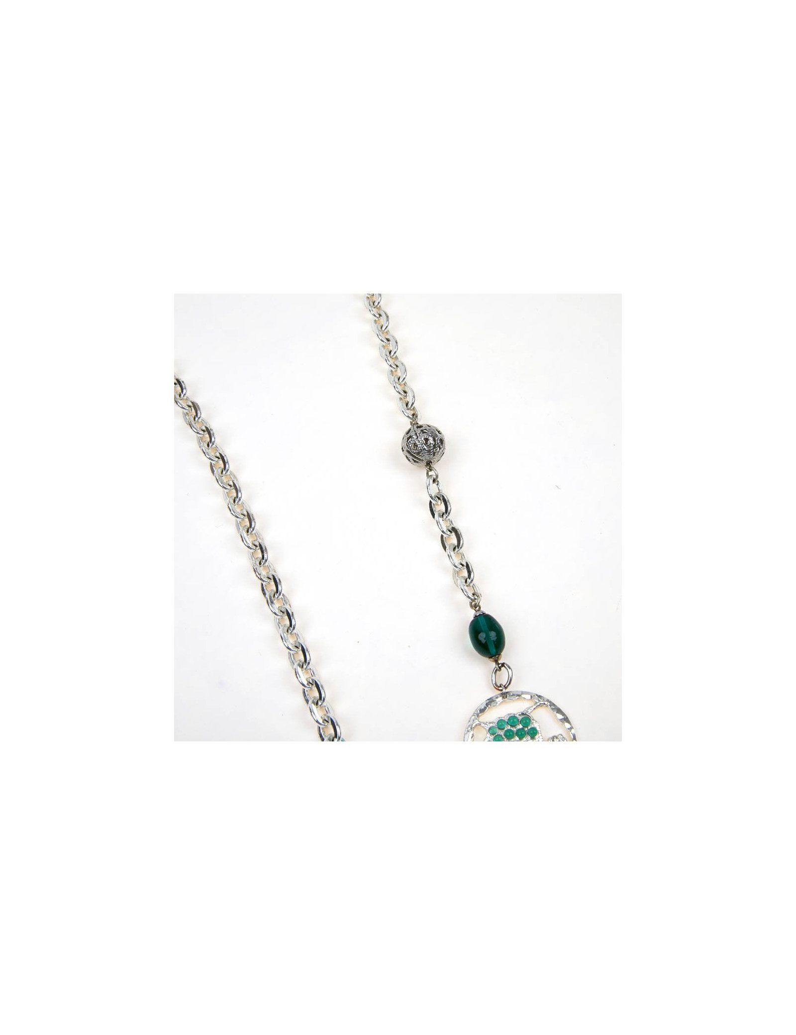 NECKLACES CHRISTIAN DIOR charms belt-necklace DIOR 36876 1,150.00 € CHRISTIAN DIOR vintage belt-necklace Condition : very goodMade in FranceMaterials : metal, rhinestonesColor : goldMeasurements : total length: 80 cm, width : 2.5 cmStamp : yesDetails : Can be worn as a necklace or belt, adjustable with a toggle clasp. No rhinestones are missing on these charms. Add to cart