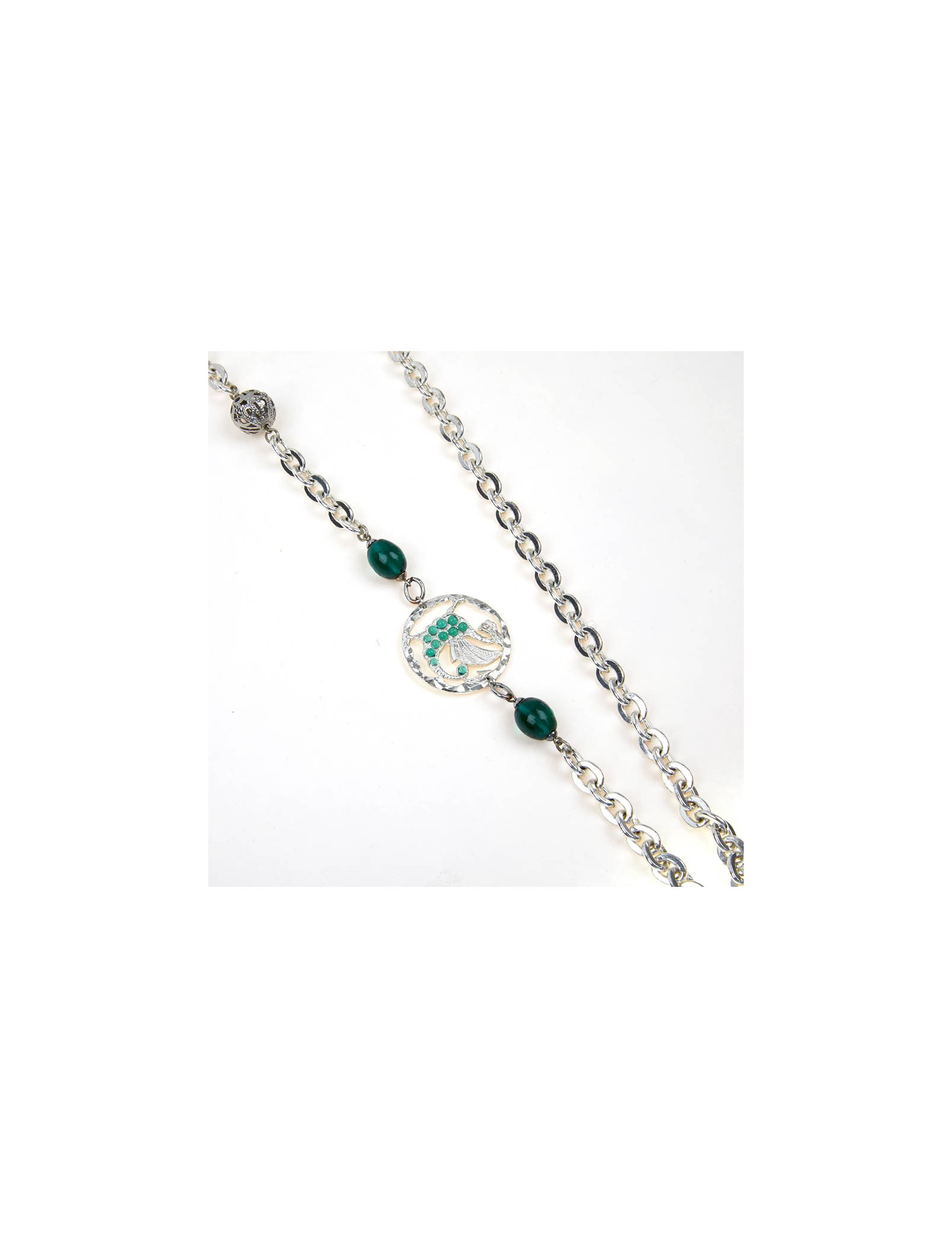 NECKLACES LOULOU DE LA FALAISE choker necklace in gilded metal and dove pendant in molten glass LOULOU DE LA FALAISE 21897 390.00 € Vintage. Loulou de La Falaise choker necklace in golden metal and brilliant Swarovski. It was manufactured at the time by the House Gripoix. The pendant represents a dove made of white molten glass. In very good condition. Size: short neck 35 cm, longer 41 cm, size of the jewel 4x3.5 cm. Will be delivered in a Valois Vintage Paris dustbag. Add to cart