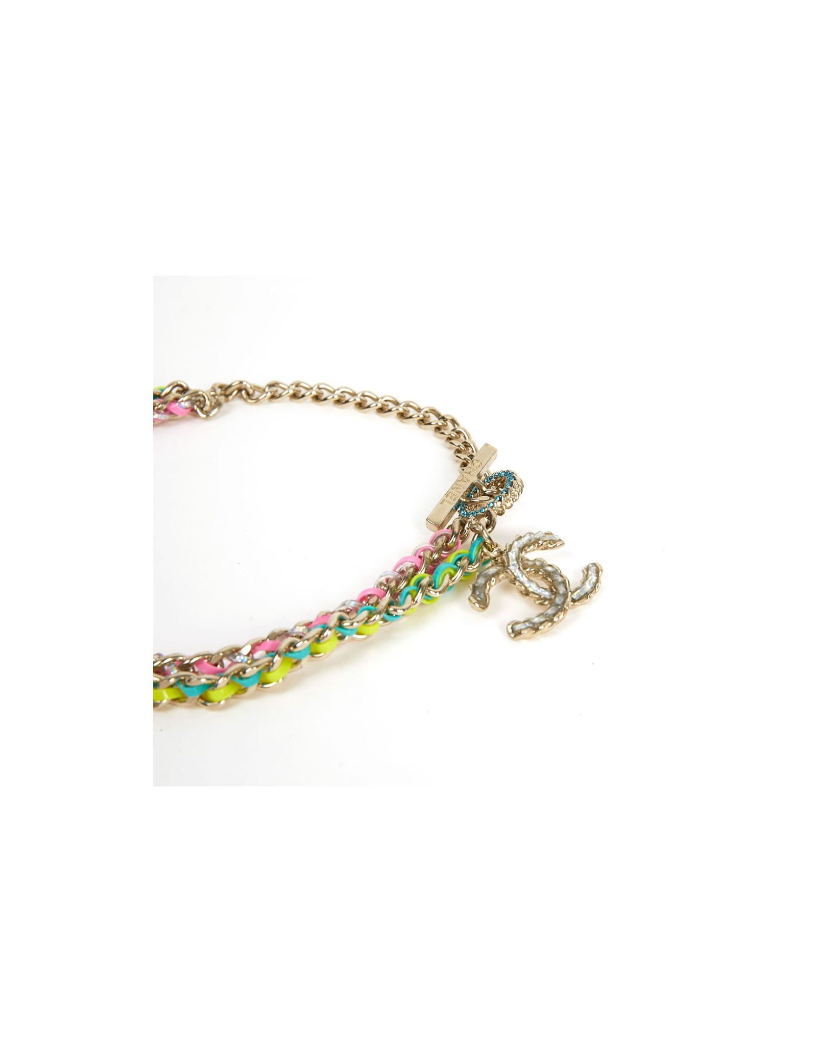 Last items in stock NECKLACES CHANEL multichain pearls and rhinestones long necklace CHANEL 32622 7,500.00 € CHANEL multichain pearls and rhinestones long necklace Condition : very goodMade in FranceGender : long necklaceMaterials : metal, rhinestones, pearly beadsColors : gold, mother-of-pearlMeasurements (adjustable) : 90-100 cmYear: Spring 2016Hardware : light goldDetails : multi-row necklace with Chanel coins and pendant, CC pendant on clasp Advantage Valois... Add to cart