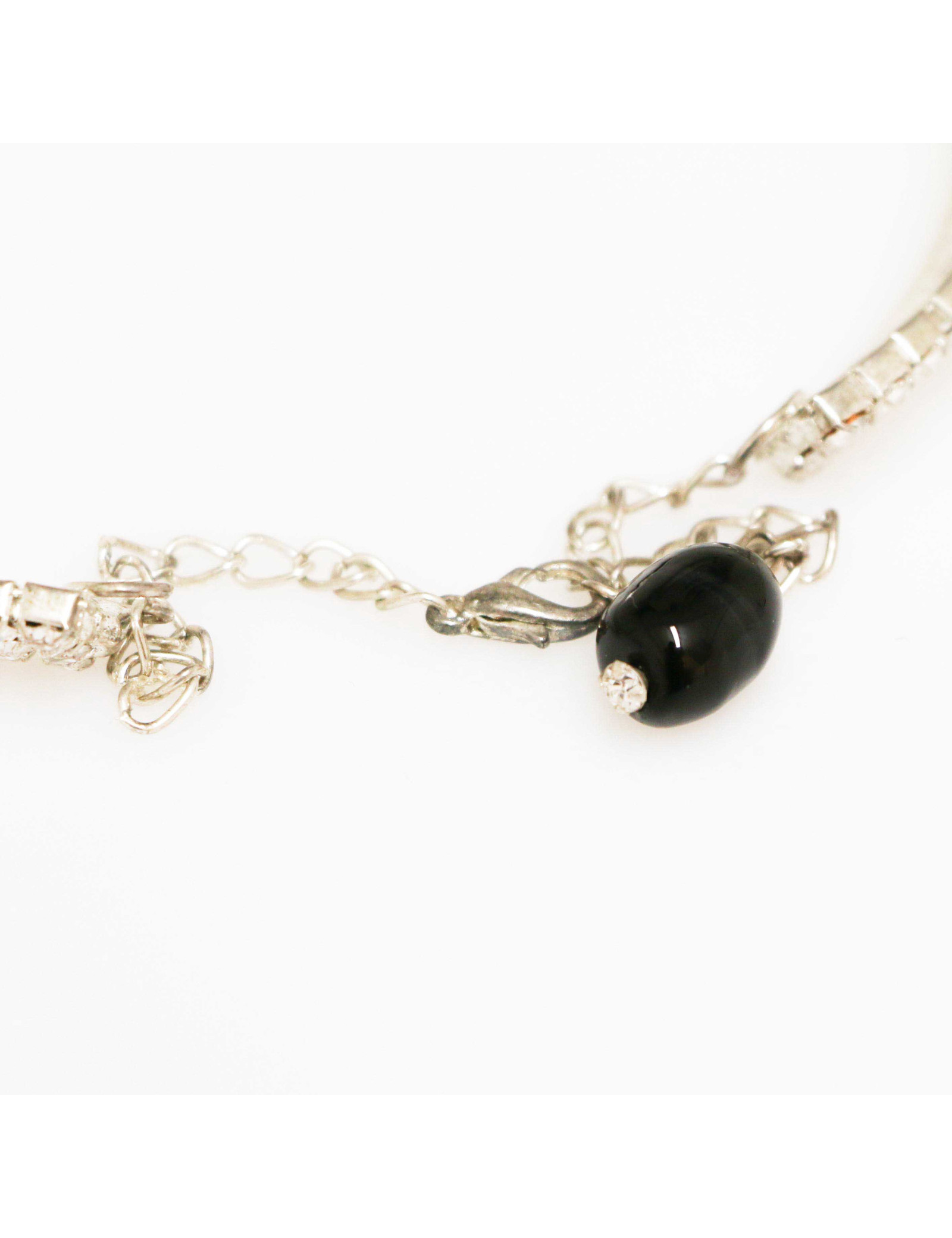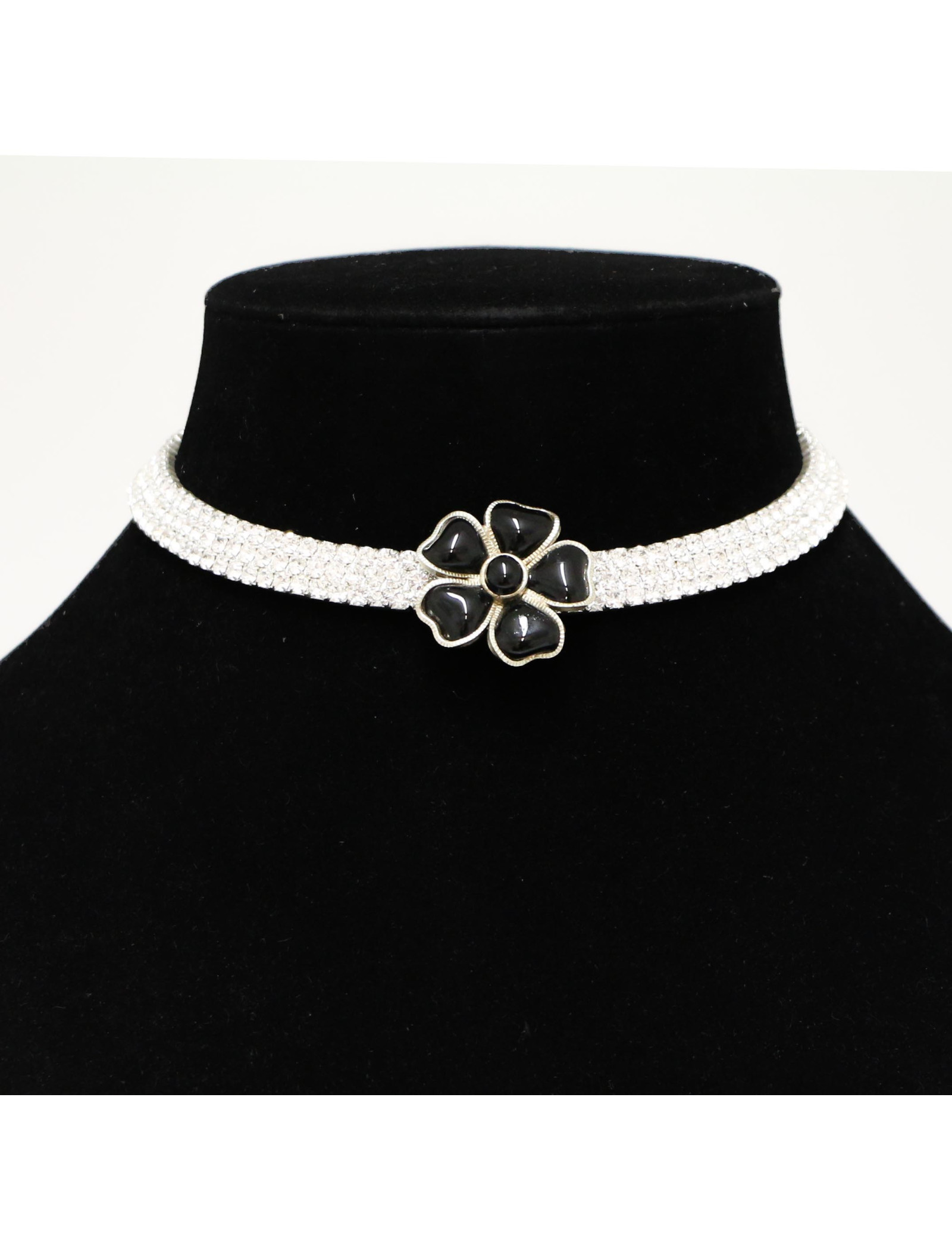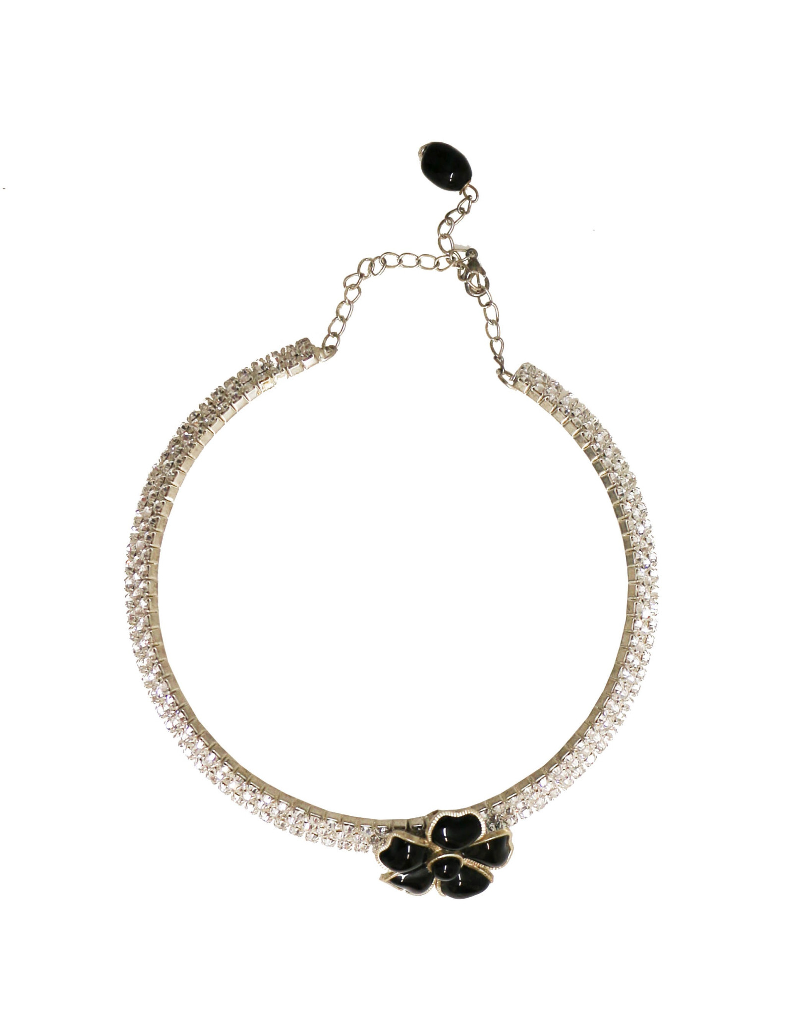 NECKLACES CHANEL couture ceremonial necklace CHANEL 33739 3,500.00 € CHANEL couture ceremonial necklace Condition : very goodMaterials : pearls, stones, resin, metalColors : black, burgundy, greyMeasurement : total length: 45 cmDetails : triple-row necklace with large pendant, CC on metal next to rhinestones. Baguette-cut rhinestones. Triple rows of stones and rhinestones. Add to cart