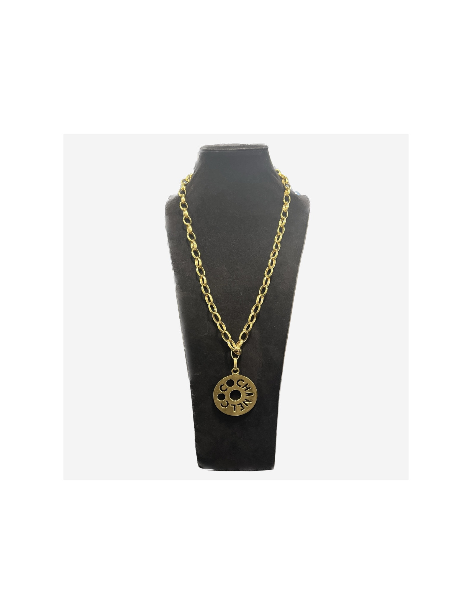 Details: round medallion with the inscription COCO CHANEL, hook clasp (with signature)