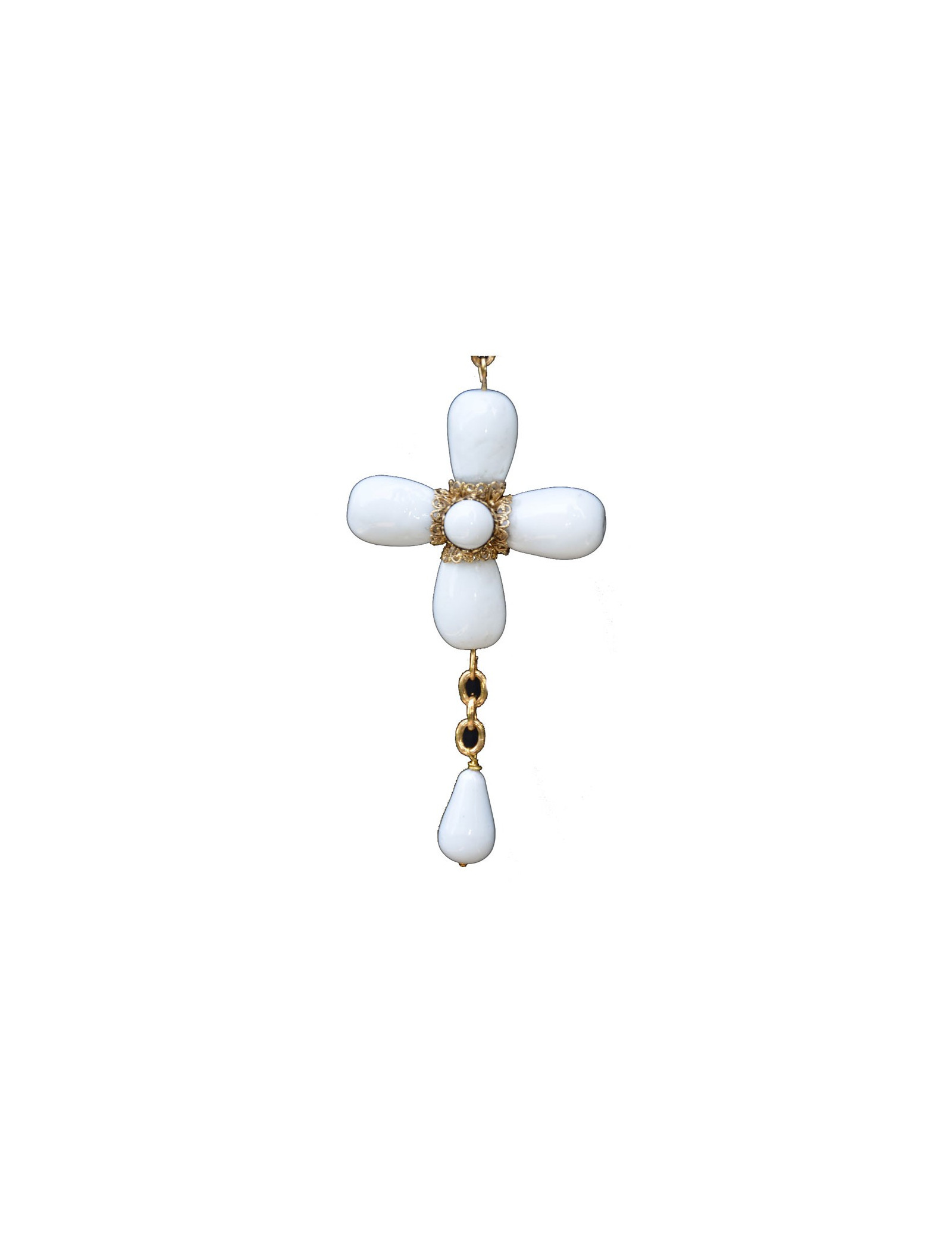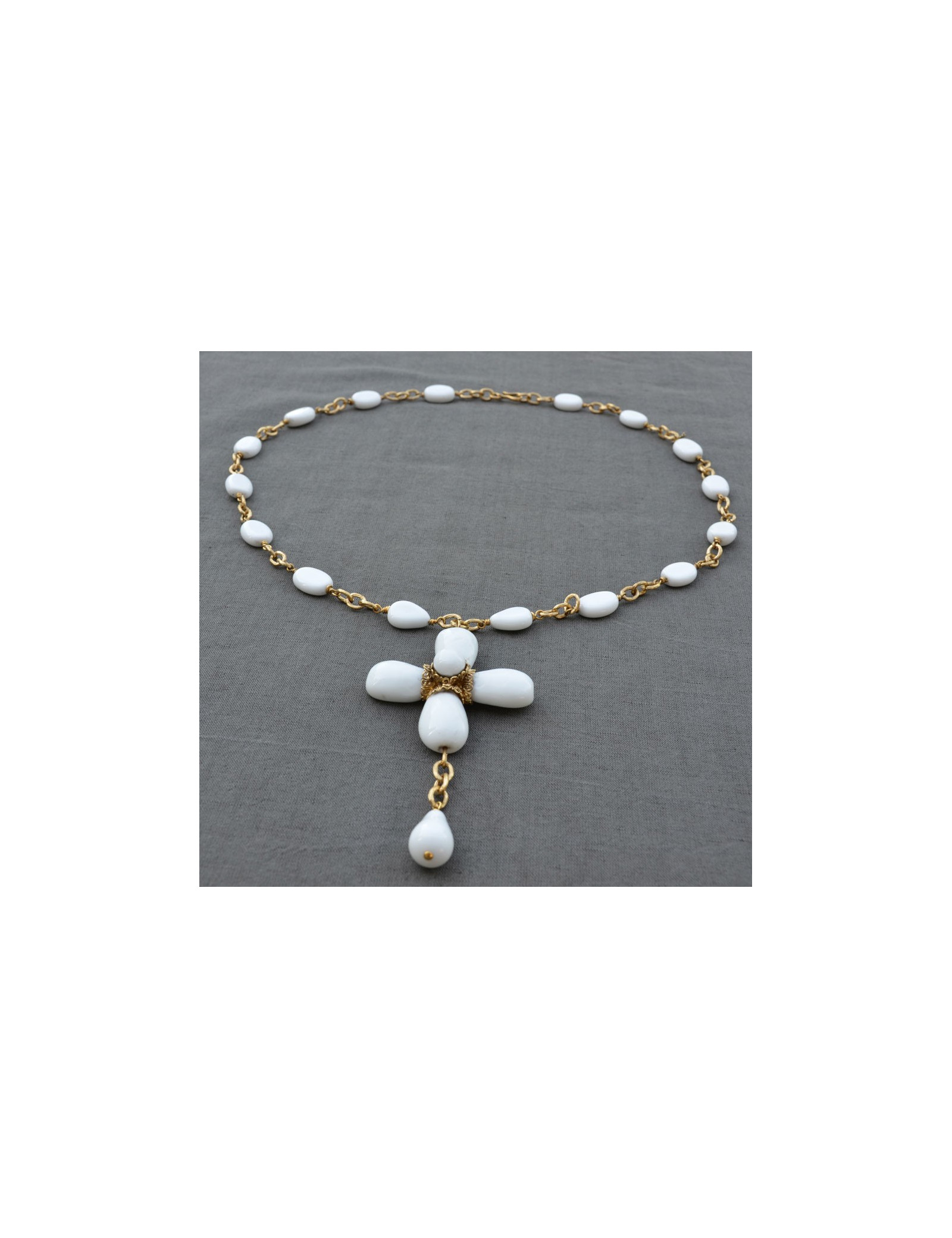 Saltire cross Marguerite de Valois in white glass and metal gold fine gold.