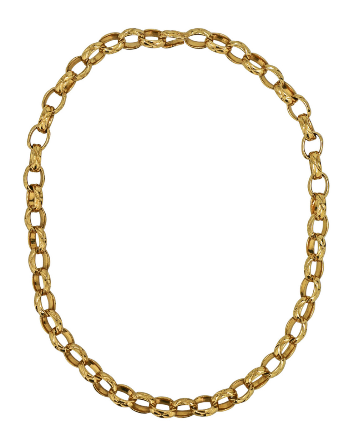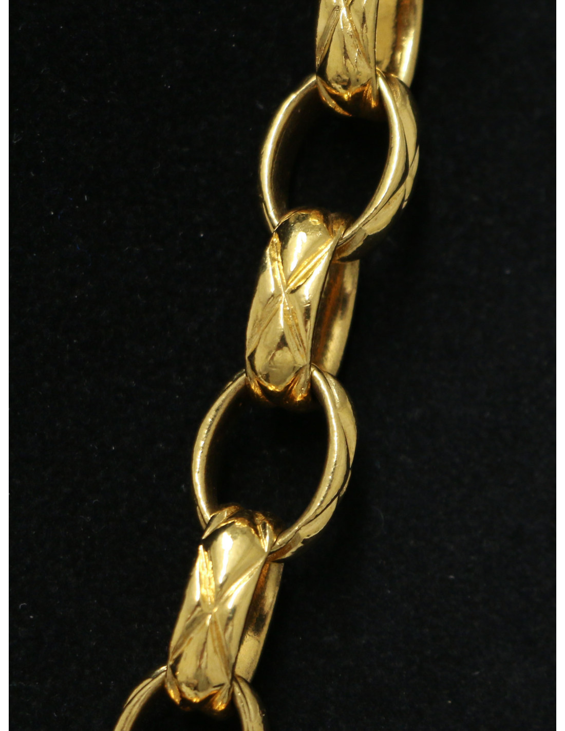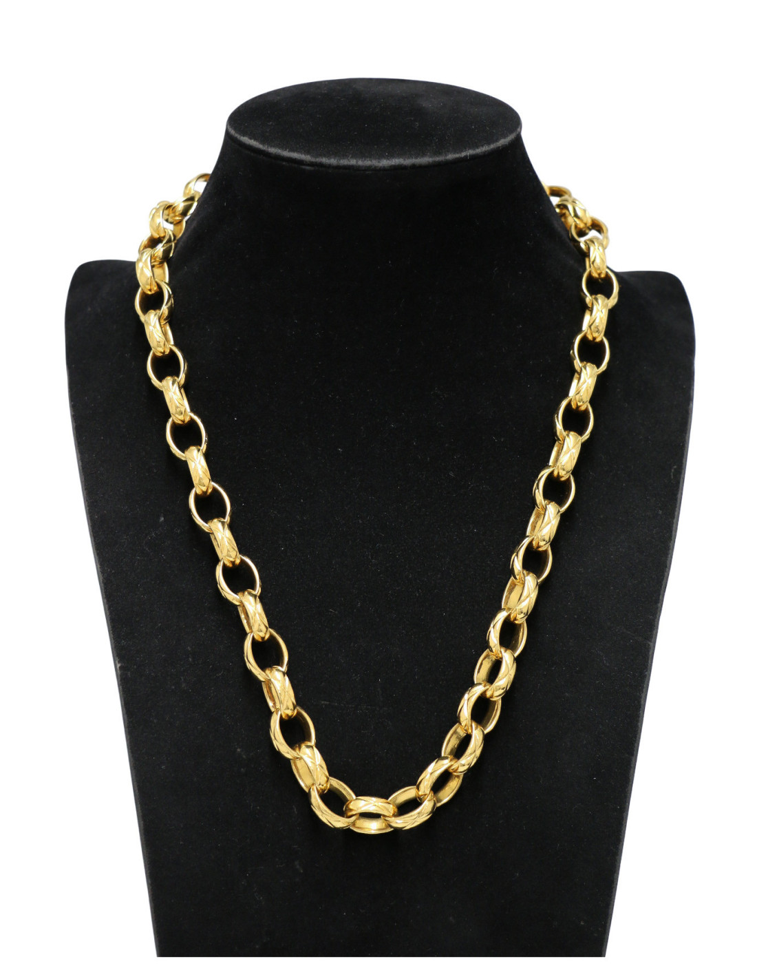 Last items in stock NECKLACES CHANEL multicolor choker necklace CHANEL 36155 2,550.00 € CHANEL vintage choker necklace Condition : very goodMade in FranceMaterials : gold plated metal, resinColors : yellow, amethyst, rubyMeasurements : length: 39 cm + 5 cm of adjustable chain, size of a coin medallion : 3 x 3 cmGold finish metalStamp : yesYear : 1990-1992Details : A succession of inlaid pieces in gilded metal with a resin stone at the... Add to cart
