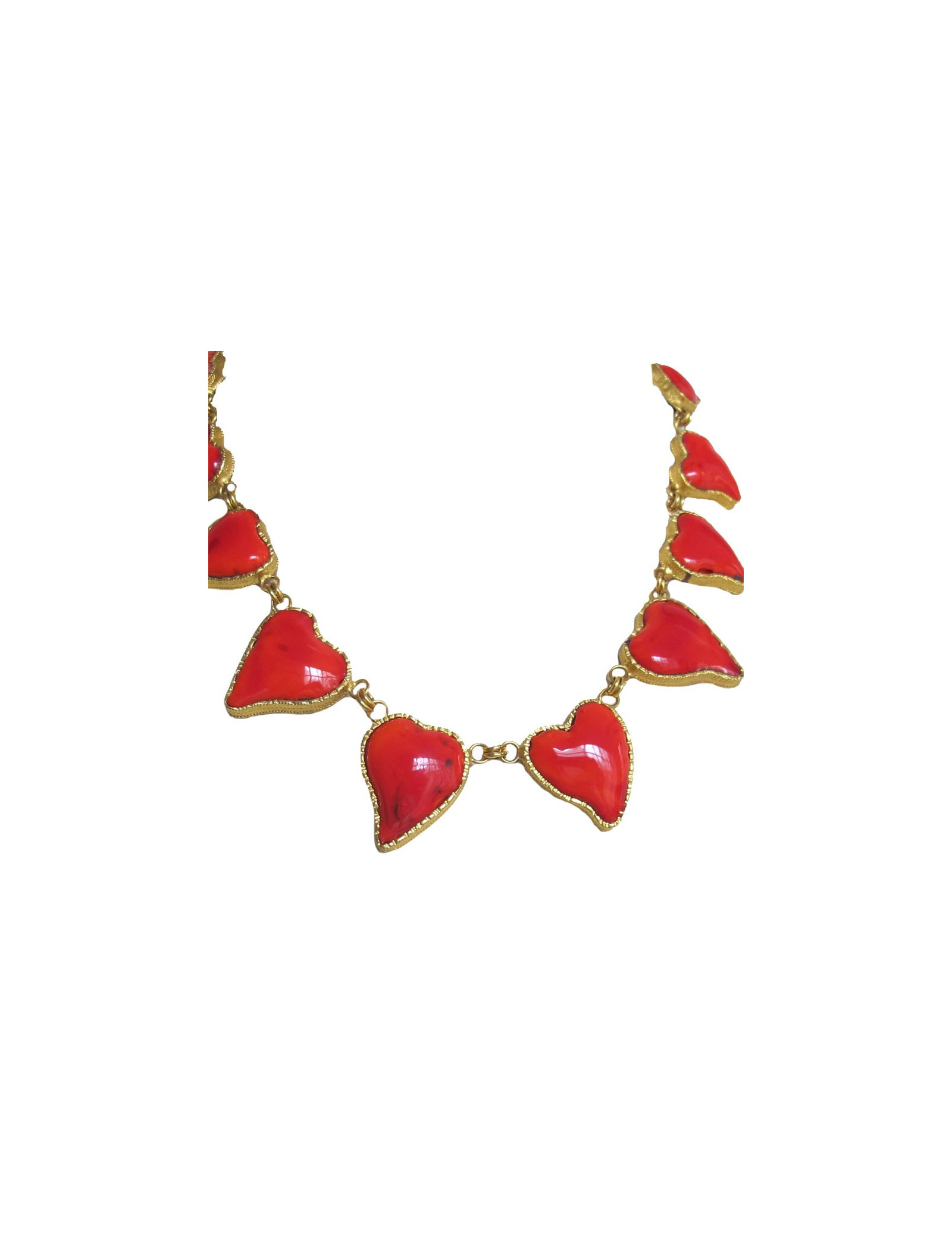 Details: Unique Marguerite de Valois "Hearts" necklace, entirely handmade in molten glass.