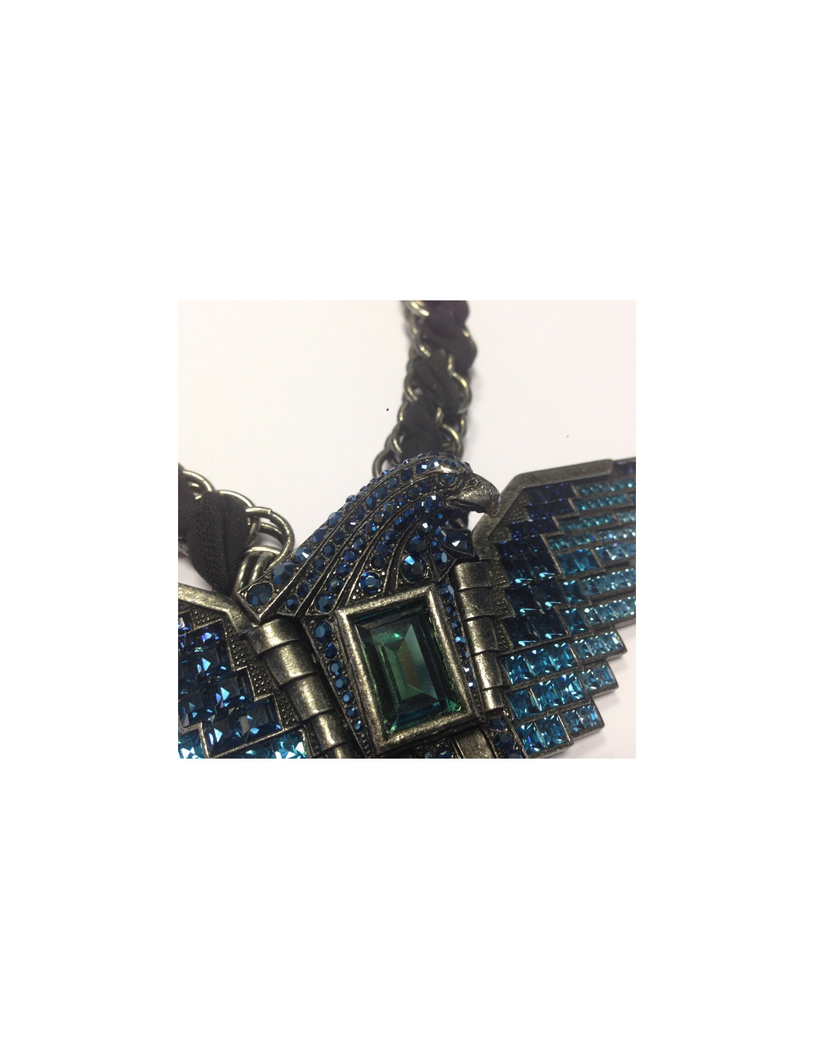 Necklace LANVIN Eagle articulated rhinestone blues and metal