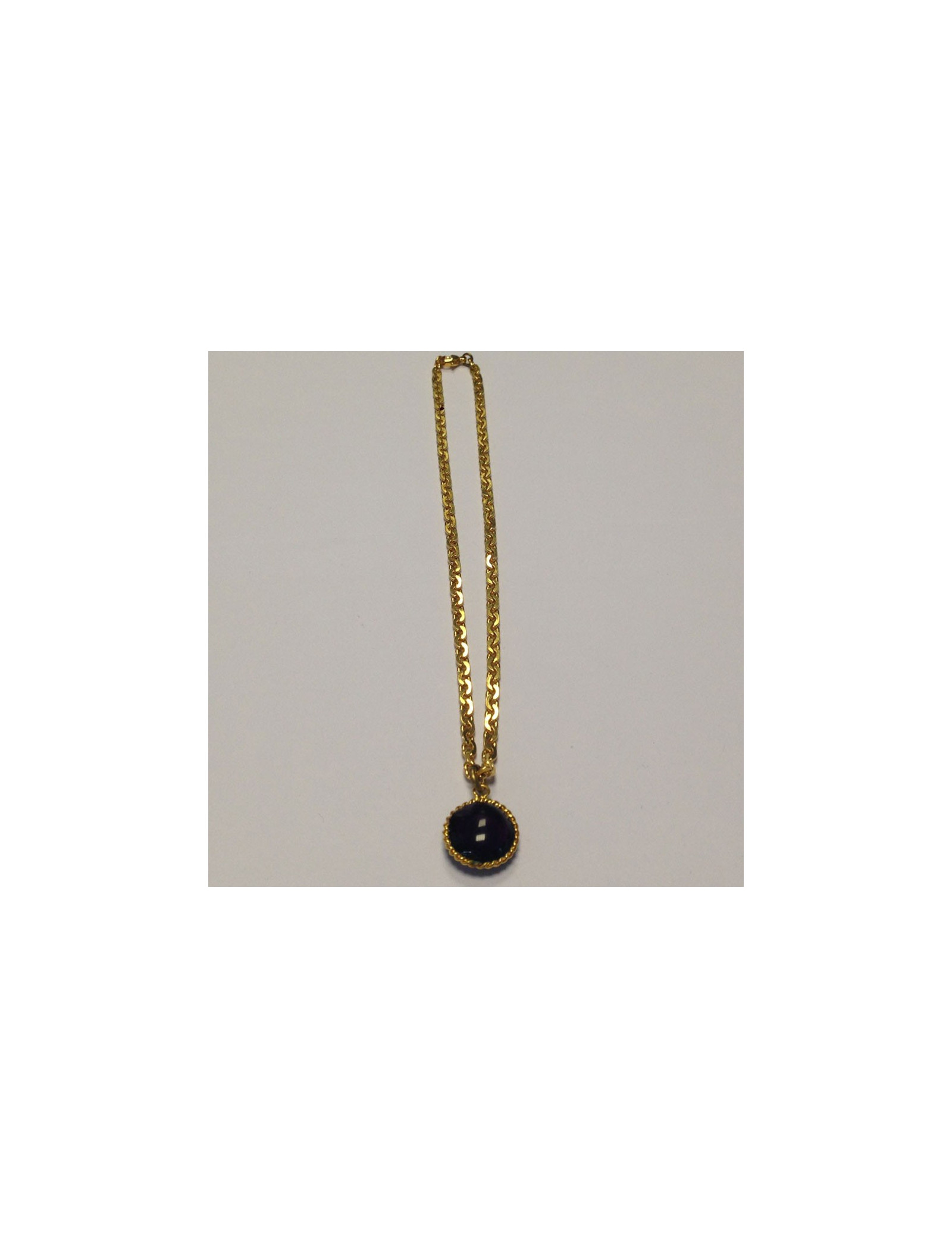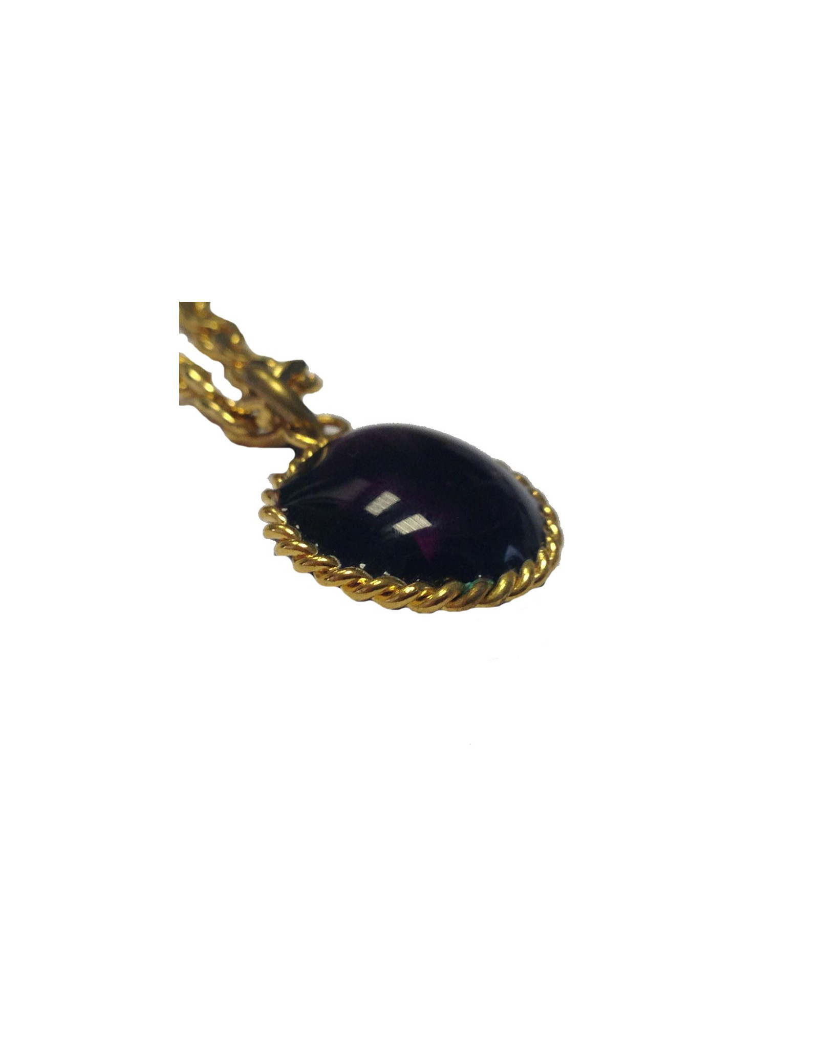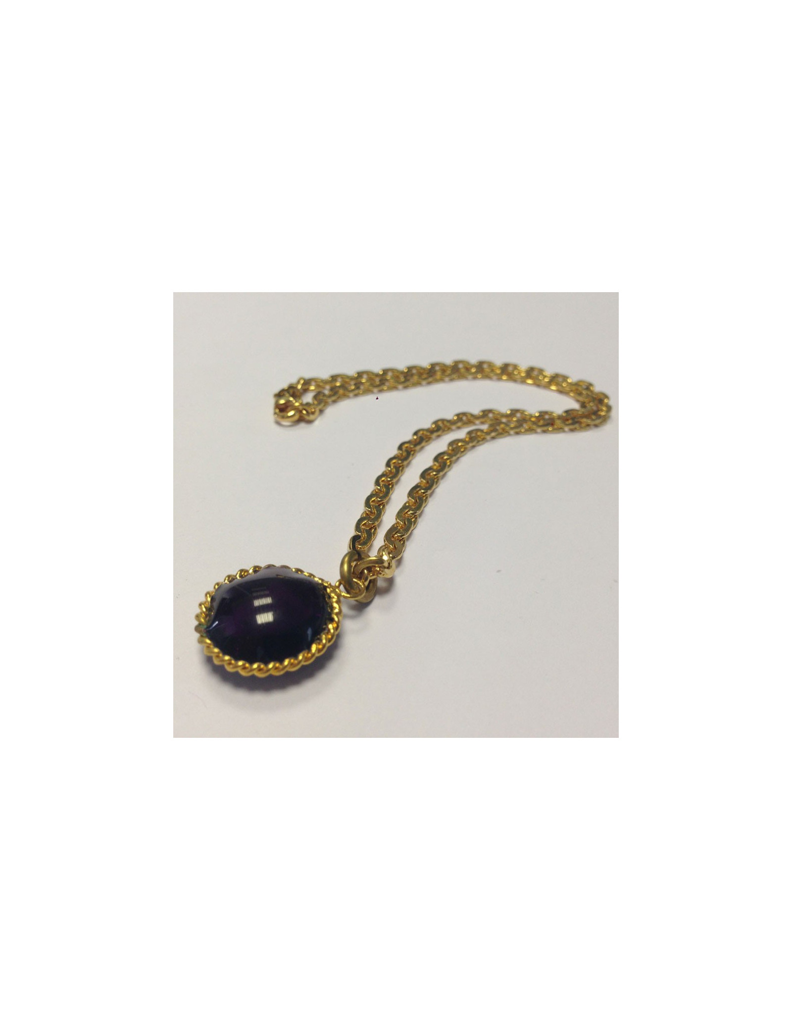 Necklace Marguerite de Valois, purple cabochon on chain Golden glass paste.