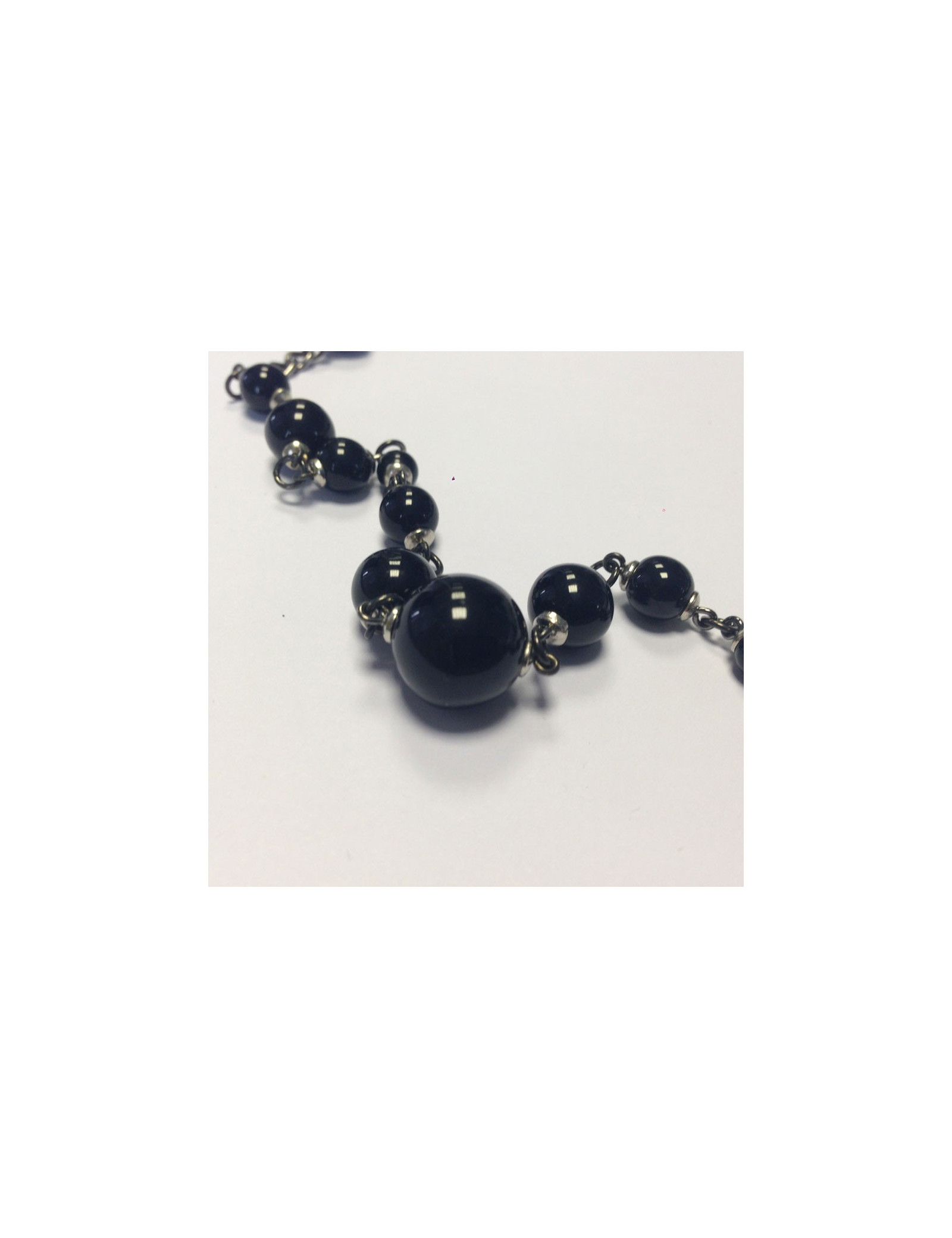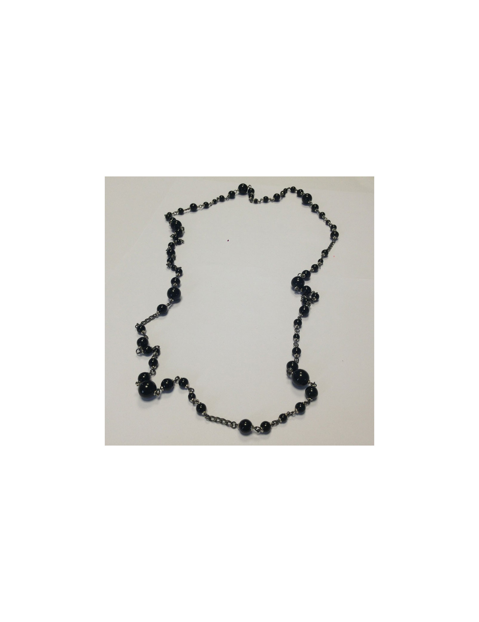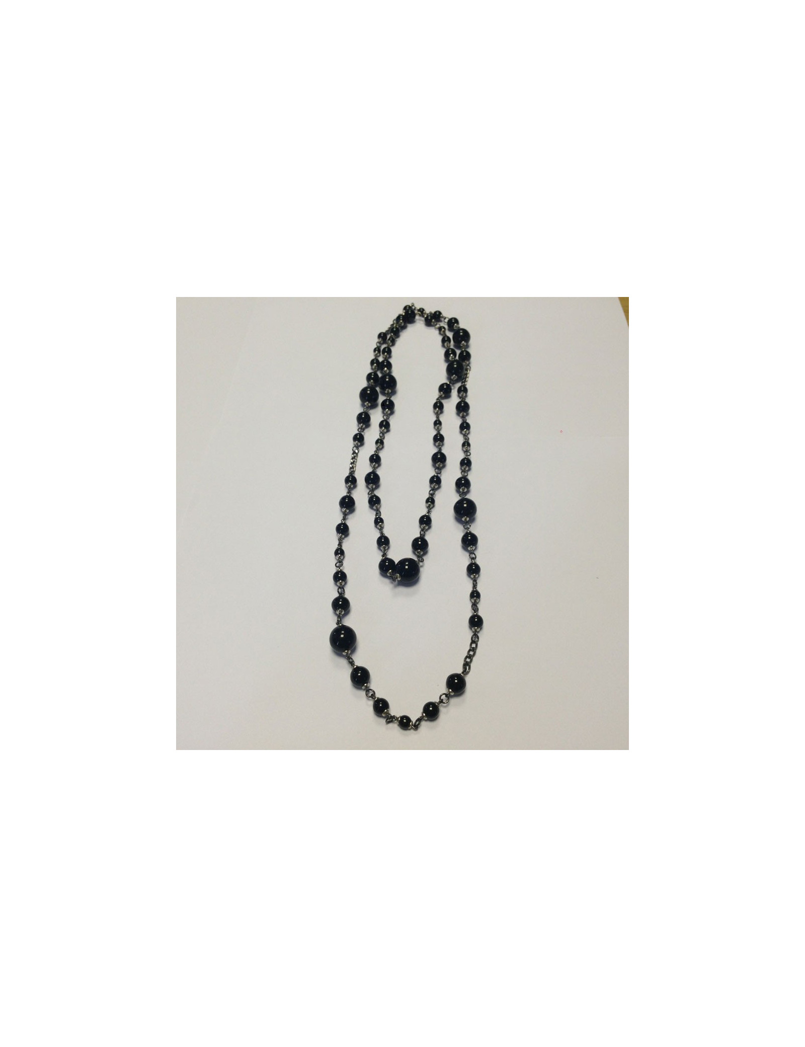 Couture, Saltire Marguerite de Valois decorated with black glass paste beads, chain silver. Can be worn as a single or double tour according to your desires. Never worn.