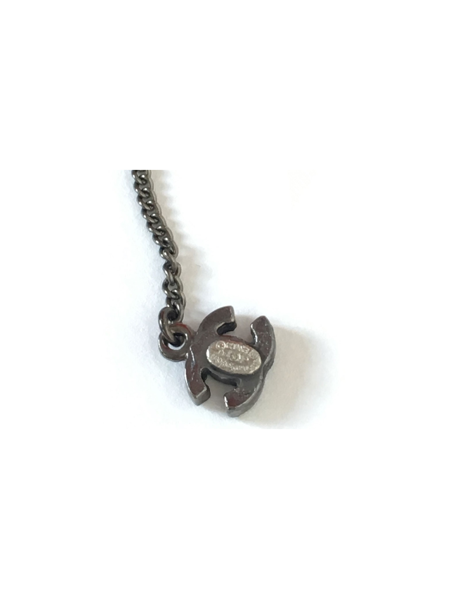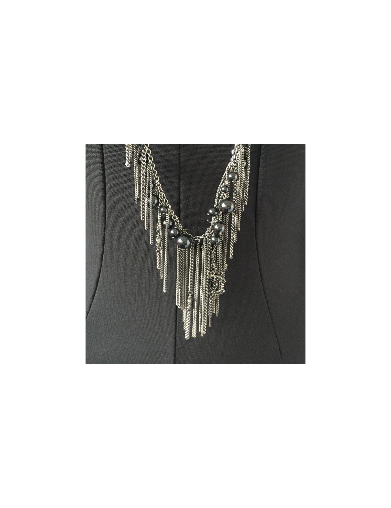 Beautiful necklace CHANEL chain, pearls black and multiple small silver dangling strings. Ornate CC 5 of small black beads. Never worn.