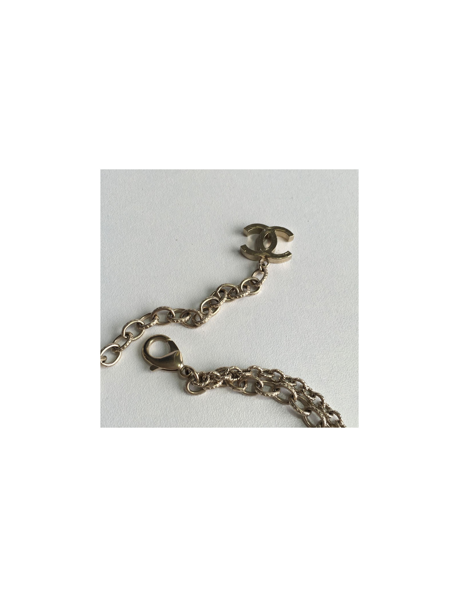 Last items in stock NECKLACES CHANEL multichain pearls and rhinestones long necklace CHANEL 32622 7,500.00 € CHANEL multichain pearls and rhinestones long necklace Condition : very goodMade in FranceGender : long necklaceMaterials : metal, rhinestones, pearly beadsColors : gold, mother-of-pearlMeasurements (adjustable) : 90-100 cmYear: Spring 2016Hardware : light goldDetails : multi-row necklace with Chanel coins and pendant, CC pendant on clasp Advantage Valois... Add to cart