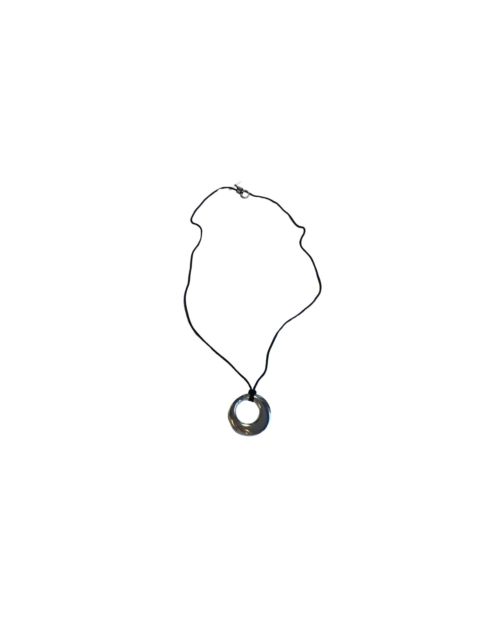 HERMES silver pendant necklace and black fabric link