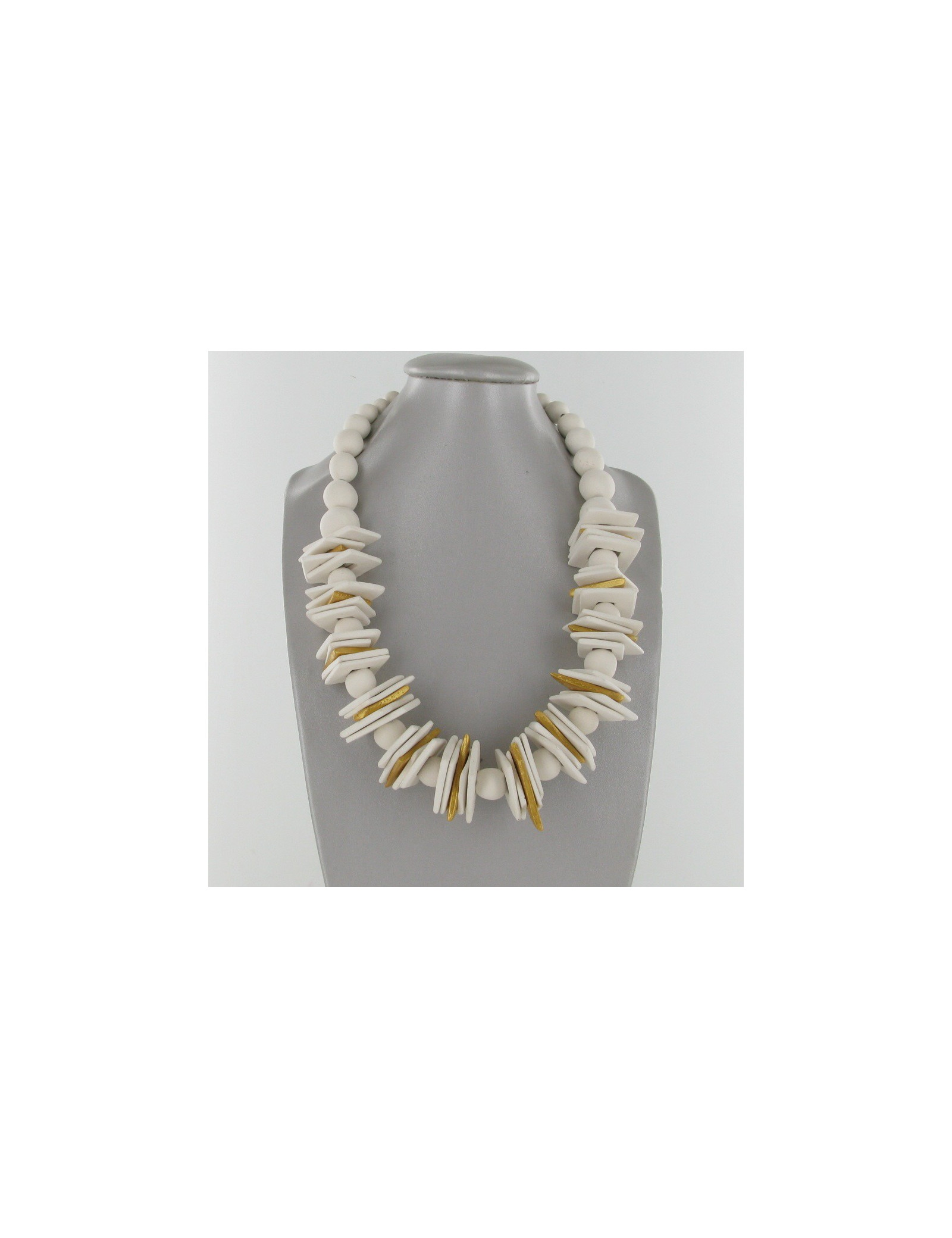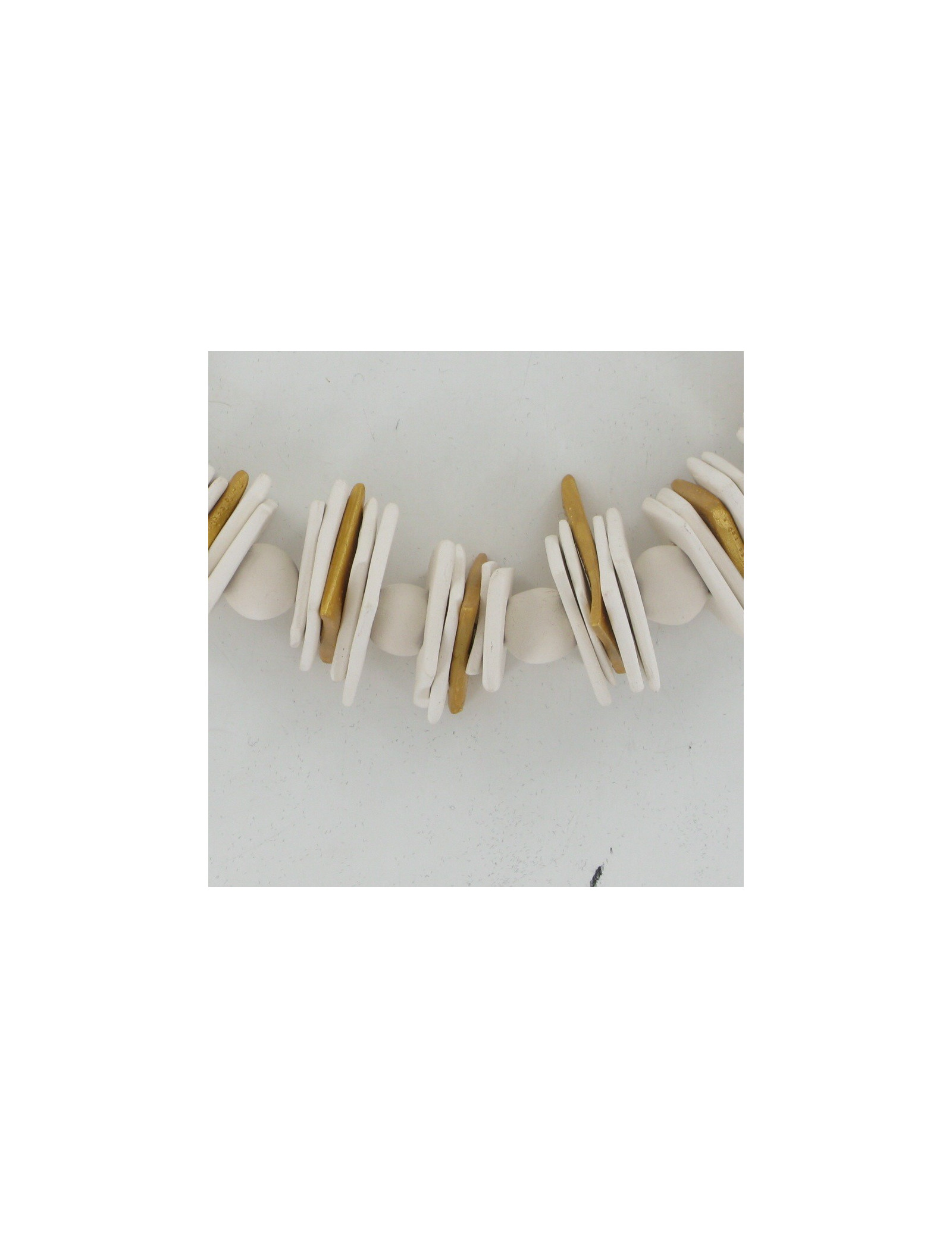 "I create jewelry entirely made with elements in ceramic to let in the natural state as they are out of the oven." I add sometimes a splash of color or a bit of gold or silver to enhance or illuminate the necklace and the person who wears it".