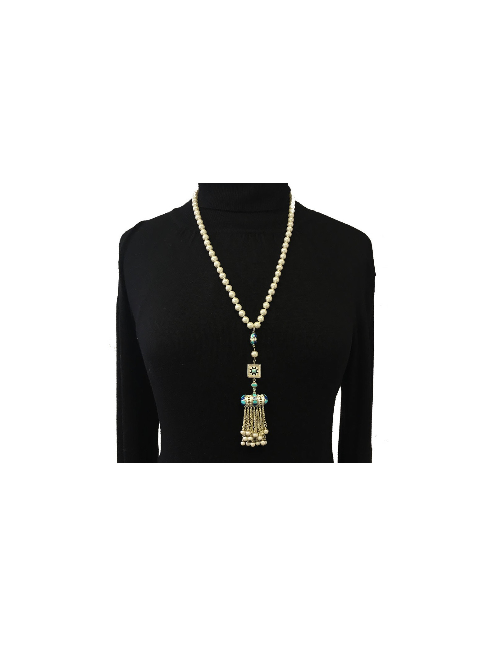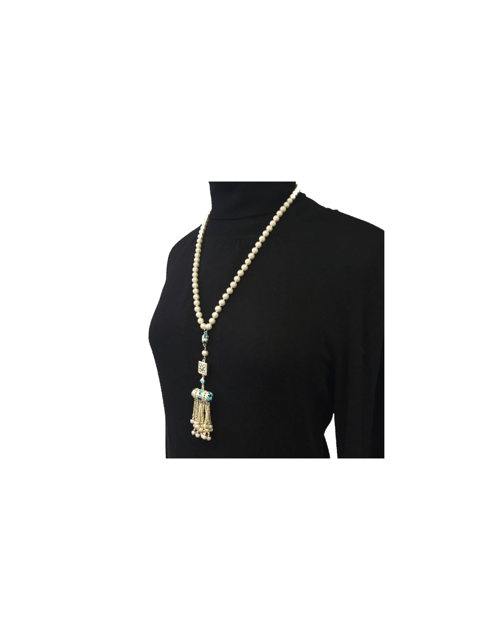 Collier "Paris-DubaïI" CHANEL en métal argenté, perles nacrées