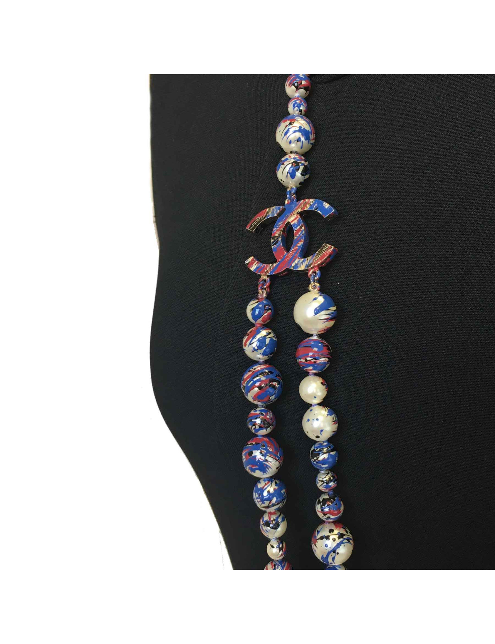 New Sold NECKLACES 2024 Chanel pearl necklace with faceted ball CHANEL 42758 1,400.00 € 2024 Chanel pearl necklace faceted ball This stunning sautoir embodies timeless elegance. The long necklace features a refined composition of luminous faux pearls and sleek black beads, delicately arranged along a radiant gold-tone chain. The design forms an ajustable Y-drop, highlighted by the iconic CC logo set with sparkling rhinestones. Below, a... View