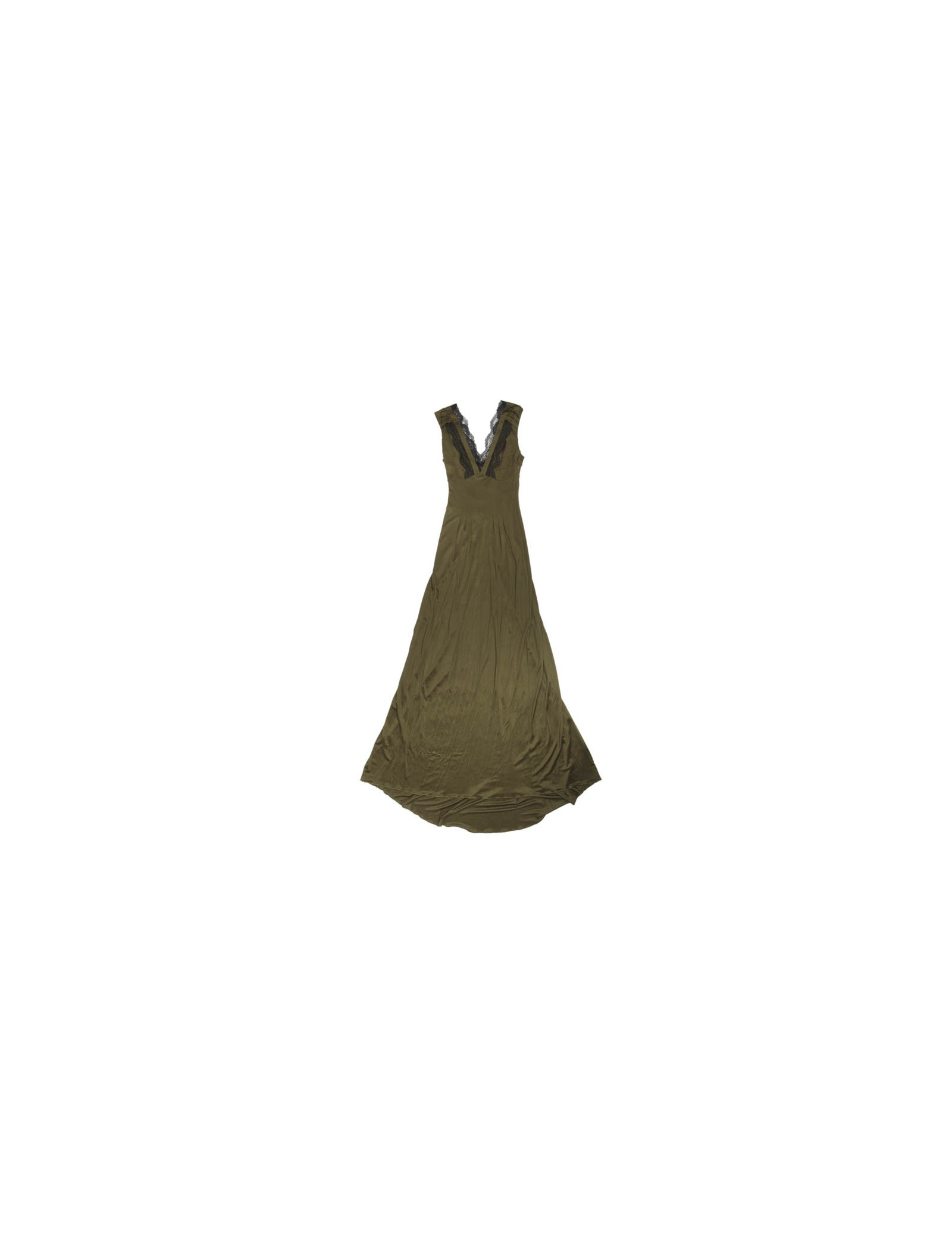 CHRISTIAN LACROIX soft evening own in khaki green satin viscose Size 40FR
