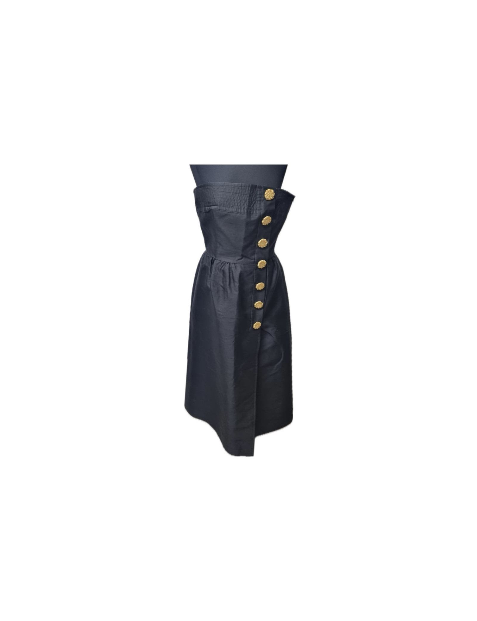 Last items in stock NIGHT DRESSES DOLCE GABBANA cocktail dress in black silk size 40IT/36FR DOLCE & GABBANA 21645 1,100.00 € Dolce Gabbana Cocktail dress in black silk. Strapless cut with integrated frame and straps, zipped at the back. In excellent condition. Size 40IT / 36 FR. Dimensions flat: breast width: 38 cm, height: 31.5 cm, height: 83 cm, low width: 48 cm Add to cart