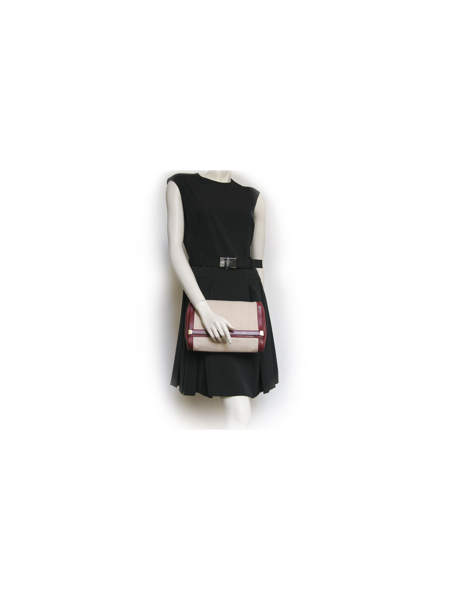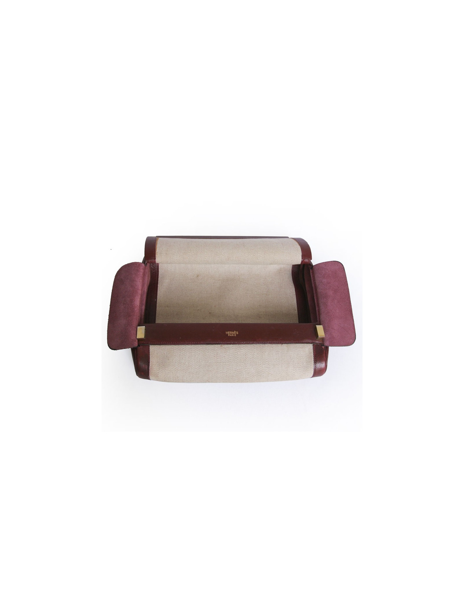 Hermes toiletries Kit beige canvas and leather Burgundy. In good condition. Slight traces on the back as well as on the flap inside, wear on the leather at the level of the opening. See photos.