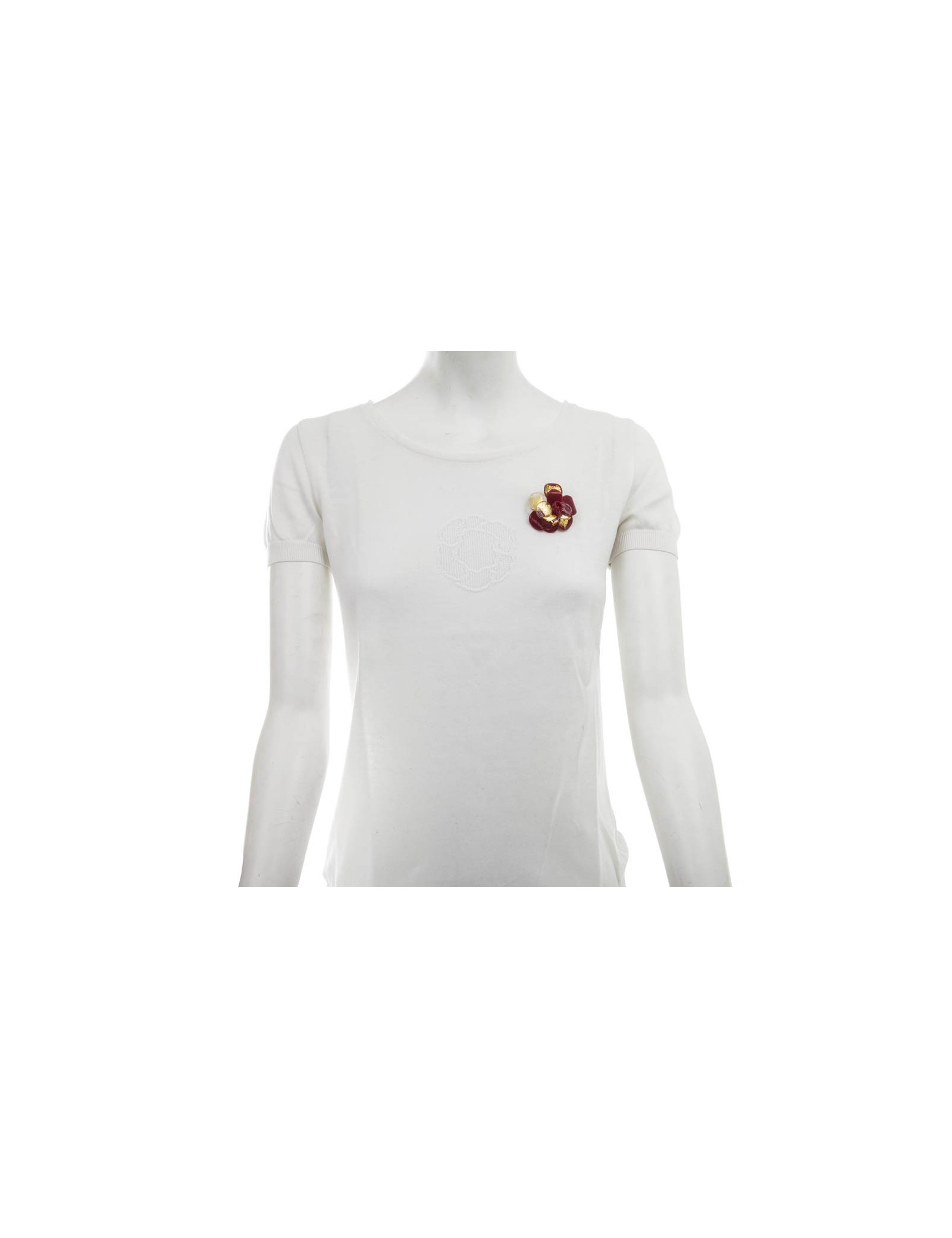 Last items in stock PINS-BROOCHES CHANEL sea-green cotton camellia brooch CHANEL 30861 210.00 € CHANEL cotton camellia brooch Condition :descent (needs to be cleaned)Made in FranceMaterial : cottonColors : sea-green, black, whiteMeasurements : 8 x 8 cmStamp : noHardware : gold finish metalDetails : petals made of padded cotton. fine black and white stripes Add to cart