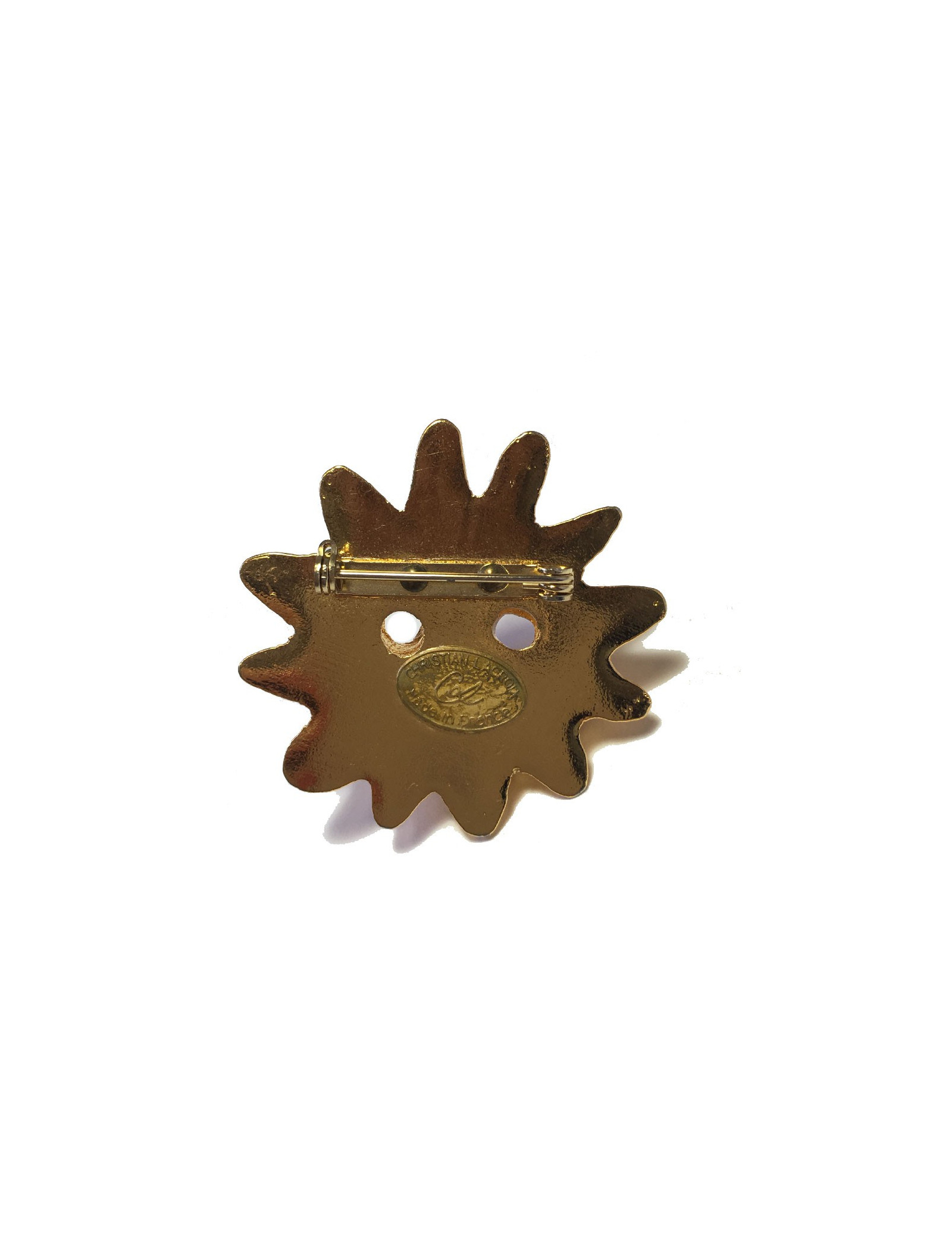 Last items in stock PINS-BROOCHES YSL YVES SAINT LAURENT vintage gilded circular brooch SAINT LAURENT 34414 750.00 € YSL YVES SAINT LAURENT vintage gilded circular brooch Condition : very goodMade in FranceMaterials : metal, molten glass, crystalColors : gold, emerald, multicolorMeasurements : diameter 4.5 cmStamp : yesDetails : vintage circular brooch. Made by Maison Goossens. The front is worked with topaz, fuschia, ruby, emerald and sapphire crystal inlays. In the... Add to cart