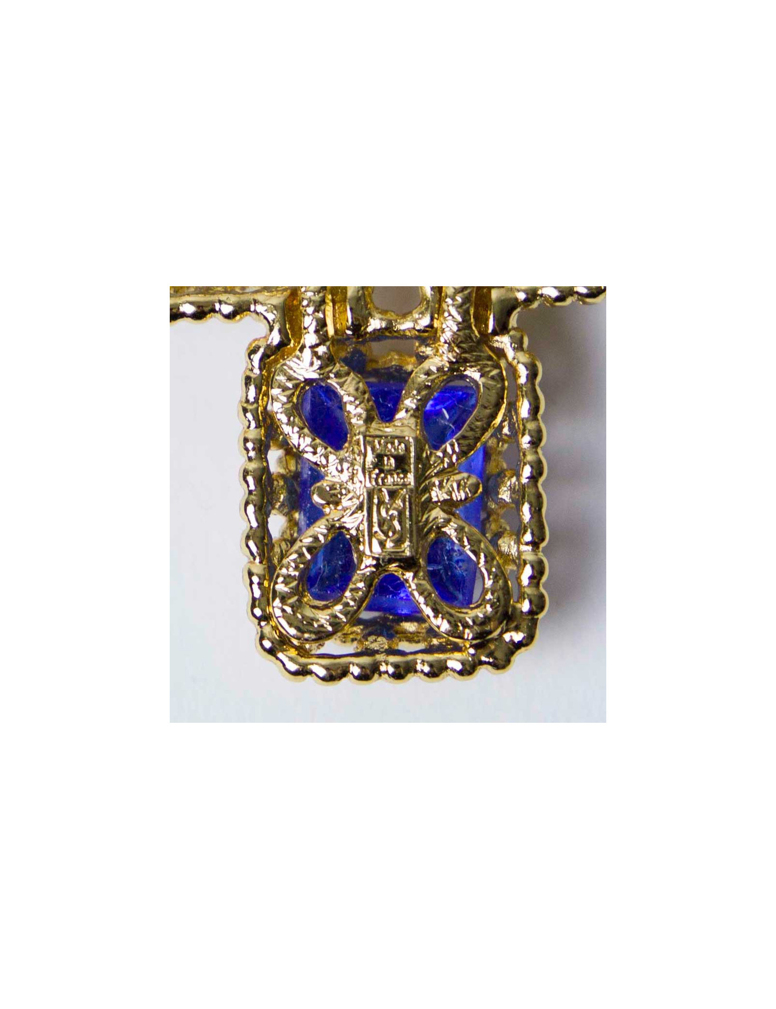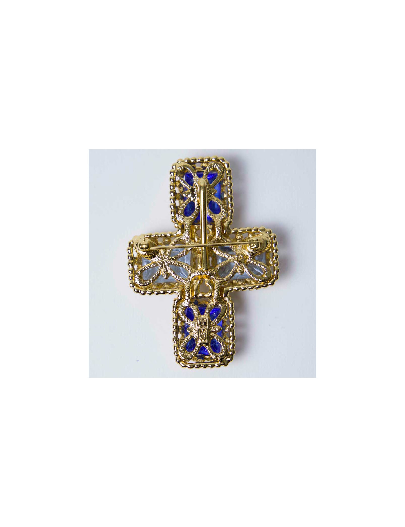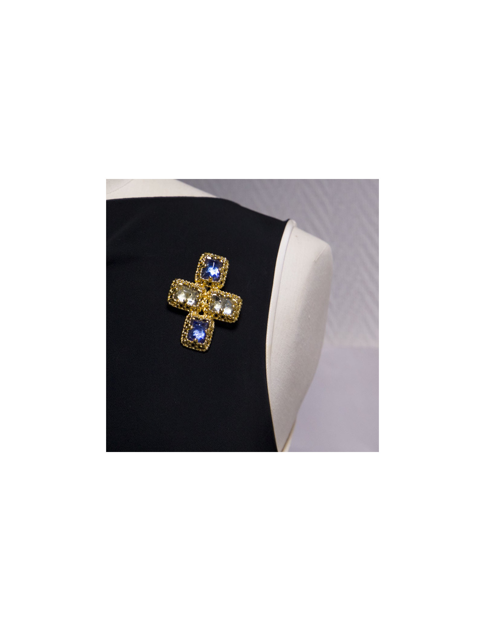 YSL YVES SAINT LAURENT Vintage cross pendant brooch set with 2 tones of blue cabochon