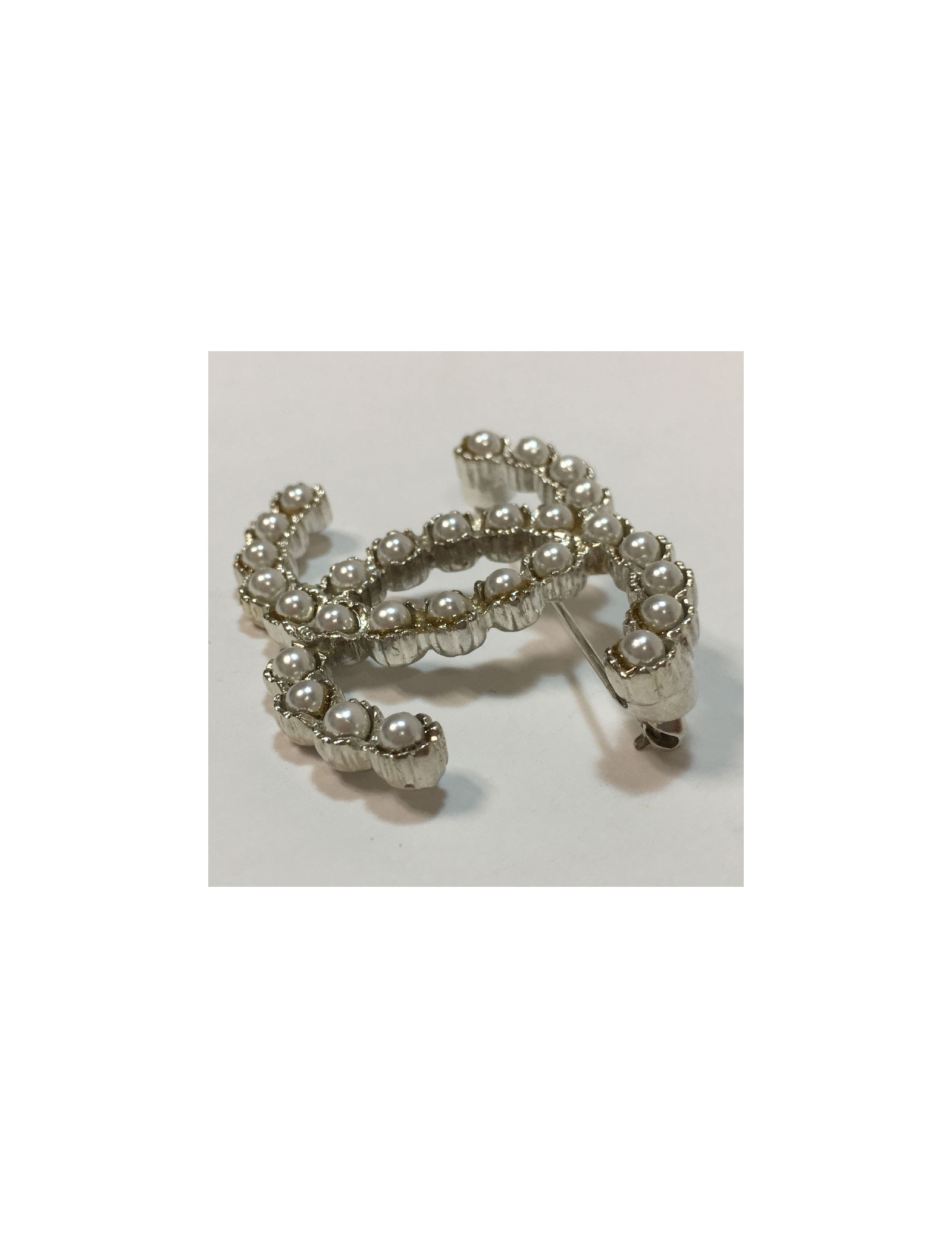 Last items in stock PINS-BROOCHES CHANEL CC Chain Brooch CHANEL 36144 550.00 € Chanel CC brooch in silver and white Condition : excellentMade in FranceMaterial : silver metal and resinColor : mat silver, whiteDimensions : 5 x 4 cmHardware : ruthenium silver metalStamp : yesYear : 2022Details : white resin intertwined with mat silver metal reminding of the iconic chain straps of Chanel bags. Delivered in a Valois Vintage Paris dustbag Add to cart