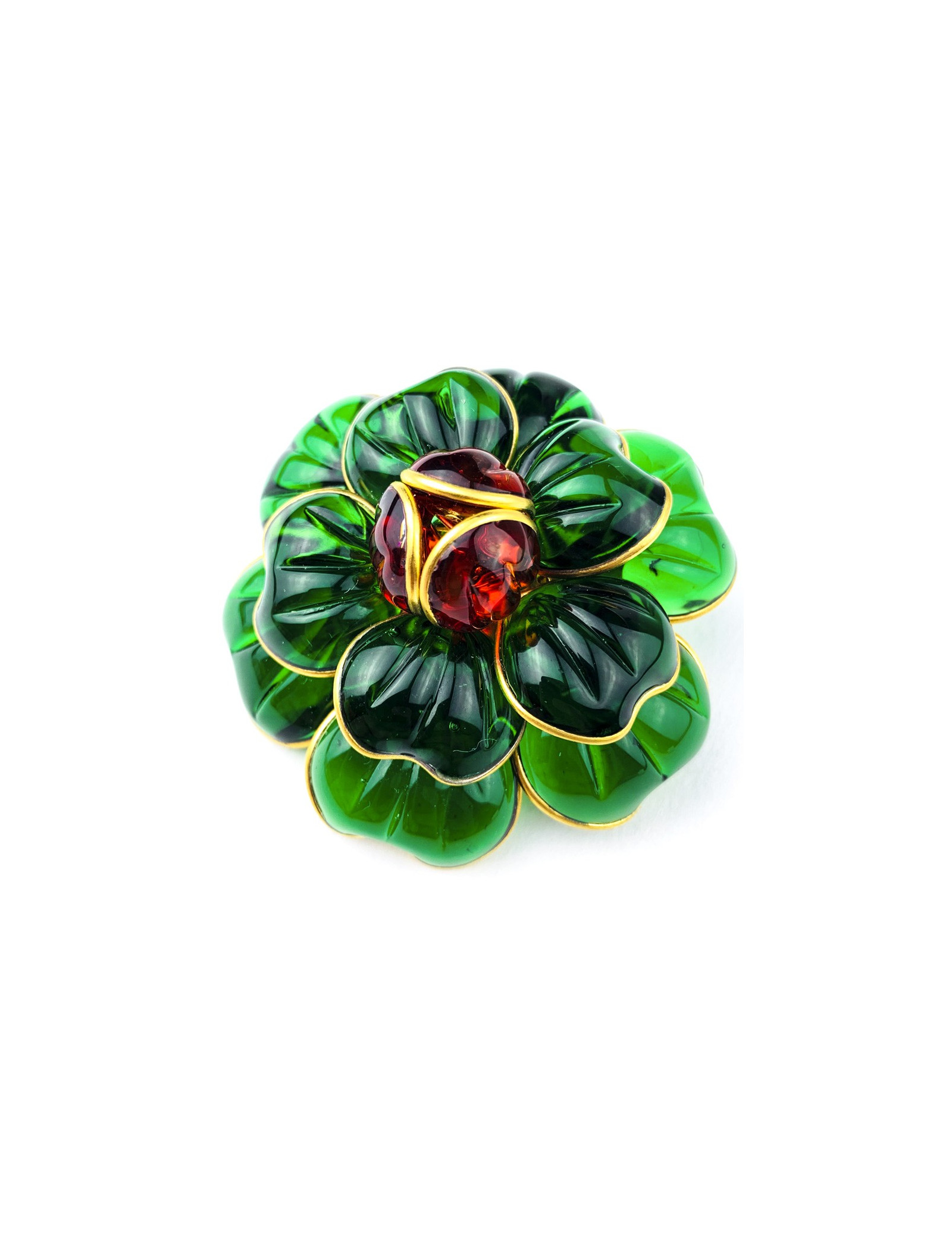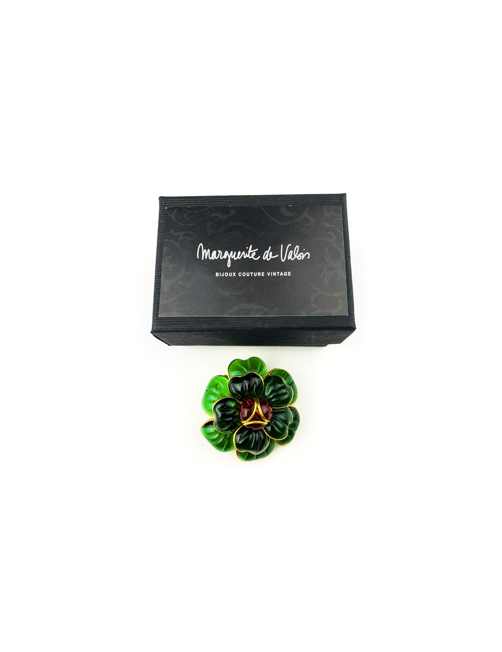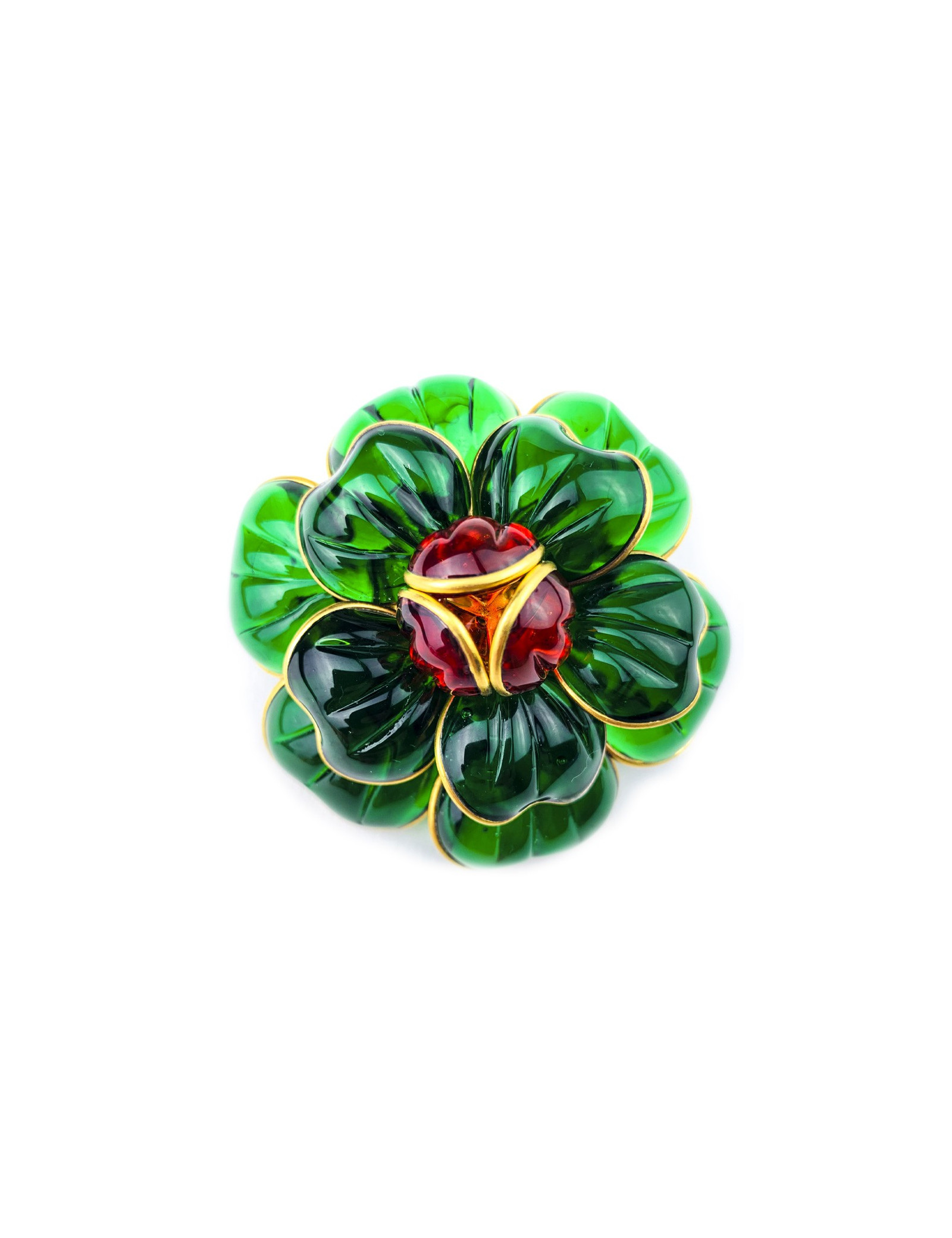 Last items in stock PINS-BROOCHES couture camellia brooch in tricolor molten glass AUTRES MARQUES 21943 450.00 € Marguerite de Valois Couture Camellia brooch made of glass paste mounted on gold-plated metal. The petals are tricolor topaz, pale green and gradient beige heated with gold leaf. In very good shape. Made in France. Dimensions: 4.5x4.5 cm. Will be delivered in its box Add to cart