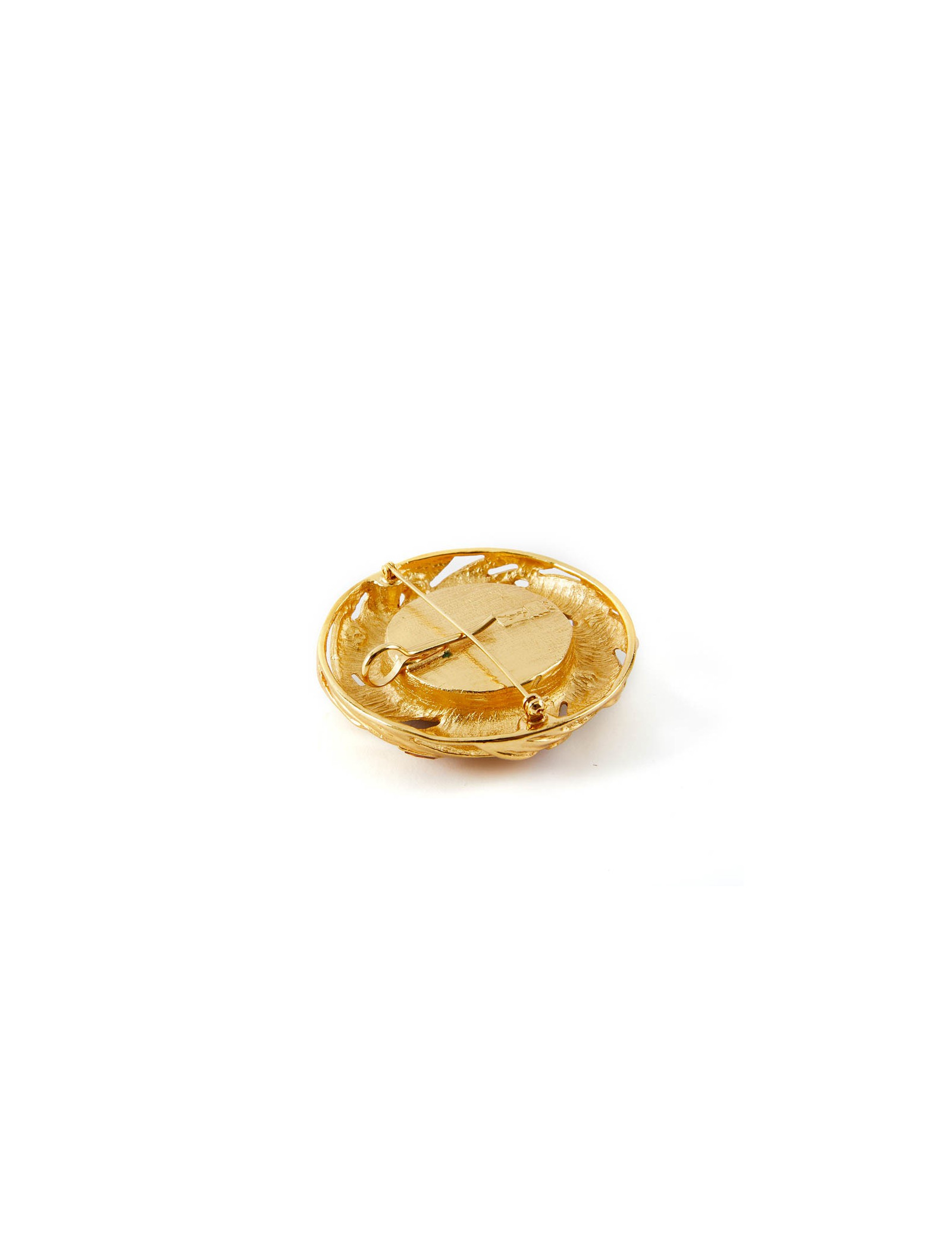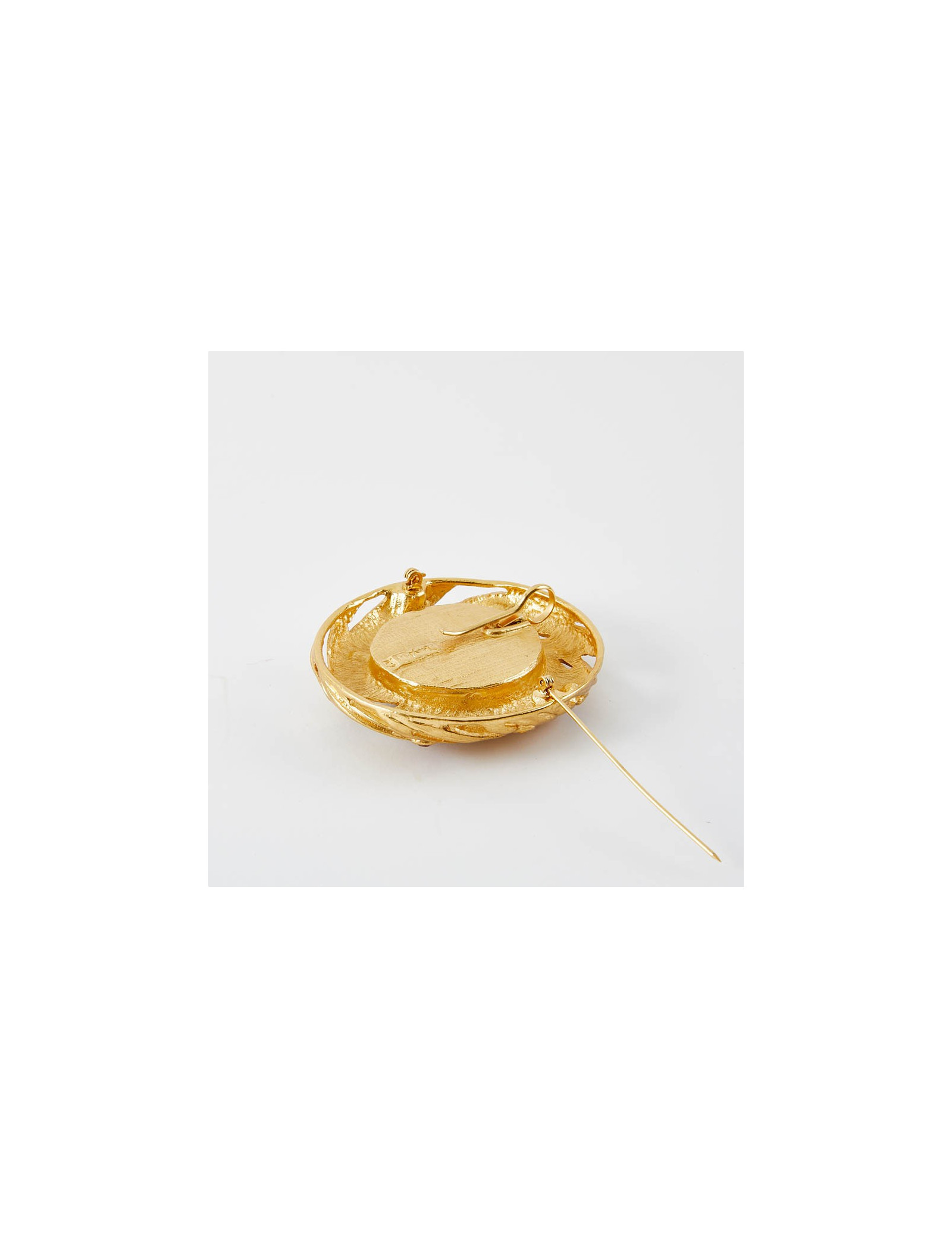 Last items in stock PINS-BROOCHES CHANEL vintage gilded brooch CHANEL 33275 1,790.00 € CHANEL vintage gilded brooch Condition : very goodMade in FranceMaterials : metal, molten glassColors : gold, whiteMeasurements : CC 2.5 x 1.8 cm, round pendant 3.6 x 3.6 cm, total height: 6.5 cmStamp : yesYear: Fall 1994Details : molten glass bead Add to cart