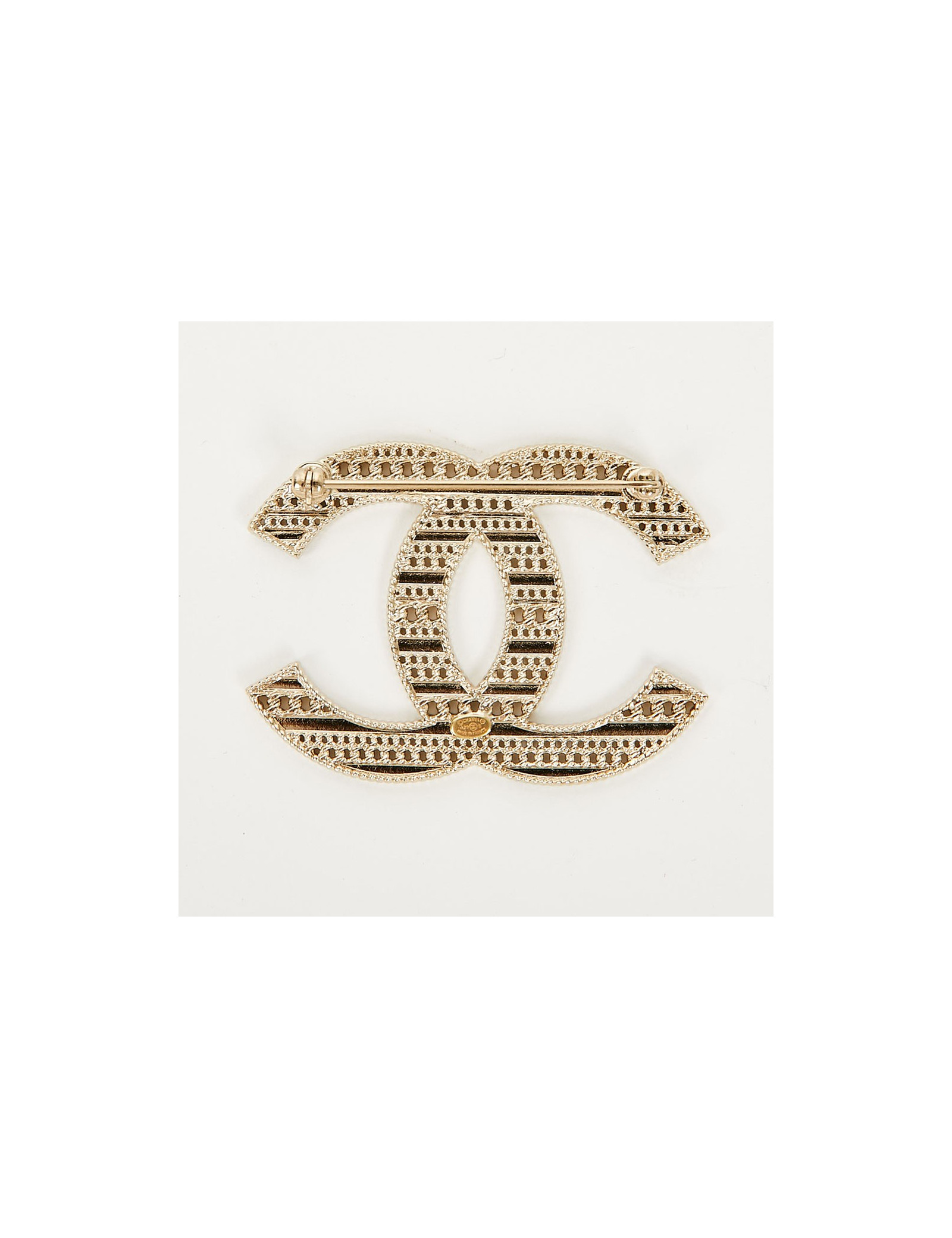 Last items in stock PINS-BROOCHES CHANEL CC Chain Brooch CHANEL 36144 550.00 € Chanel CC brooch in silver and white Condition : excellentMade in FranceMaterial : silver metal and resinColor : mat silver, whiteDimensions : 5 x 4 cmHardware : ruthenium silver metalStamp : yesYear : 2022Details : white resin intertwined with mat silver metal reminding of the iconic chain straps of Chanel bags. Delivered in a Valois Vintage Paris dustbag Add to cart