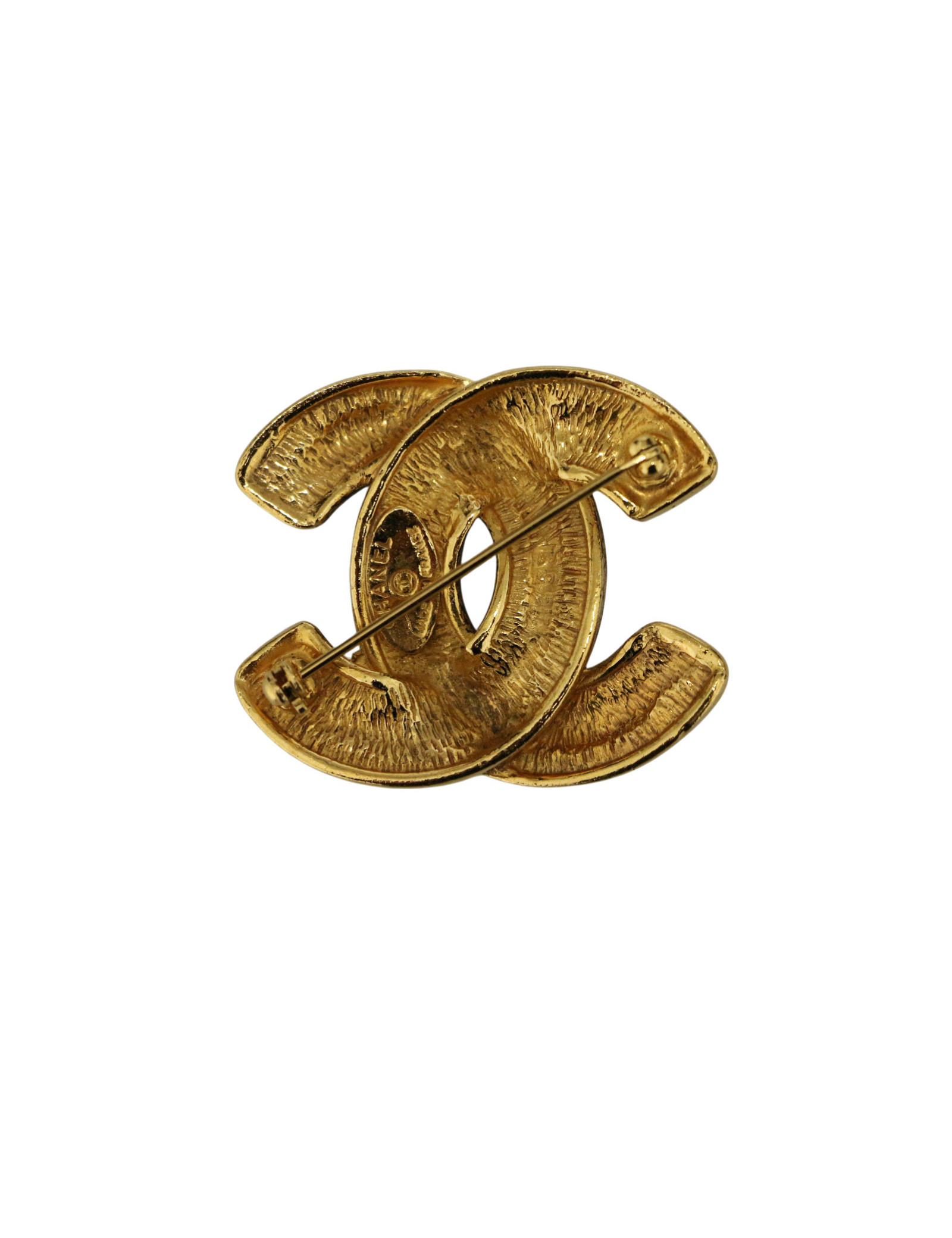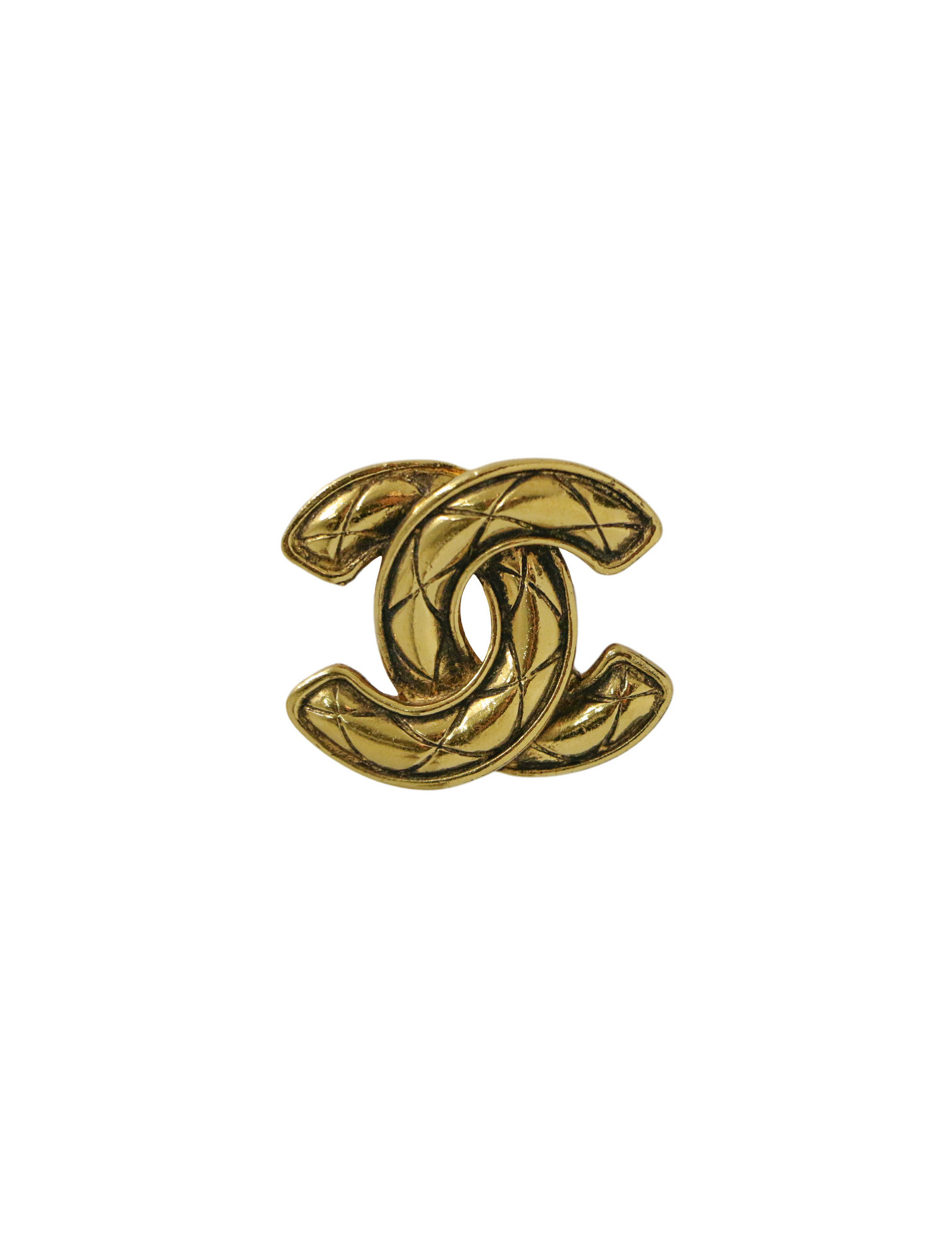 Discover this vintage Chanel quilted CC logo brooch, an iconic piece dating from the early 1990s (between 1990 and 1992). Crafted in gold-tone metal, it highlights the signature interlocking CC logo combined with the house’s iconic quilted pattern.