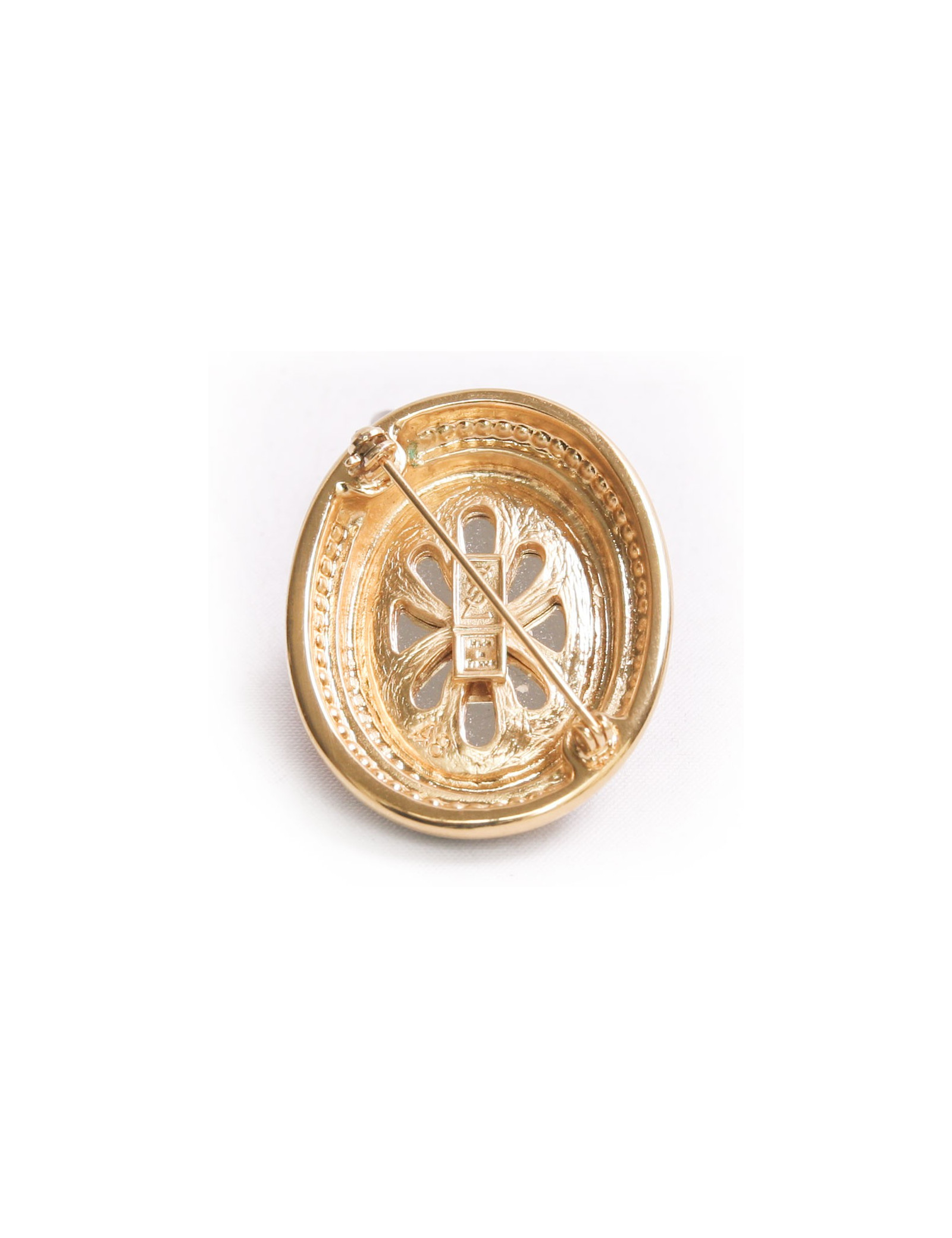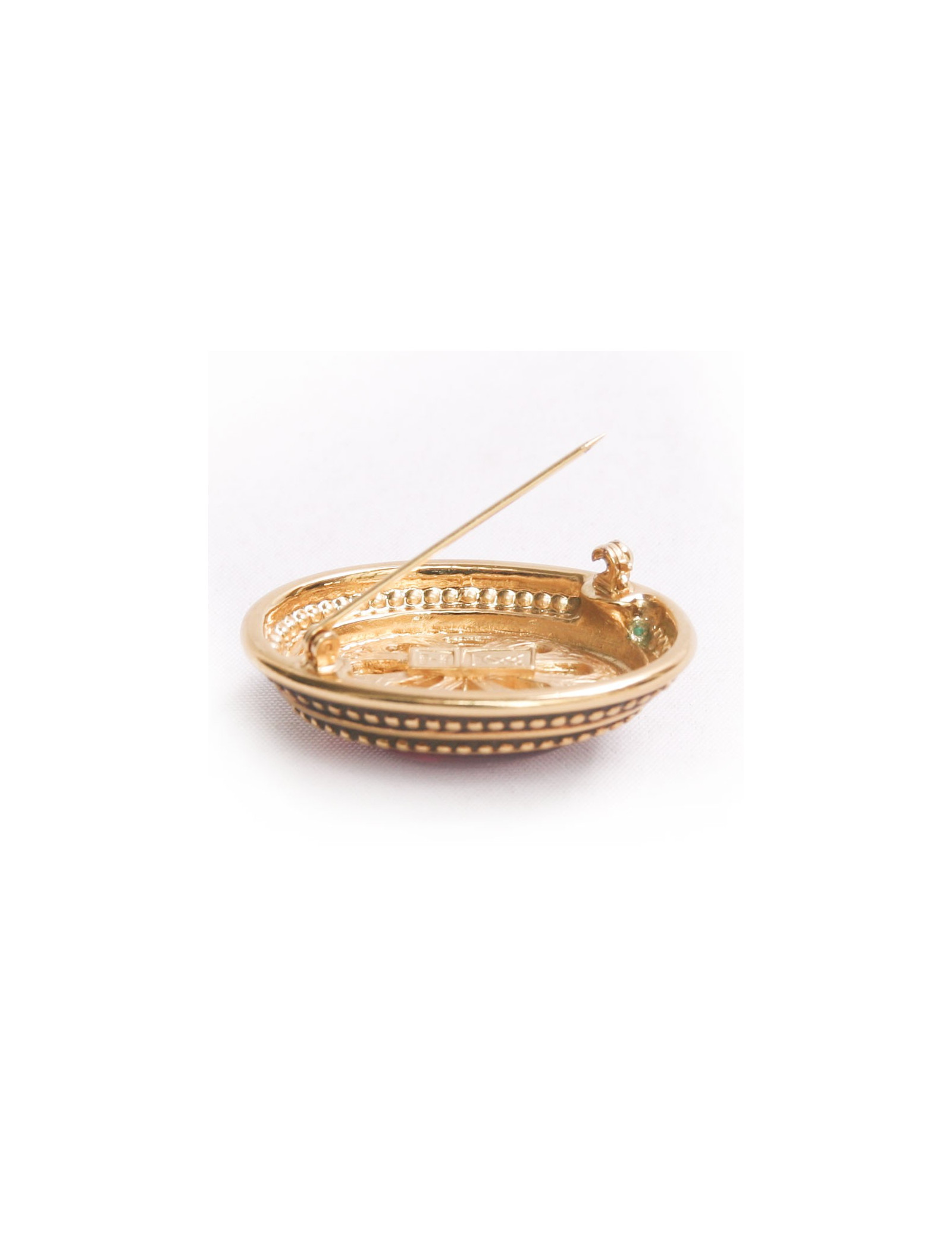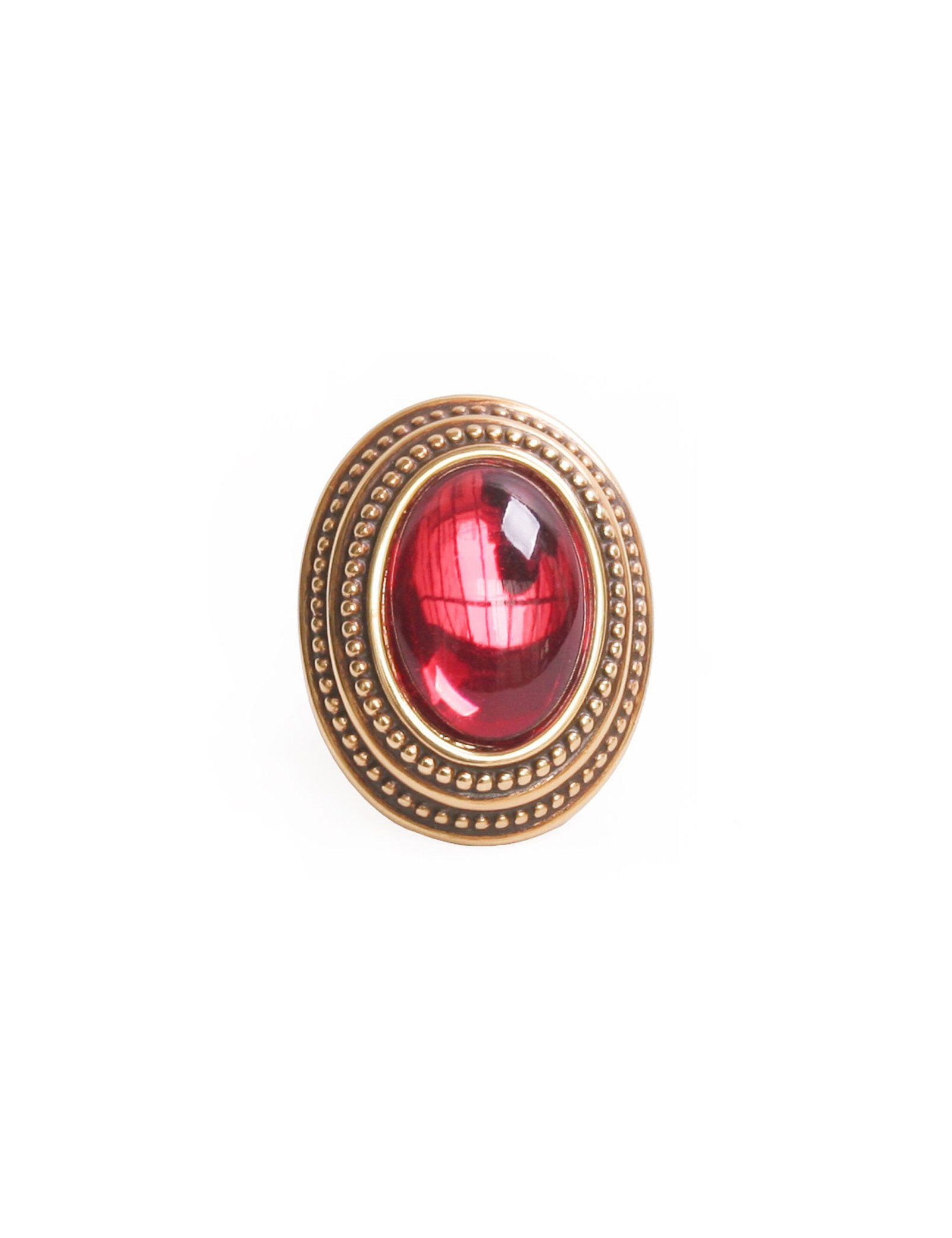 PIN cabochon vintage Yves Saint Laurent oval resin red-frambroise, outline in gold metal. In very good condition.