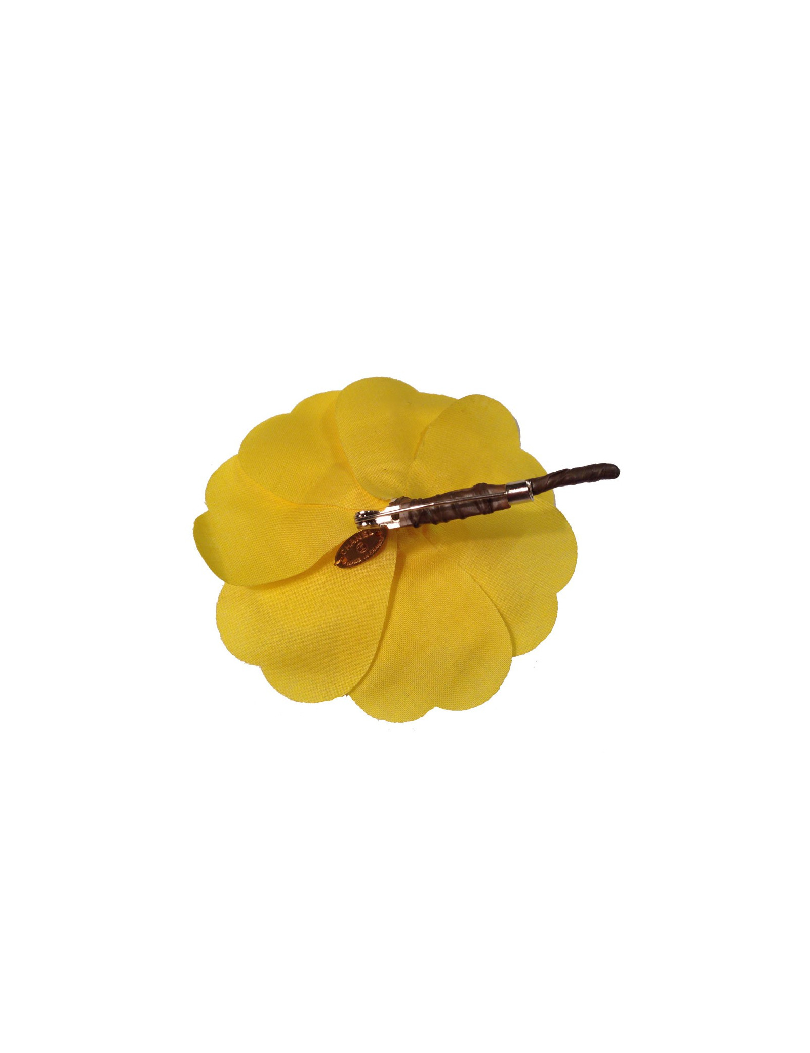Sold PINS-BROOCHES CHANEL camellia brooch in dark blue fabric CHANEL 22498 300.00 € Chanel camellia brooch in dark blue fabric. In good condition. The blue lining at the back comes off on some petals. Dimensions: 8.6 cm in diameter. Made in France Will be delivered in a black box decorated with a Chanel ribbon and a camellia (see photo) View
