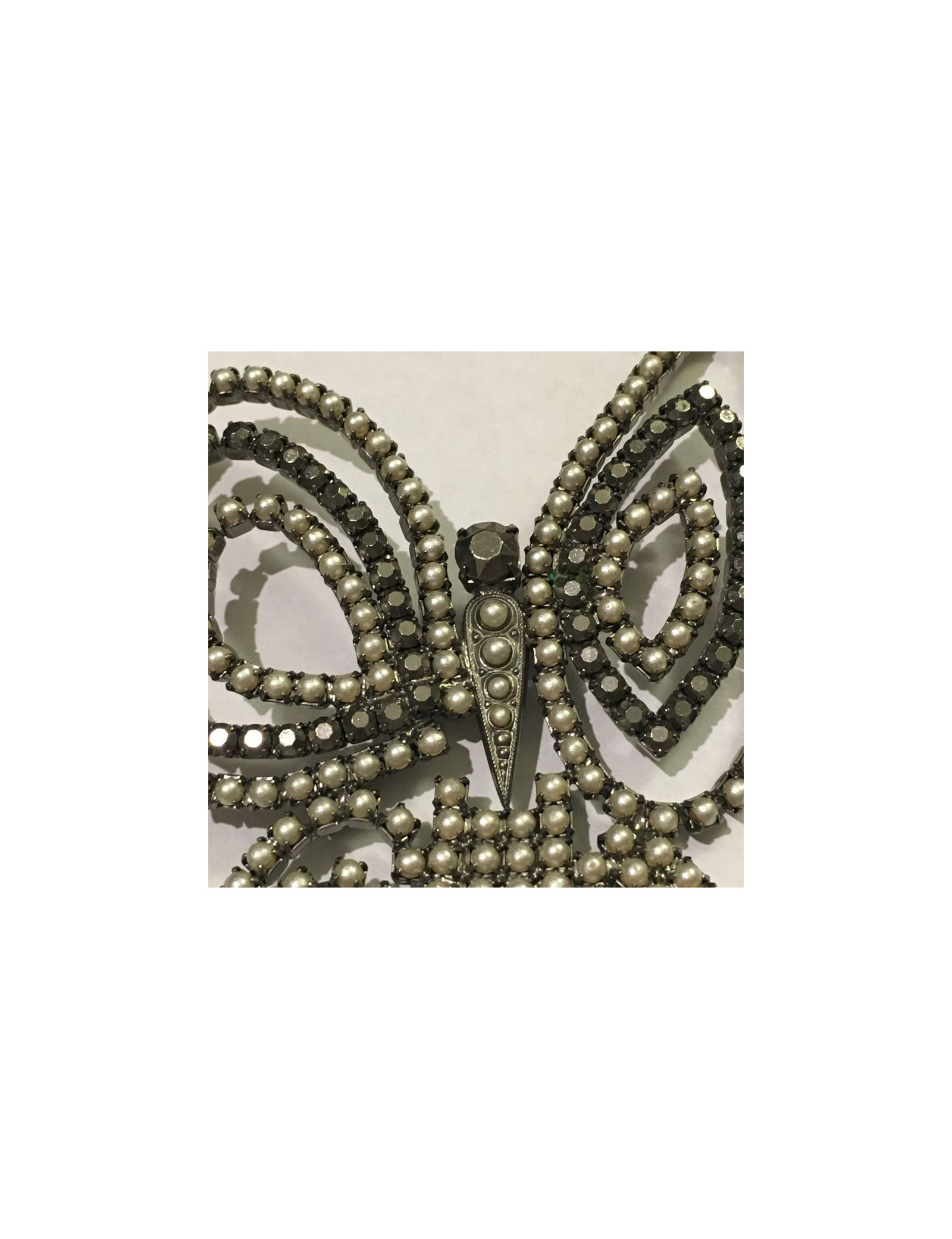 PINS-BROOCHES CHANEL rhinestones and pearls bow brooch CHANEL 33997 1,350.00 € CHANEL rhinestones and pearls bow brooch Condition : very goodMade in FranceCollection : broochMaterials : metal, rhinestonesColors : black, silver, transparentMeasurements : 7.5 x 5 cmStamp : yesYear : Spring 2005Hardware : silver finish metalDetails : black and transparent rhinestones with mother-of-pearl beads Advantage Valois Vintage Paris : comes in... Add to cart