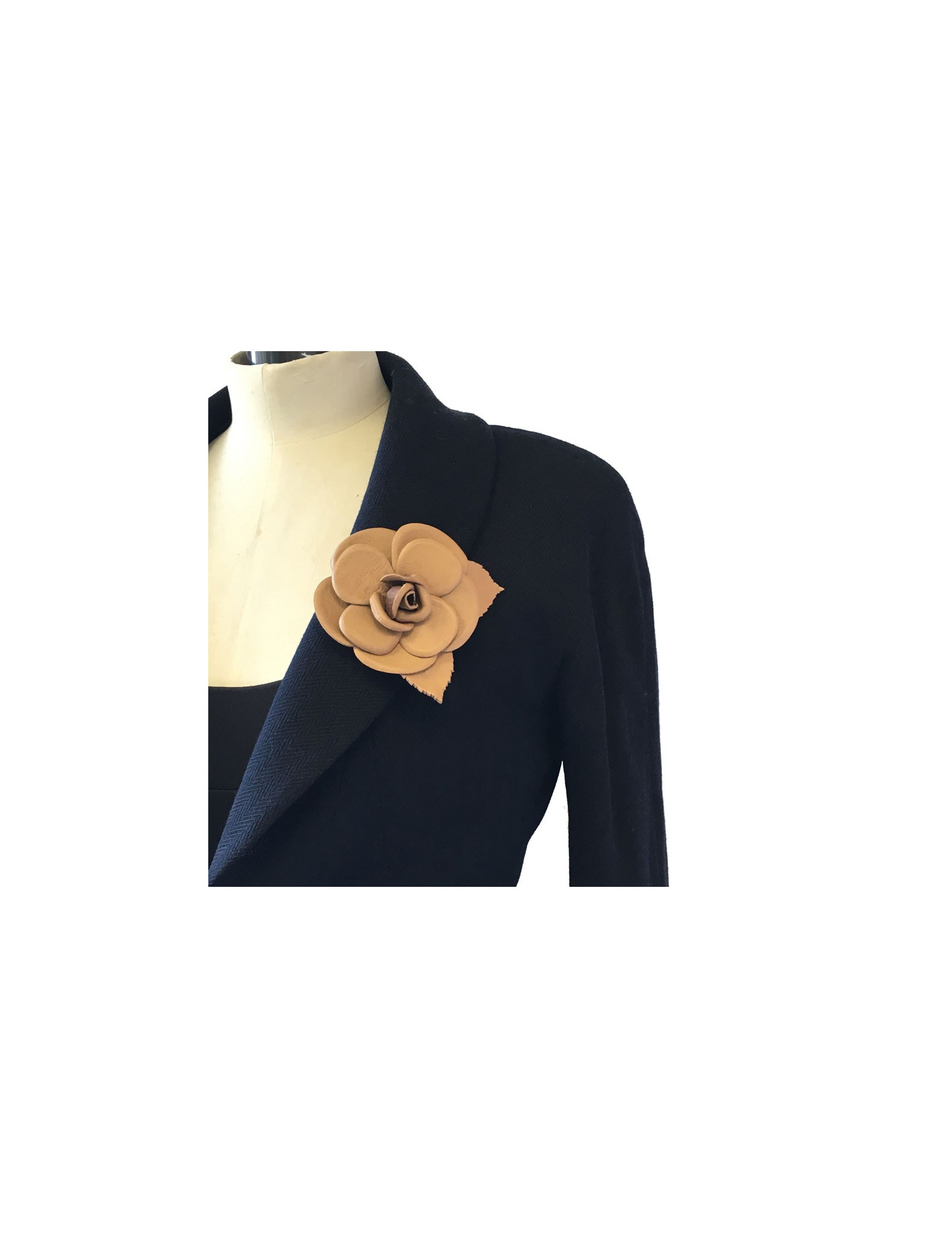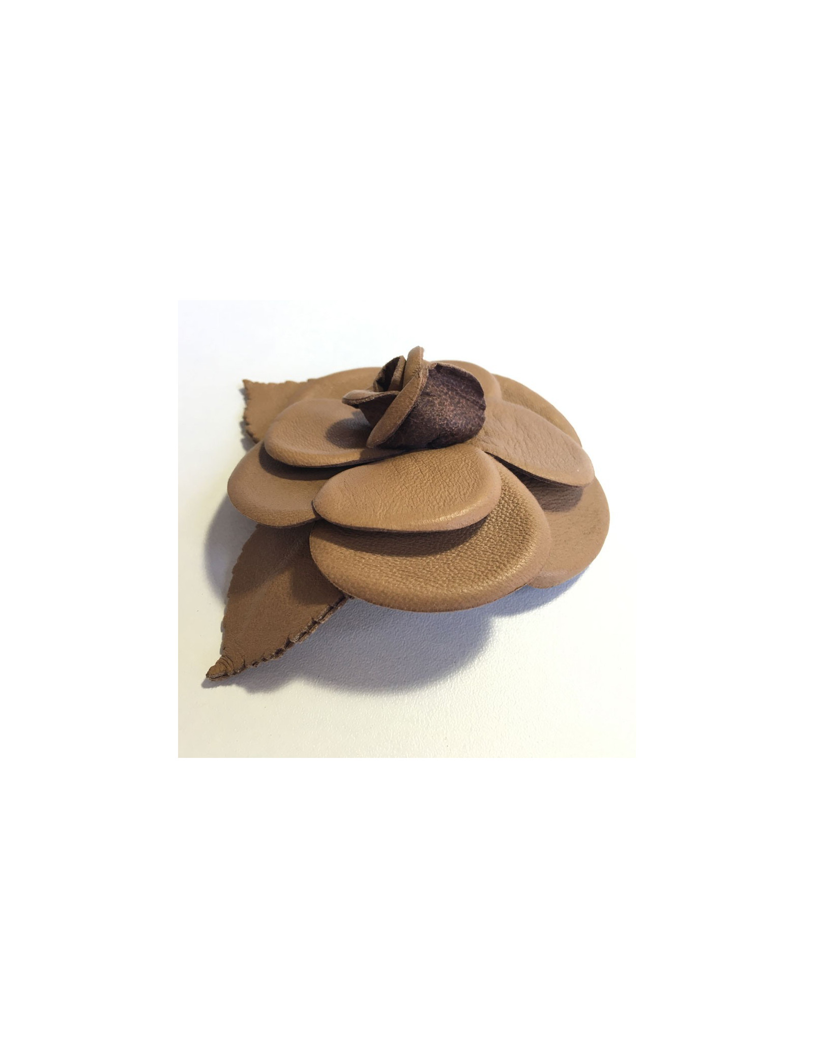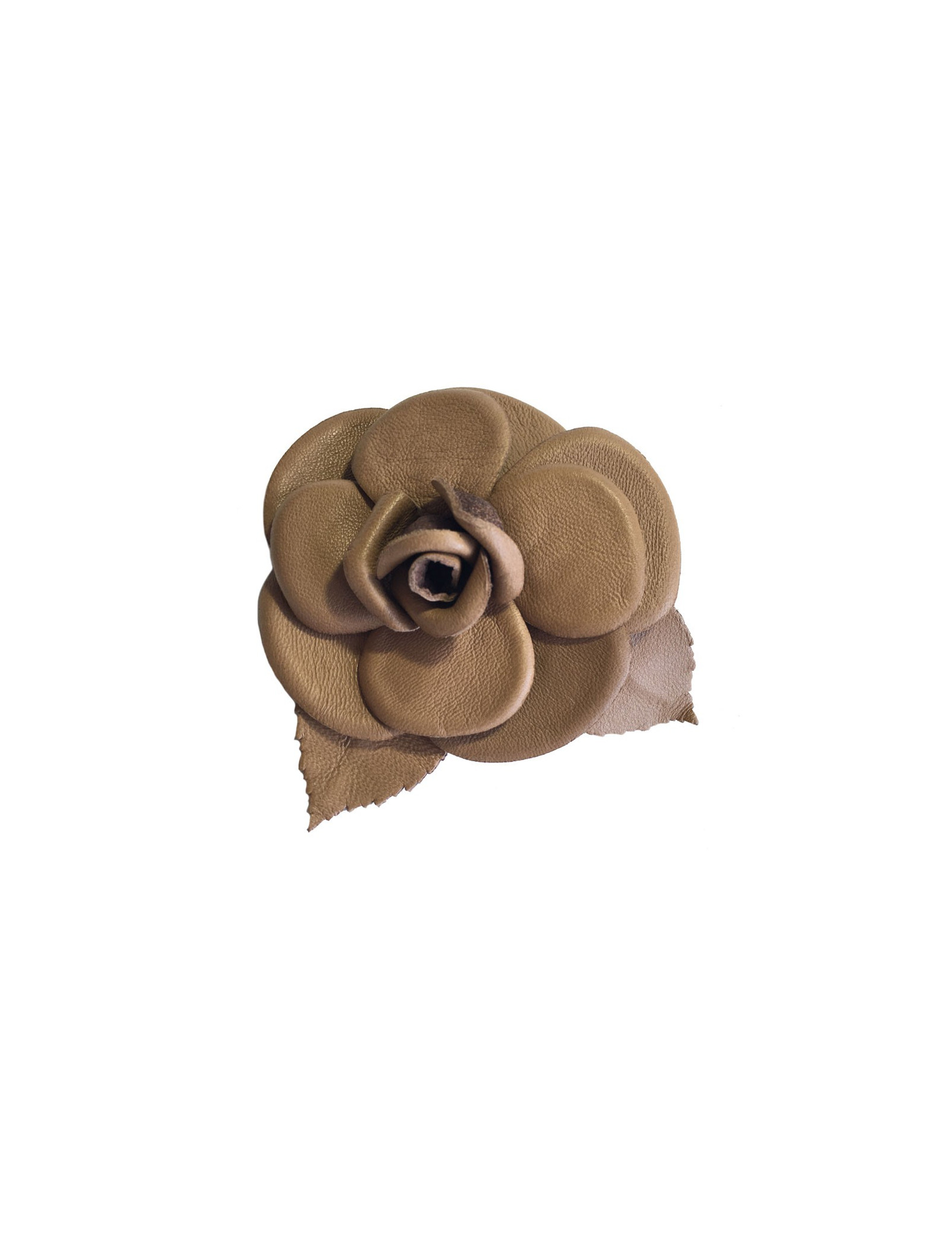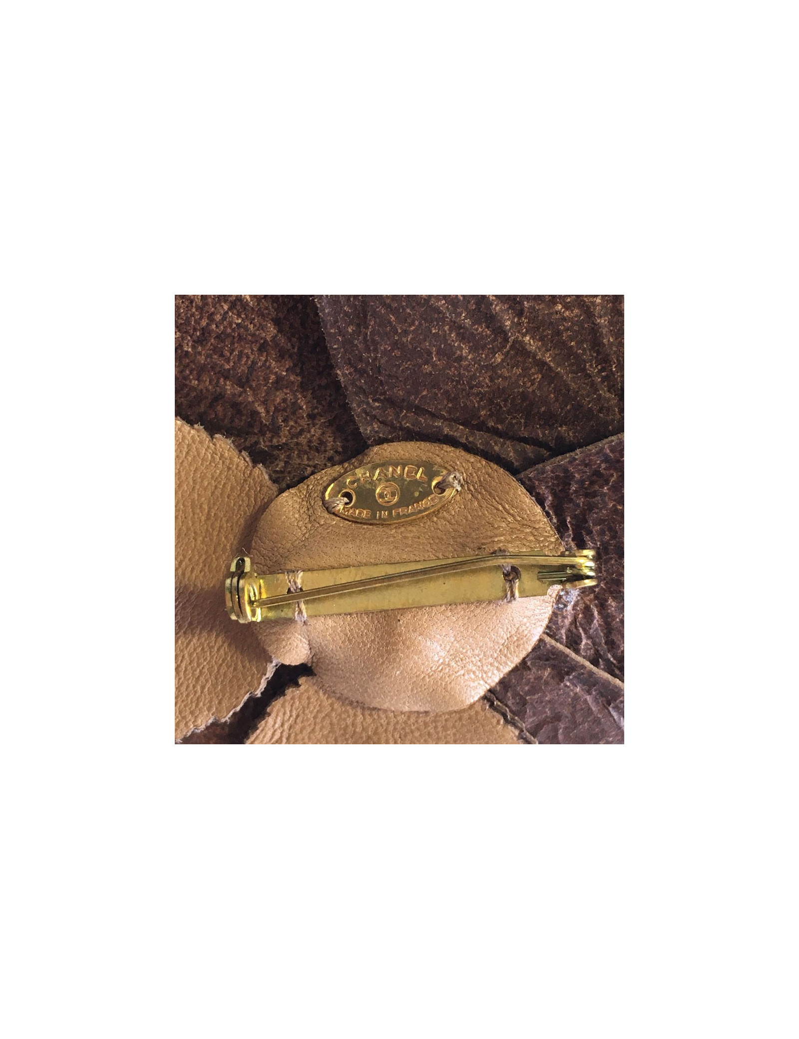 CHANEL camellia brooch in glossy brown leather